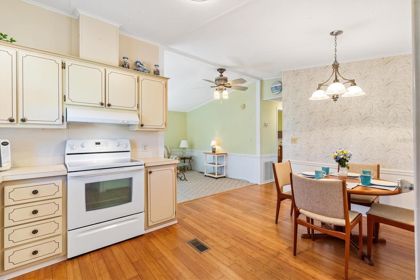 The beautiful weather is here, you should be too! This adorable home is your chance to put that seasonal rental money toward a piece of The Villages, Florida that you can call your own. This immaculately maintained, two-bedroom, cottage-style manufactured home has everything you need to enjoy The Villages this season and for years to come. Fully furnished with a brand new architectural shingle roof being installed this month, this one-owner gem has been lovingly cared for and it shows in every detail. Step inside and you’ll immediately appreciate the warmth and character of genuine bamboo and oak flooring that flows beautifully through much of the home. The open and inviting layout provides comfortable living spaces with a light, airy feel that makes you feel right at home. The home comes fully equipped with all major appliances, including a matching washer and dryer set, making it completely move-in ready from day one. The professionally renovated bathroom offers both style and practicality, featuring a granite-topped vanity and a fully tiled walk-in shower complete with a stow-away ADA-approved seat for comfort or necessity. Every detail was thoughtfully designed to provide convenience, safety, and timeless appeal. Outside, you’ll find a screened lanai perfect for morning coffee or evening relaxation, overlooking an incredibly spacious backyard that offers massive potential for future expansion, outdoor entertaining, or simply enjoying the Florida sunshine in privacy. Whether you’re dreaming of an outdoor kitchen, additional patio space, or a lush garden oasis, you’ll have the room to make it happen here. Location-wise, it doesn’t get much better. Nestled in the beloved northern neighborhood of The Villages within the Village of Silver Lake, this home offers unmatched golf cart access to everything you love about the community. You’re just 1.3 miles from Spanish Springs Town Square, where nightly live entertainment, shopping, and dining options await. You’re also minutes from three major recreation centers: Orange Blossom Hills Country Club and Recreation Center (1.5 miles), Paradise Regional Pool and Recreation Center (1.6 miles), and Hilltop Adult Pool and Recreation Center (1.9 miles). Fully golf cart accessible to every amenity The Villages has to offer, this home delivers the perfect blend of charm, location, and opportunity. Whether you’re looking for a seasonal escape, investment property, or full-time Florida lifestyle, this Silver Lake treasure is ready to welcome you home. Call today to schedule your private tour!