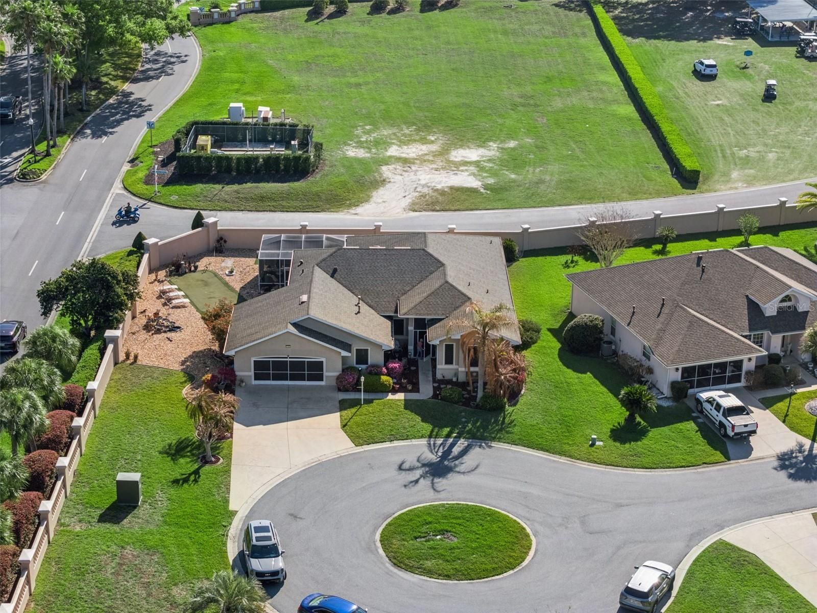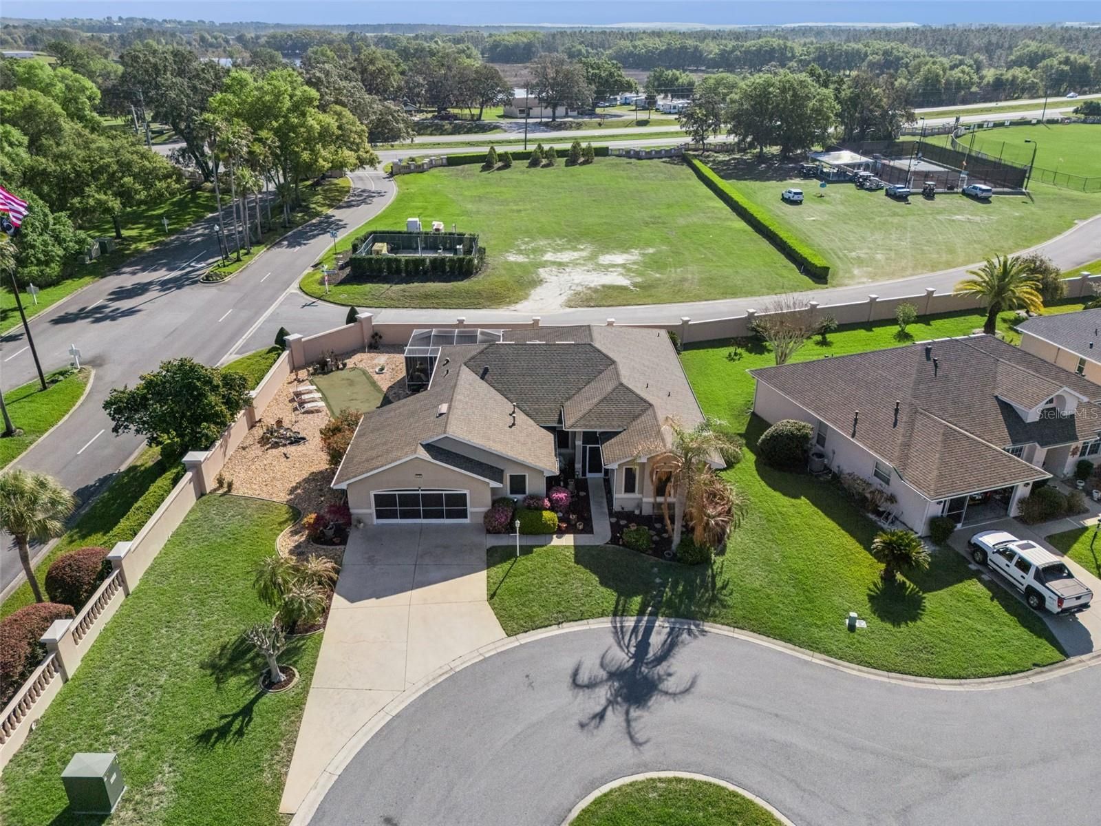 One or more photo(s) has been virtually staged. This modified Duchess Model is perfectly improved for buyers who enjoy open concept living, entertaining, or need spacious room for visiting guests. Boasting 2085 square feet of under heat & air living, this home welcomes you in from the moment you arrive. Situated in a cul-de-sac on over a quarter acre lot with both Florida Room and newly screen lanai, you’ll create retirement memories that will last forever! Golfers will love the artificial turf putting green and gardeners will love the lush landscape and brilliant curb appeal. This block and stucco home has three large bedrooms PLUS A DEN, two bathrooms and an inside laundry room that beats all others! The kitchen overlooks the living and dining areas and has an expansive island, pantry, tiled backsplash, 42-inch uppers and pull-outs in the lower cabinets for convenience. Both screened entry and lanai have pebble flooring, and the Florida Room offers a tropical vibe with sliding vinyl windows and access from three rooms! The roof was replaced in 2018, water heater was installed in 2021, and the HVAC was updated in 2022. The den can easily be your home office, 4th bedroom, craft or music area with lovely French doors, and spacious closet. The owner’s suite has access to the Florida Room with walk-in closets, ensuite bath with soaker tub, double vanities, Toto toilets, step-in shower and tiled floors. This three-bedroom, two-bathroom Pringle built home has no popcorn ceilings, and is close to the manned gate, Pickleball courts, Softball field, sidewalks, and fishing. If you’ve been waiting for the home you’ll fall in love with, you may have just found it! Royal Highlands is a 55+ gated, golf community with two pools, fitness center, restaurant, driving range, theater stage, dance floor, kiln, clubs, courts, library and billiards! You never dreamed that retirement could be this fun! Close to lakes, MCO, amusement parks, historic districts, Village Squares, and the Florida Turnpike. Call for your tour today!
