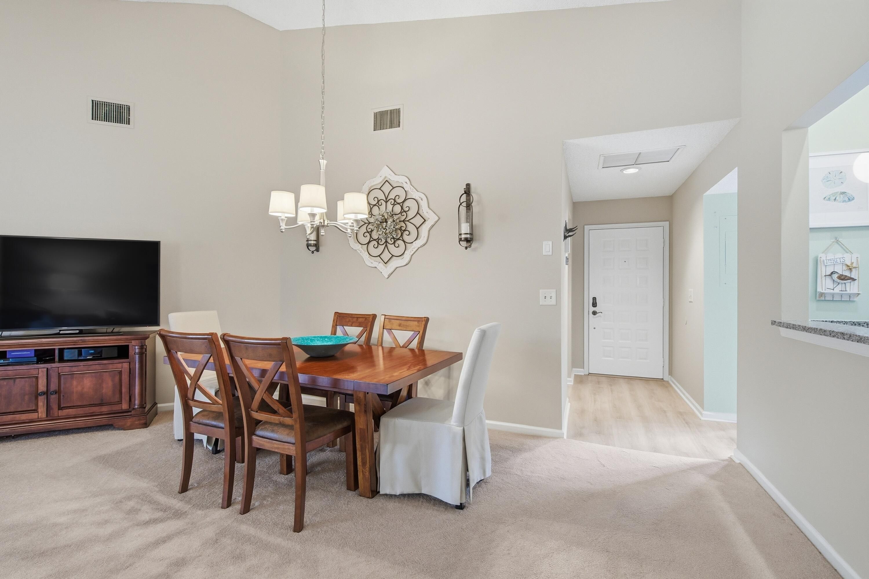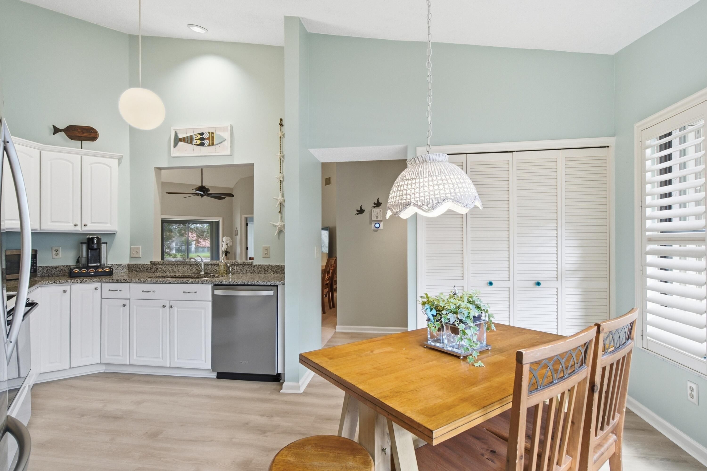 - Cathedral Ceiling(s), Entrance Foyer, High Ceilings, Pantry, Vaulted Ceiling(s), Walk-In Closet(s), Split Bedrooms, Breakfast Area, Living/Dining Room, Eat-in Kitchen, Dual Sinks, Upper Level Primary