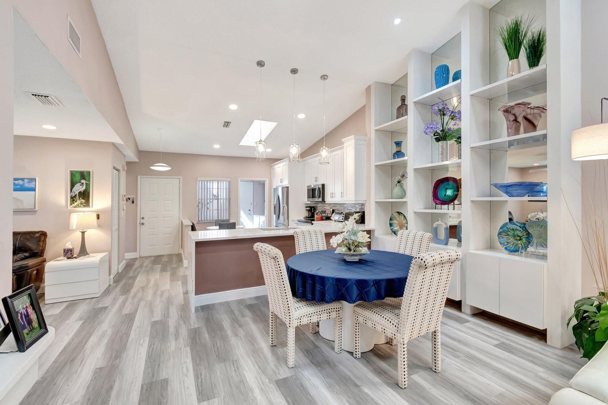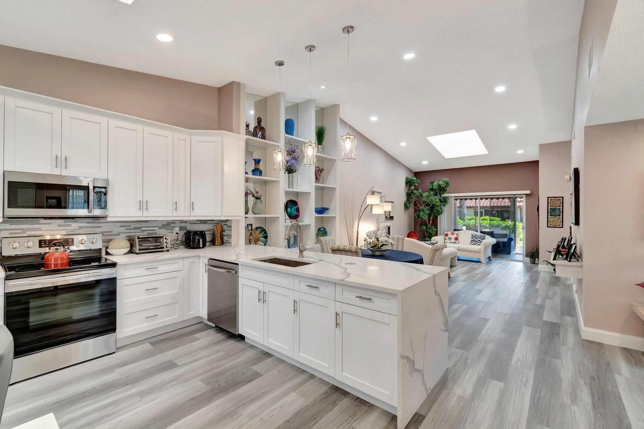 HUNTINGTON POINTE--SUPER ACTIVE ADULT COMMUNITY. Experience modern luxury at 6100 Waldwick Circle in the heart of Delray Beach, Florida. This recently renovated villa, Monaco model stretches across a generous 1,638 Liv SqFt, providing ample space for comfort and style with a one-car garage and a spacious two-car driveway. Proudly standing as a testament to elegance and class, the villa showcases remarkable architecture complemented and illuminated by natural light ushering in through two expansive skylights. The living quarters include two spacious bedrooms, a versatile den with a large window, and two full bathrooms. An impressive dual-entrance Florida Room adds a unique charm either accessed via the living room or directly from the owners suite. Space is impressively planned, with the owners suite bedroom boasting two large walk-in closets. The interior does not fall short of luxury and sophistication. All walls are seamlessly finished, enhancing the overall charm of the villa. A breathtakingly beautiful kitchen features quartz countertops with waterfall edges, brand-new cabinetry, a spacious oversized sink, and an full set of high-end stainless steel appliances. An inviting window and eat-in space completes the pleasing kitchen. The kitchen is designed with soft-closing cabinets, attention to minute detailing, and a convenient lazy Susan, all contributing to easy living. The villa also incorporates a separate laundry room with a window, and a full size washer and dryer. An impact-rated garage door adds an extra layer of safety. The guest area of this property have been given the same attention to detail. The guest bathroom features a shower-tub combo and window and two closets, a walk-in, and a linen closet in the hallway. The guest bedroom has two windows and a nice, deep closet. The entire villa has luxury vinyl plank flooring, which contributes to the refined ambiance. The newly renovated master bathroom, highlighted by a single vanity quartz countertop, a stunning step-down shower, a window, valuable linen closet storage, and elegant flooring. Join us at this renovated villa catered to your modern tastes, where every step offers an encounter with a spacious and open feeling. Reside at 6100 Waldwick Circle, a domain that mirrors the best of the illustrious Delray Beach Huntington Pointe community, for an unparalleled, elegant living experience. Huntington Pointe is an active community in the heart of Delray Beach, with a 24/7 staffed gate. The clubhouse has been recently and completely renovated and provides residents with endless activities. It is a diverse entertainment complex with an indoor and lakeside Olympic pool, three satellite pools, and a convenient cafe on site, perfect for great breakfasts and lunches. Residents can participate in special interest clubs and attend fitness classes. The state-of-the-art fitness center includes aerobics and dance studios, a heated indoor pool, a spa, and a sauna. Outdoor activities include pools, pickleball courts, tennis courts, bocce ball, shuffleboard courts. The on-site Village Cafe serves breakfast and lunch seven days a week. Huntington Pointe is only 15 minutes from downtown Delray Beach and the ocean. If you're in the mood for movies, bowling, outdoor restaurants, and shops, you can head to Delray Market Place, only five minutes away. This 24-hour gated community offers a stress-free lifestyle perfect for snowbirds and full-time residents. A/C TRANE 2007 HWH-2013 $993.00 HOA-MONTHLY---covers water, basic cable, and internet. BLUE STREAM Fiber underground wires INTERNET whole home WiFi with speeds up to 1 Gbps TV 300+ channels, TiVo & Google TV, Network DVR. The association covers the fire alarm service, but the resident is responsible for the burglar alarm service.