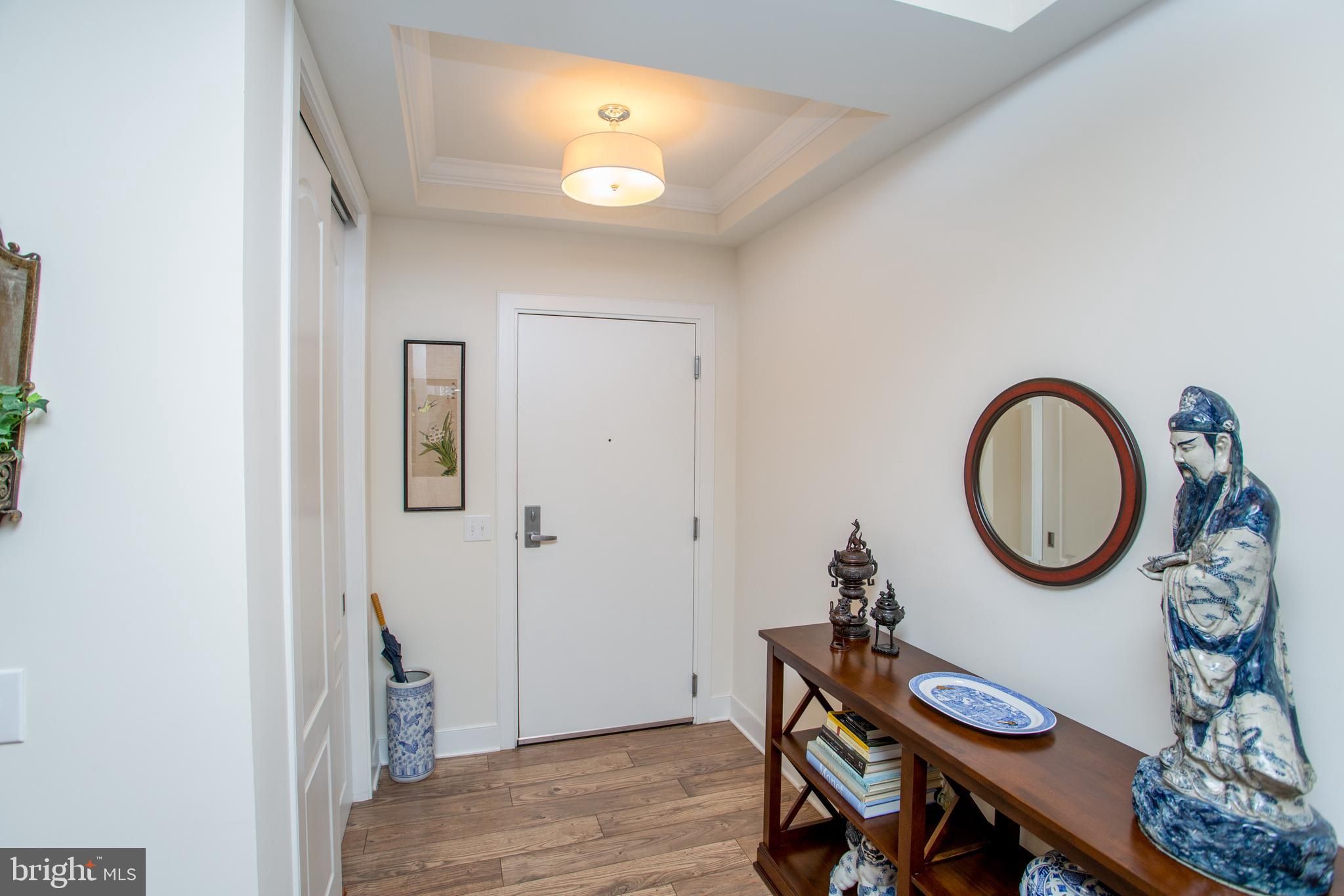 Welcome Home to Meridian Valley Square – Bucks County’s Most Desirable 55+ Community! A very rare offering of the Presidential I model, one of the largest units available! This first-floor end unit offers the best of one-level luxury living with private entry from your own garage—no hallways, no elevators, no stairs!! Step inside to a bright and inviting foyer with a double coat closet and hardwood floors that flow throughout the home. The open floor plan boasts soaring nine-foot ceilings, extensive millwork, and a seamless flow ideal for both everyday living and entertaining. The gourmet kitchen is a chef’s dream with gas cooking, granite countertops, center island with breakfast bar, tiled backsplash, pantry closet, and top-of-the-line stainless steel appliances. A separate breakfast area is perfect for casual dining, while the formal dining space and wet bar elevate special occasions. The spacious living room features crown molding, a corner fireplace, and access to one of three private patios. The luxurious primary suite is a true retreat, offering a sitting/office area, two walk-in closets, a private patio, and a spa-like bath with ceramic tile, double vanity, and oversized walk-in shower. A second bedroom also includes a walk-in closet, its own private patio, and easy access to a hall bathroom with ceramic tile finishes and shower/bather combination. Hunter Douglas Luminette shades on all windows and sliders, Utility/laundry room for convenience, and did we mention THREE separate patios for outdoor enjoyment? Meridian Valley Square offers unmatched amenities for an active and social lifestyle: a clubhouse with fitness center, game room, community room, and heated saltwater pool, along with secure entry, walking trails, and more. Best of all, the community is within walking distance to Valley Square Shopping Center with grocery stores, restaurants, and shops—and just minutes to major highways. This rare Presidential I model offers a perfect blend of elegance, comfort, and convenience in one of Bucks County’s most desirable 55+ communities. Don’t miss it!