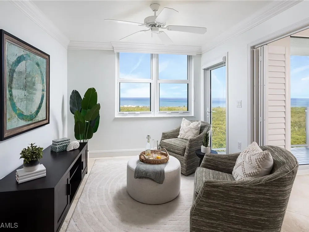 Experience breathtaking views of the Gulf from this coastal luxury residence at St. Maarten at Pelican Bay. This modern and bright two-bedroom plus den, two-bath end-unit residence with impact-resistant windows and sliders exemplifies the idyllic Pelican Bay lifestyle. St. Maarten is on a premier stretch of Pelican Bay Boulevard in Naples. Resident amenities include pool/spa, sauna, billiards, library, fitness and social rooms. St. Maarten is conveniently steps from the tram that provides transportation to and from the beach. Residents of Pelican Bay enjoy two private beach clubs with restaurants, walking and bike paths, tennis, kayaks, pickleball courts and more. See why many love calling Pelican Bay home.