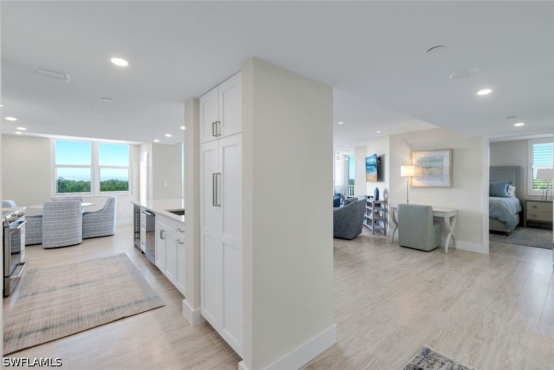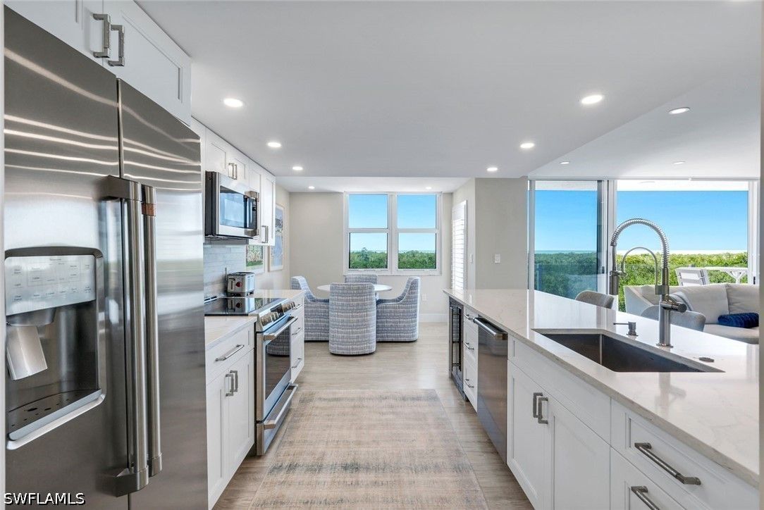 Welcome to St. Maarten in the prestigious Pelican Bay community, where refined coastal elegance meets effortless luxury. This fully reimagined 2-bedroom, 2-bath residence has been masterfully renovated and exquisitely furnished by the renowned Clive Daniel Home, showcasing impeccable attention to detail and sophisticated design throughout. No detail has been overlooked—every inch of this residence has been thoughtfully transformed, featuring all-new flooring, designer lighting, a stunning chef’s kitchen, spa-inspired bathrooms, and custom closets that blend beauty with functionality. The interiors exude a timeless yet contemporary aesthetic, curated for both comfort and style. Perched on the third floor, this residence captures sweeping views of the Gulf of Mexico, complemented by serene mangrove landscapes that create a tranquil coastal backdrop. Western exposure ensures breathtaking sunsets night after night, painting the sky in vivid hues over the water—an everyday luxury that never grows old. Experience elevated living in one of Pelican Bay’s most sought-after addresses, where world-class amenities, pristine beaches, two beach restaurant/bars and natural beauty converge. This is more than a home—it’s a statement of lifestyle and design excellence.
