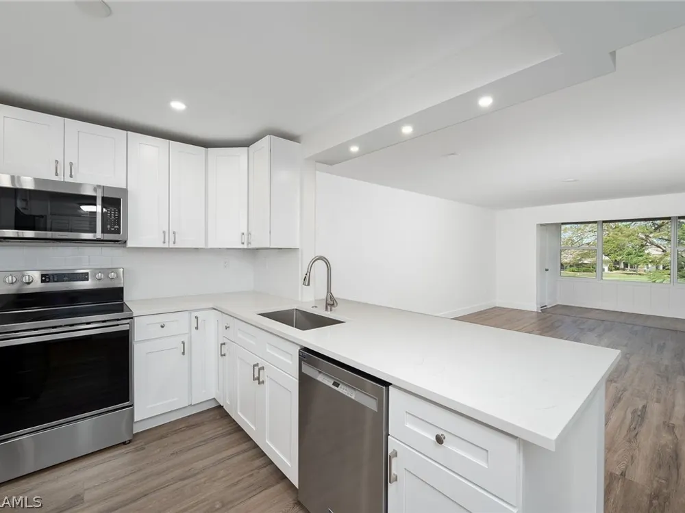 PRICE REDUCED !!!! A 55+ golf and social activity paradise in the heart of the Ft. Myers / Southwest Florida. This totally refurbiished condo has a view over looking the 6th fairway. The unit has been upgraded with laminate flooring, lighting and bathrooms with new fixrures. Quartz counter tops and all new appliances and impact windows. The community offers a wealth of daily activities including tennis, pickelball, billards, 6 heated pools and numerous other activites. There is also a main clubhouse for dancing, dining and scheduled formal events. Come see this 55+ commintiy that offers so much for your retirement lifestyle.
