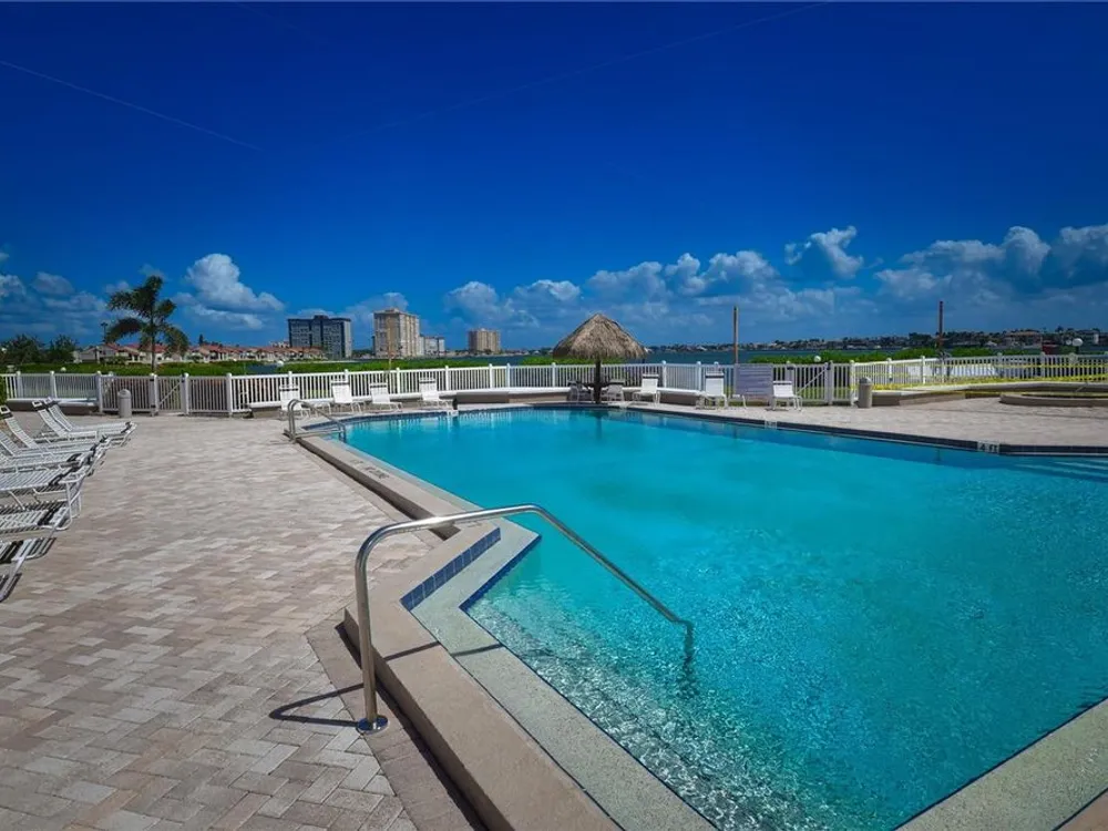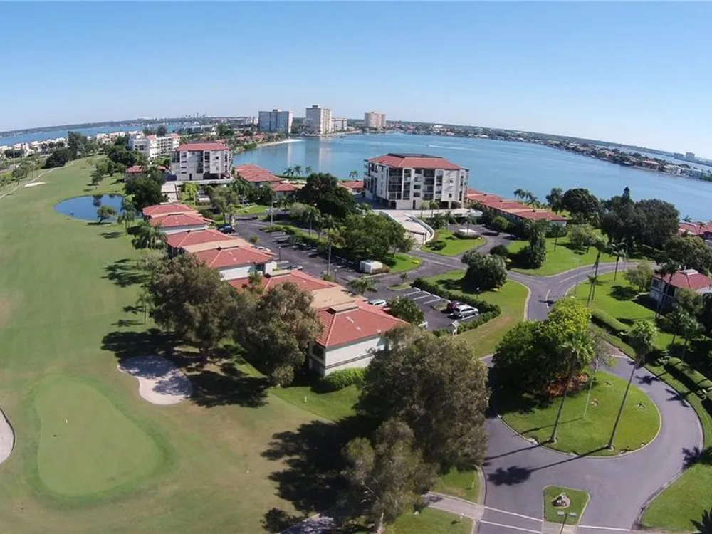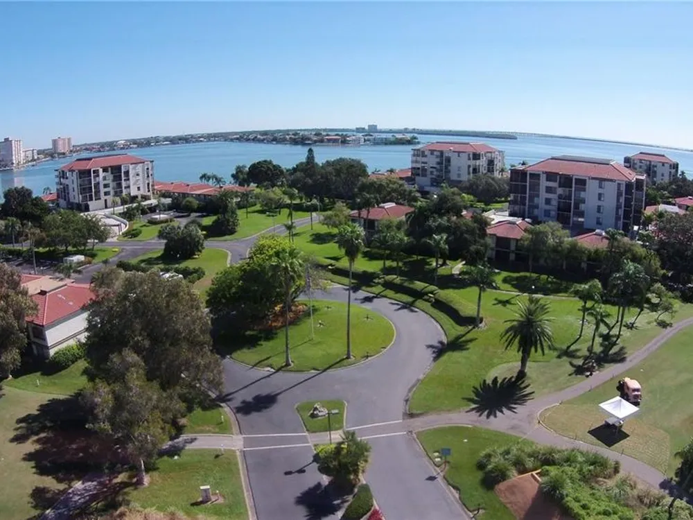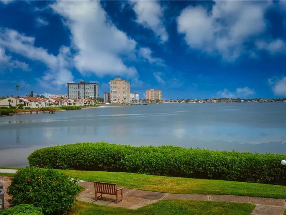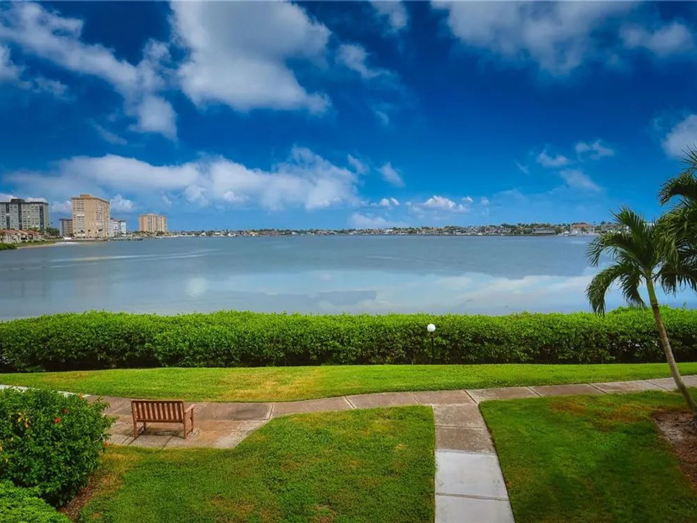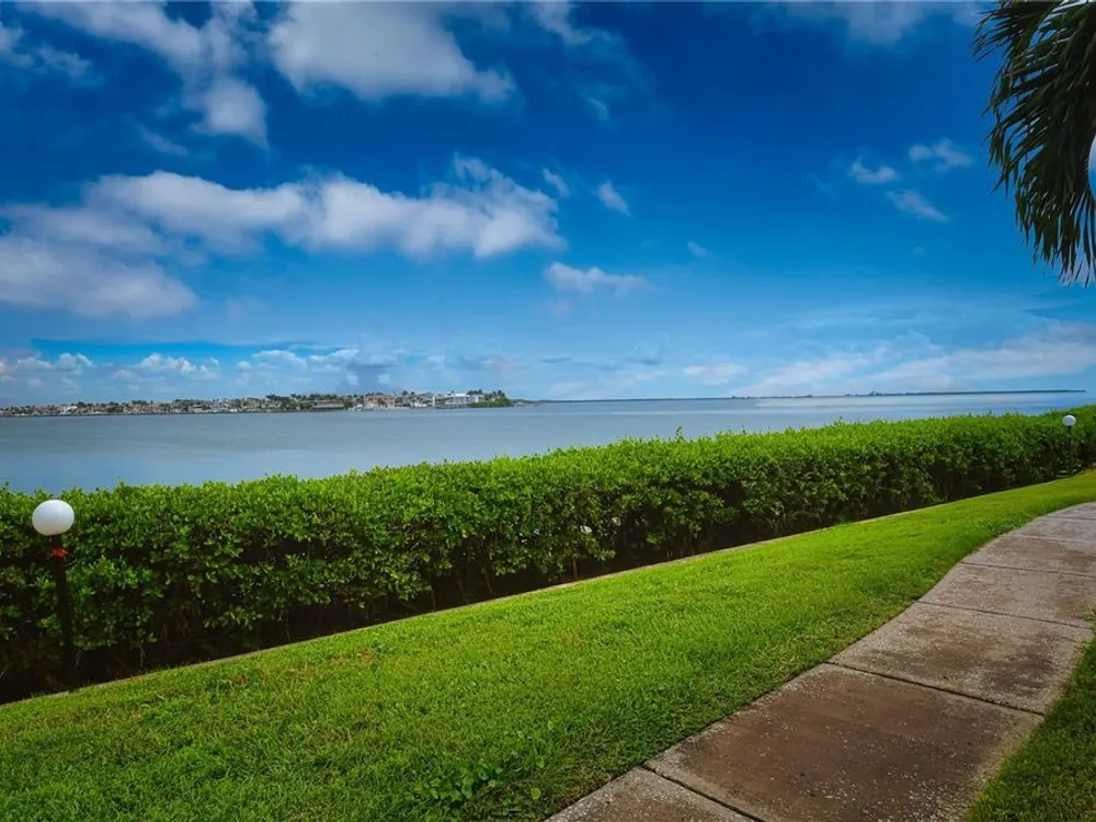 Welcome to Palma Del Mar, a waterfront enclave and part of the Isla Del Sol Yacht & Country Club Community. Boating, Golf and Tennis define the Florida Lifestyle and Isla Del Sol has it all. This charming 2 bedroom, 2 bath, 2nd floor villa overlooks Boca Ciega Bay. The Split Bedroom plan offers privacy for residents and their guests. The great room floor plan design lends flexibility for entertaining and dining, while the kitchen with breakfast bar overlooks it all. The primary suite has a walk in closet and updated bath with glass enclosed shower. The guest room has water views, sliding doors to the private waterfront balcony and access to the nicely updated hall bath with tub and shower. Interior laundry and linen closet, storage room from the private screened porch and an additional storage closet in the parking garage. This residence includes one covered, reserved parking space and plenty of guest parking. Parking is on the same level as the condo, so there is no need to take the stairs or the elevator. The Community Pool and Spa are heated for year-round enjoyment, overlooking the bay and the Sunshine Skyway Bridge. Gathering rooms have a party kitchen and games for getting to know your neighbors. Isla Del Sol offers several levels of memberships for year round or seasonal residents. Palma Del Mar welcomes all ages and small pets.