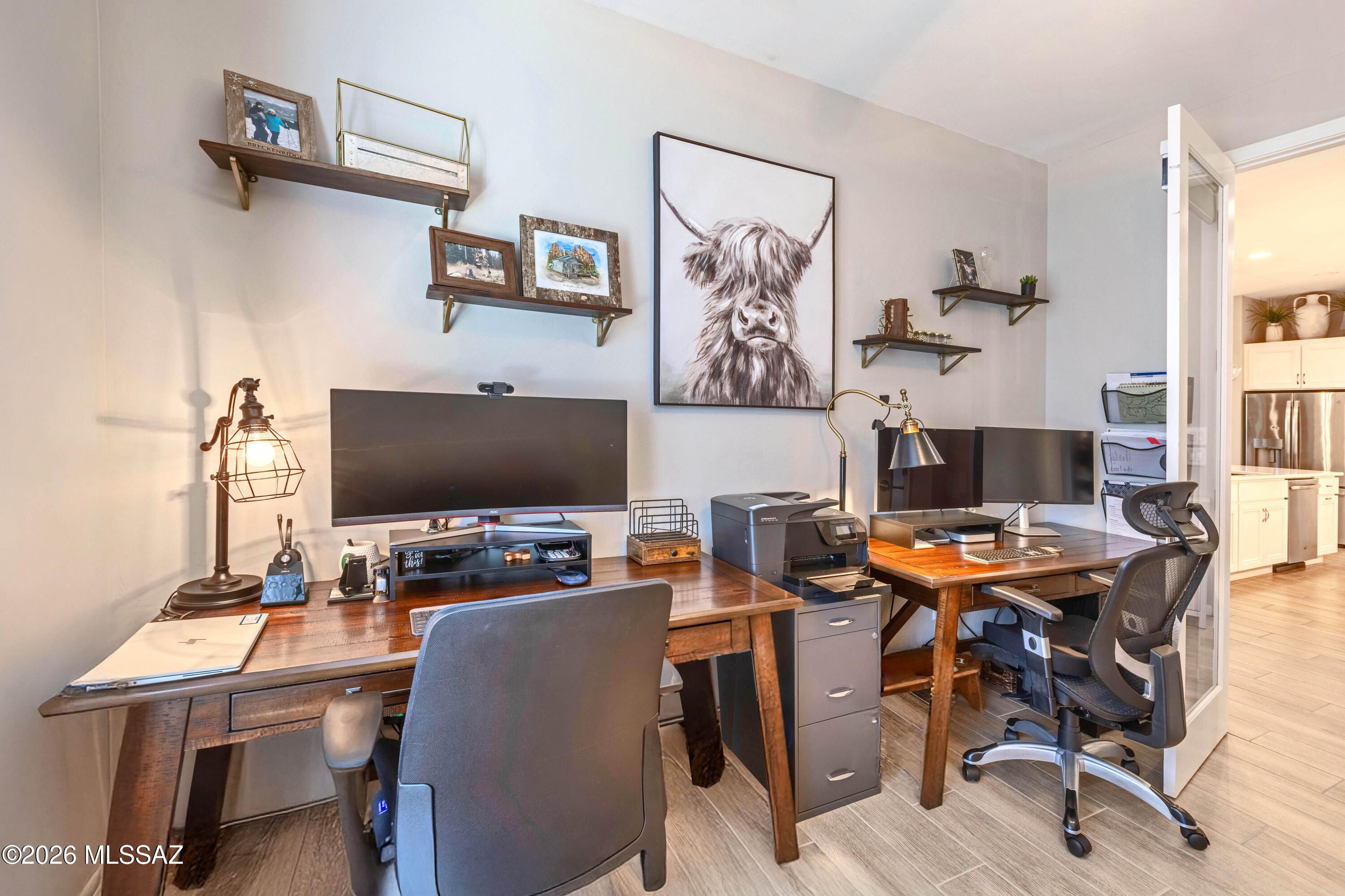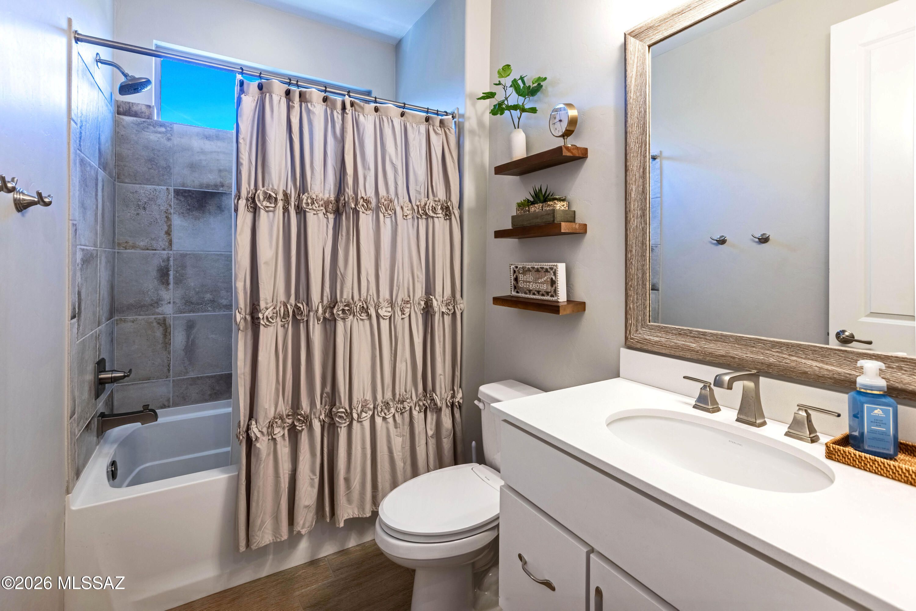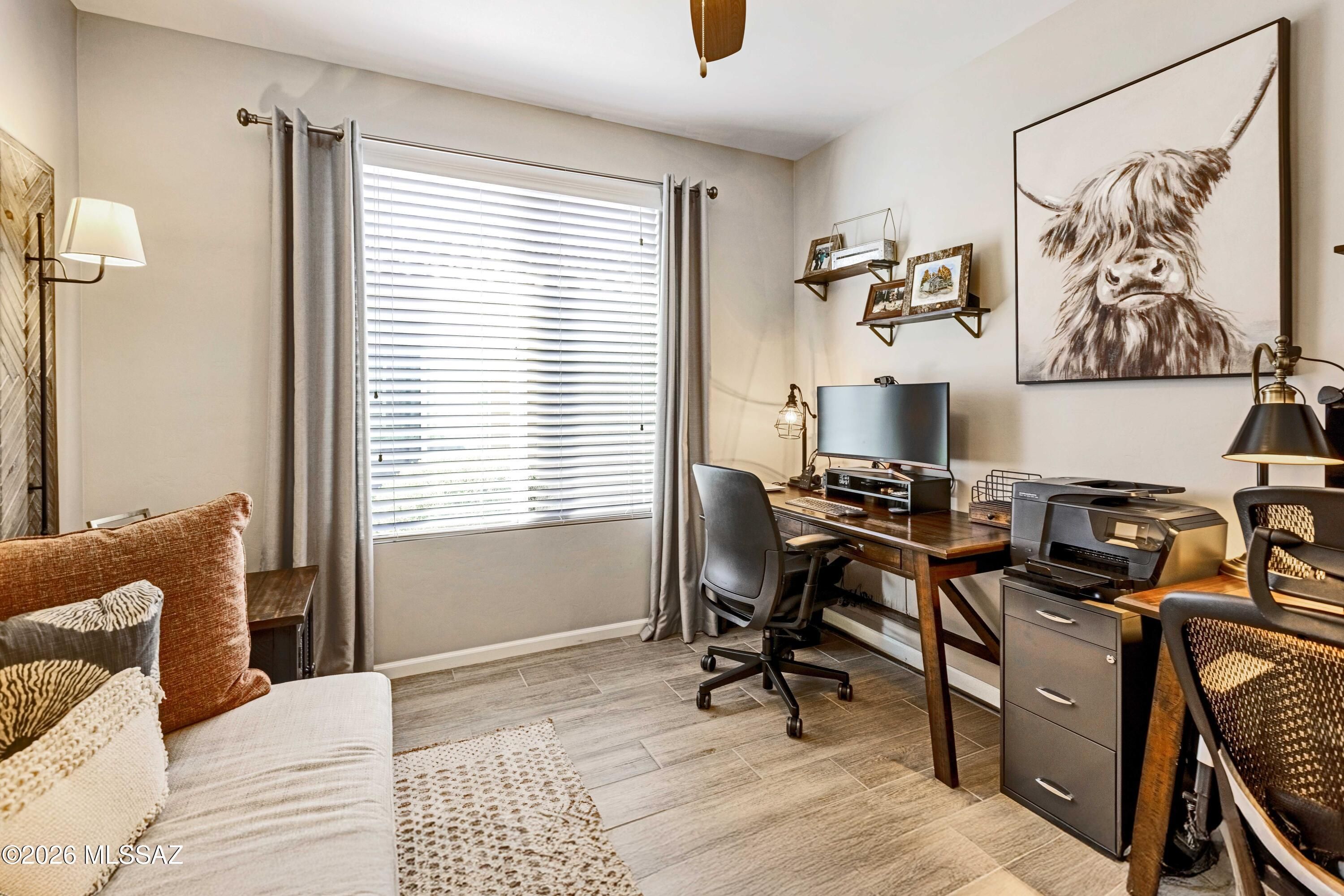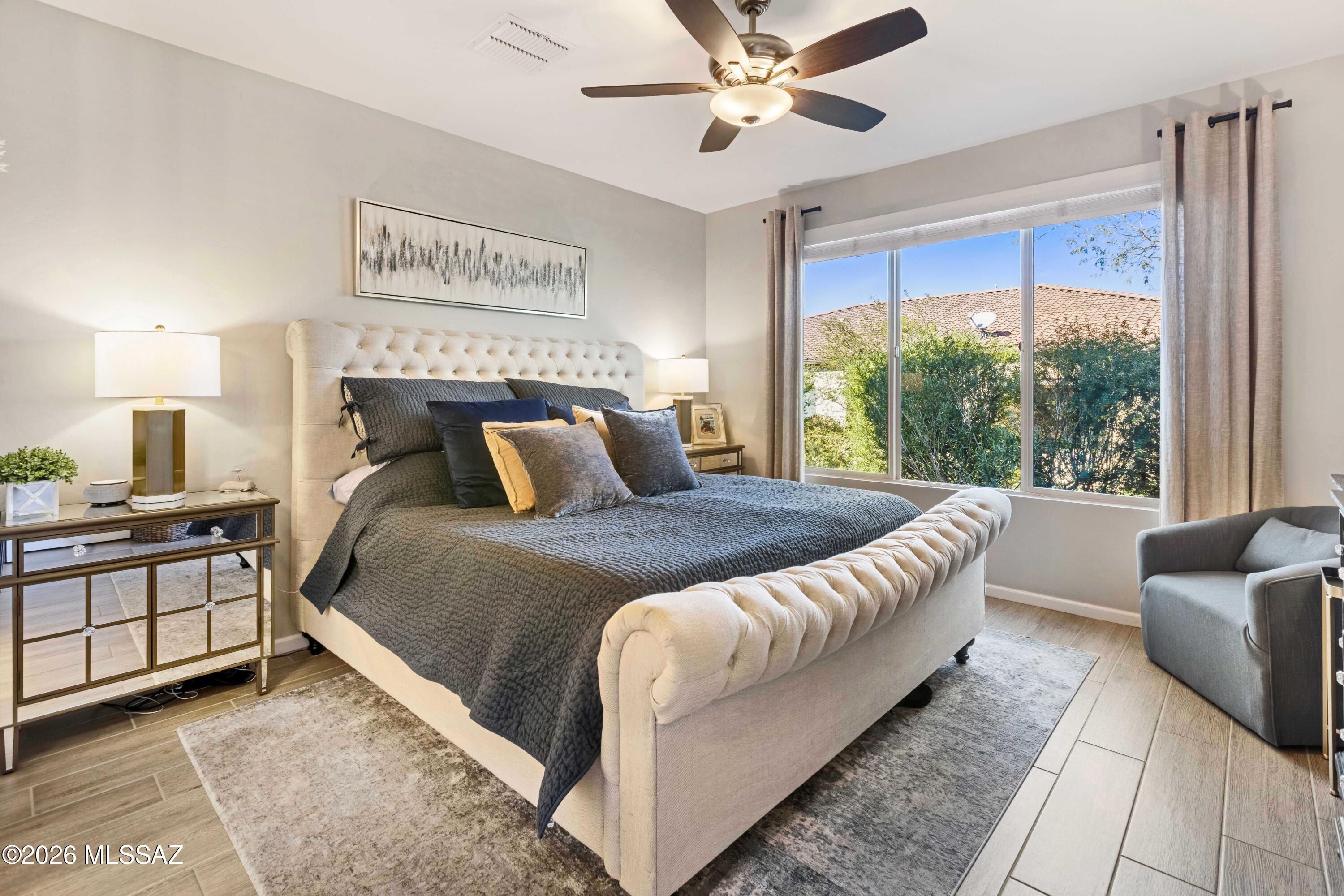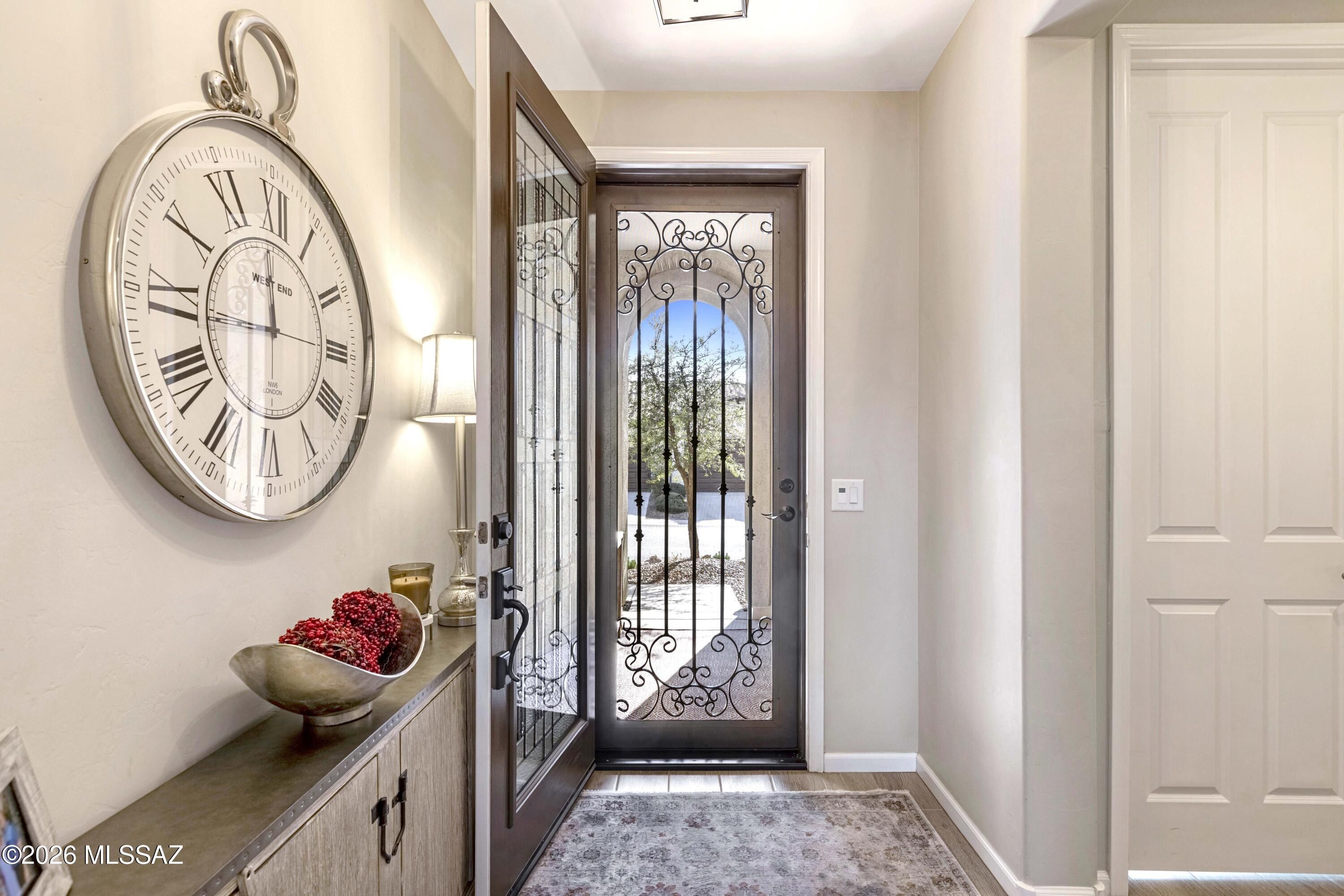 Welcome to this upgraded Viva model villa in the gated community of SaddleBrooke Ranch. This home offers 2 bedrooms plus a den, an open great room, high ceilings, quartz countertops, upgraded cabinetry, and stainless steel appliances. Since May 2023, the owners have added a custom primary closet, upgraded lighting throughout, framed bathroom mirrors, added electrical outlets in key storage areas, and added a custom built-in with an electric fireplace with lots of storage. Enjoy custom panel drapery, smart lighting, a custom glass-front door, a covered paver patio with rolling shutters, professionally designed front-yard landscaping, a snake fence, and a freshly painted garage. HOA-maintained exterior and resort-style amenities complete this low-maintenance home. Owner/Agent.