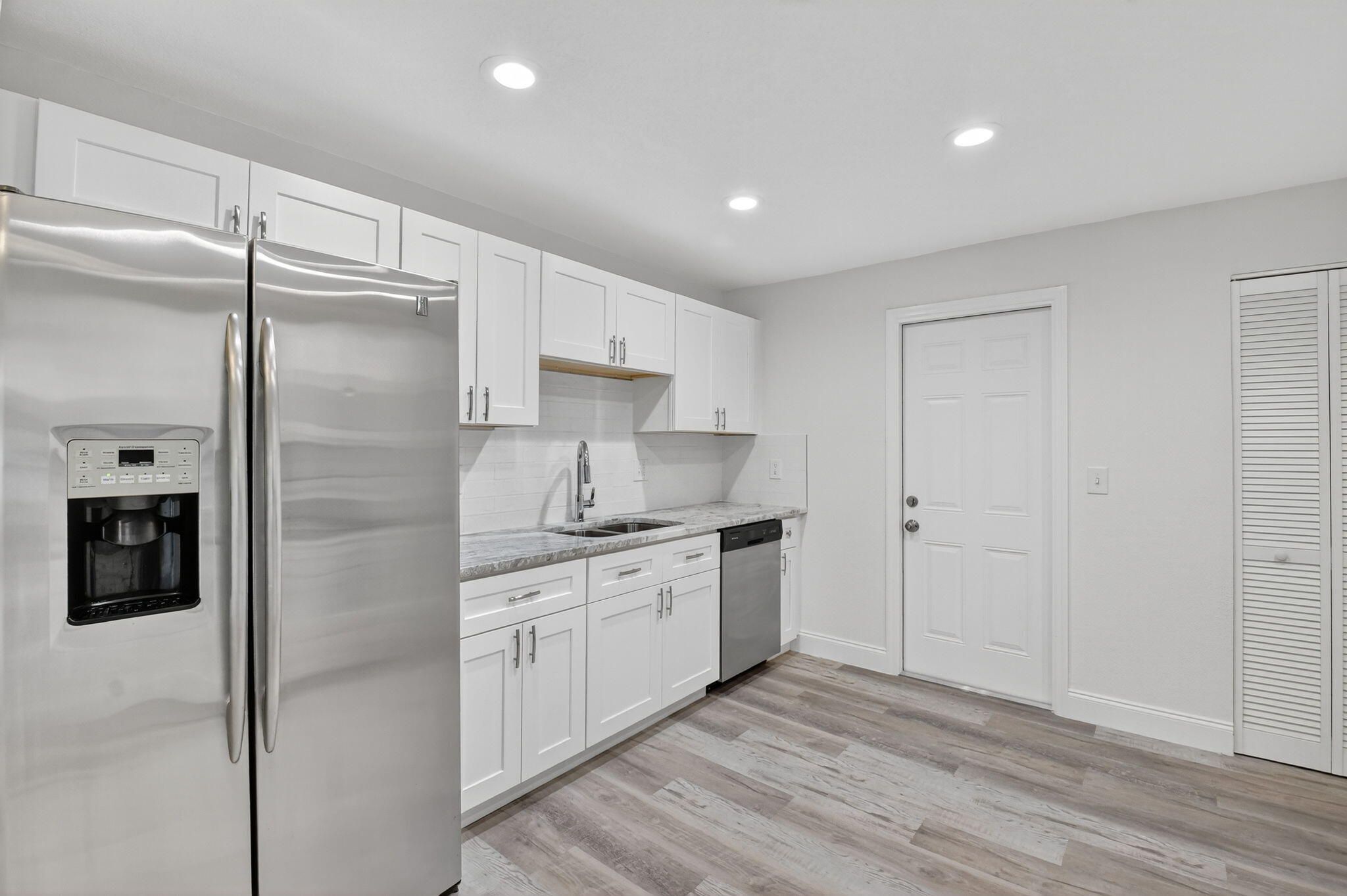 Beautifully updated lakefront single-family home in the desirable 55+ Delray Villas community! This solid concrete construction home features 3 bedrooms, 2 bathrooms, a 1-car garage (new door coming soon), and stunning water views. Recent upgrades include a 2017 roof, 2020 A/C, new flooring throughout, a modern kitchen with granite countertops, and stylishly renovated bathrooms. Enjoy an active lifestyle with community amenities including a pool, fitness center, clubhouse activities, and more—all just minutes from shopping, dining, and beaches.
