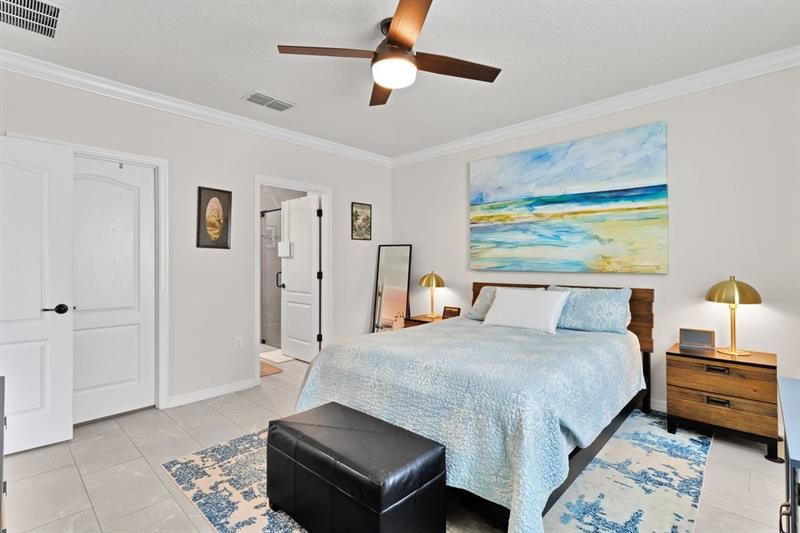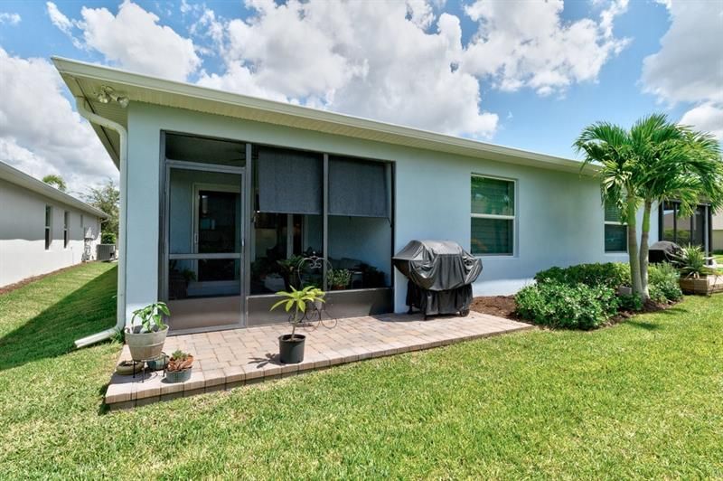 Harmony Reserve, a resort-style 55+ highly sought-after community featuring a fabulous clubhouse, pool, pickleball, fitness center, social events, etc. This 1,458 sq ft, 2-bed-2-bath + FLEX/Office home offers upgraded tile floors, entertainment kitchen w/ quartz counters, wood cabinets, backsplash, pendants, pantry, SS appliances, nat. gas cooking, snack bar. The large main bedroom has a walk-in closet, walk-in shower. Home finished with Recessed lighting, tankless WH, impact windows, 1-car garage w/storage closet & epoxy floors. Screened covered paver lanai with extension and view of pond. HOA incl roof replacement, exterior paint & power washing.