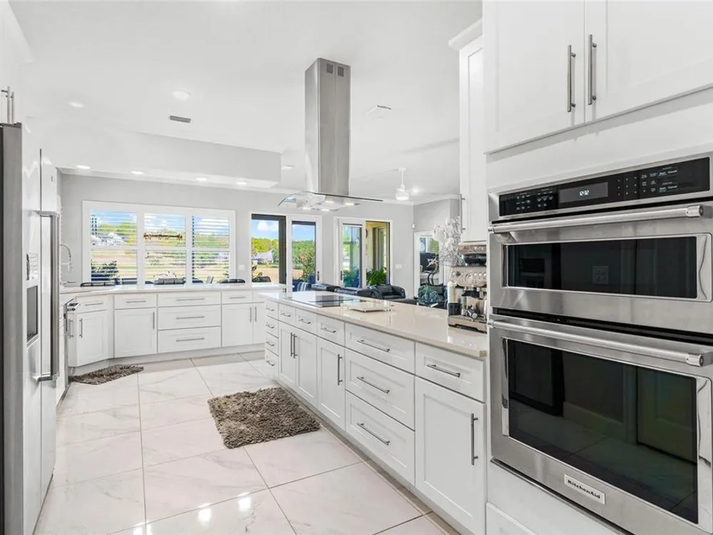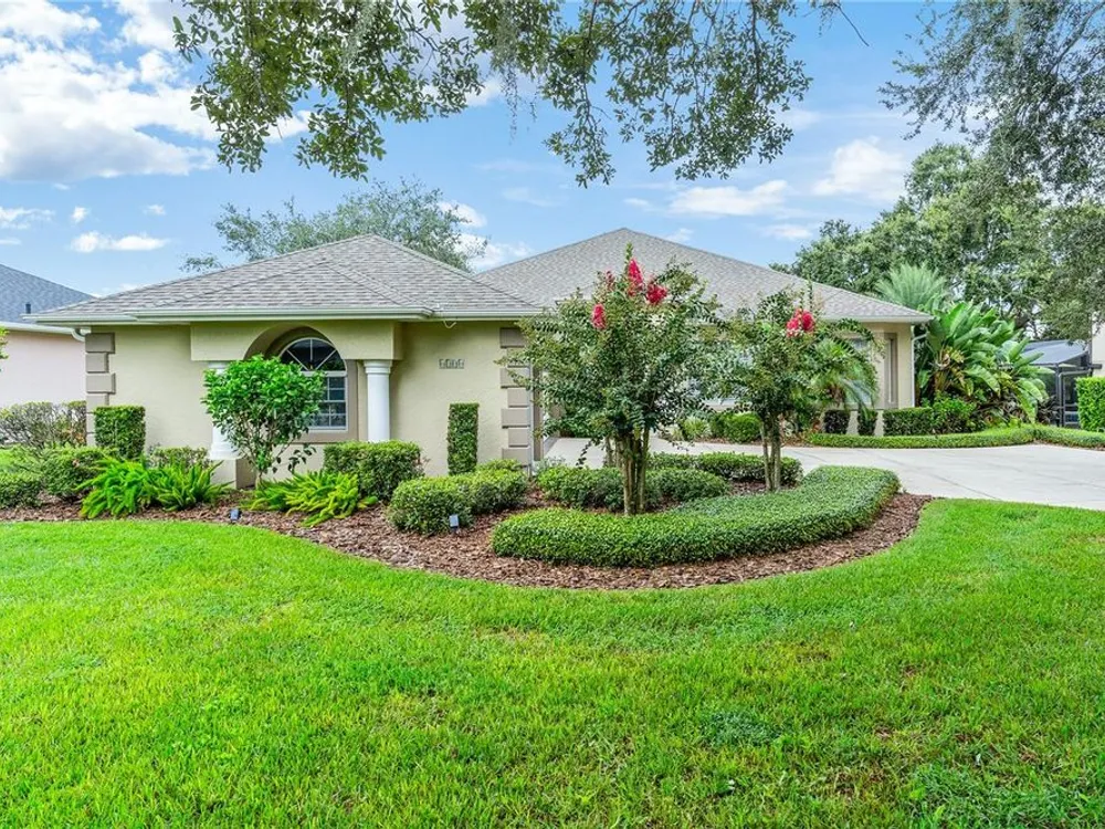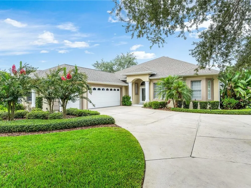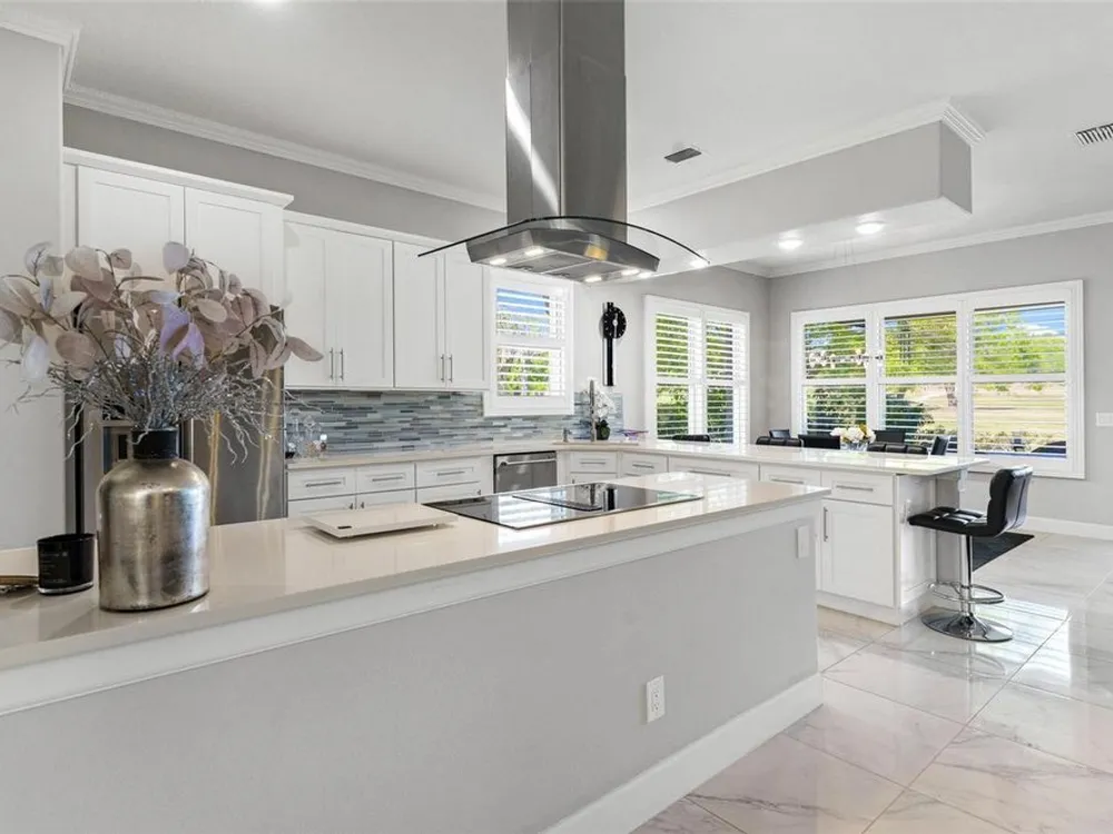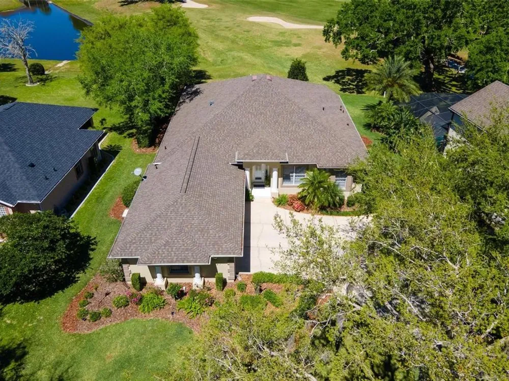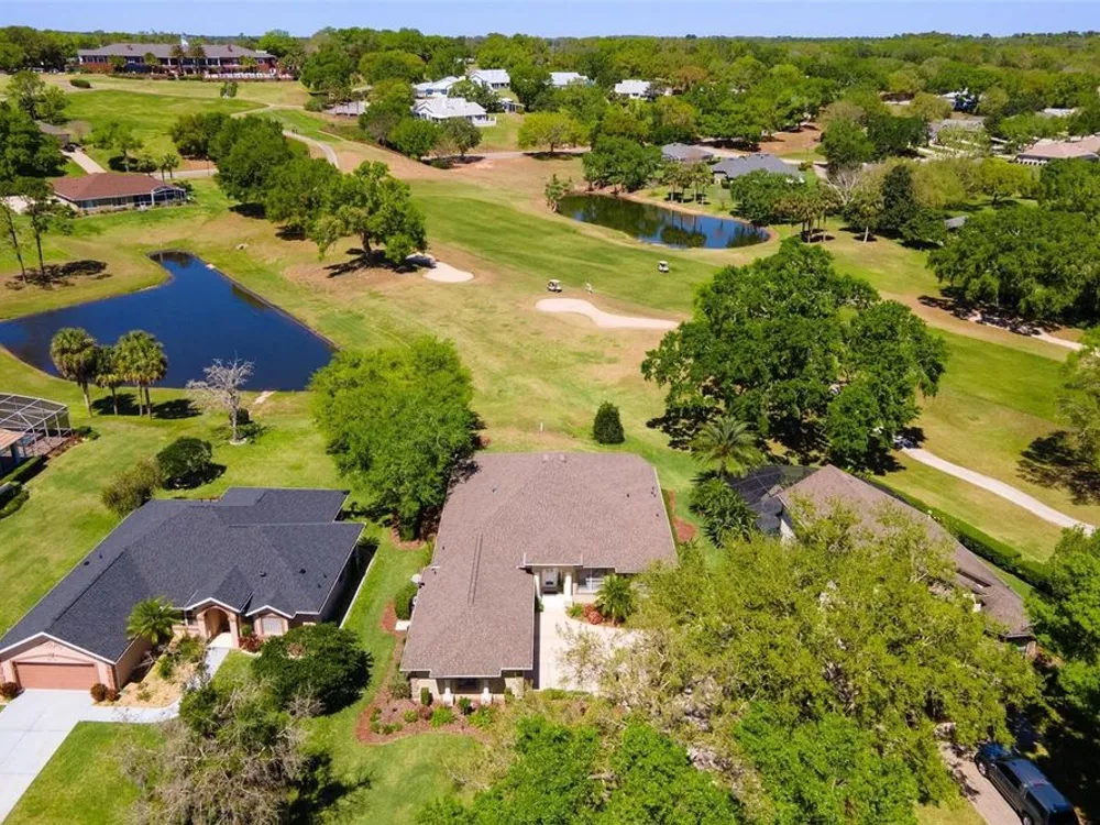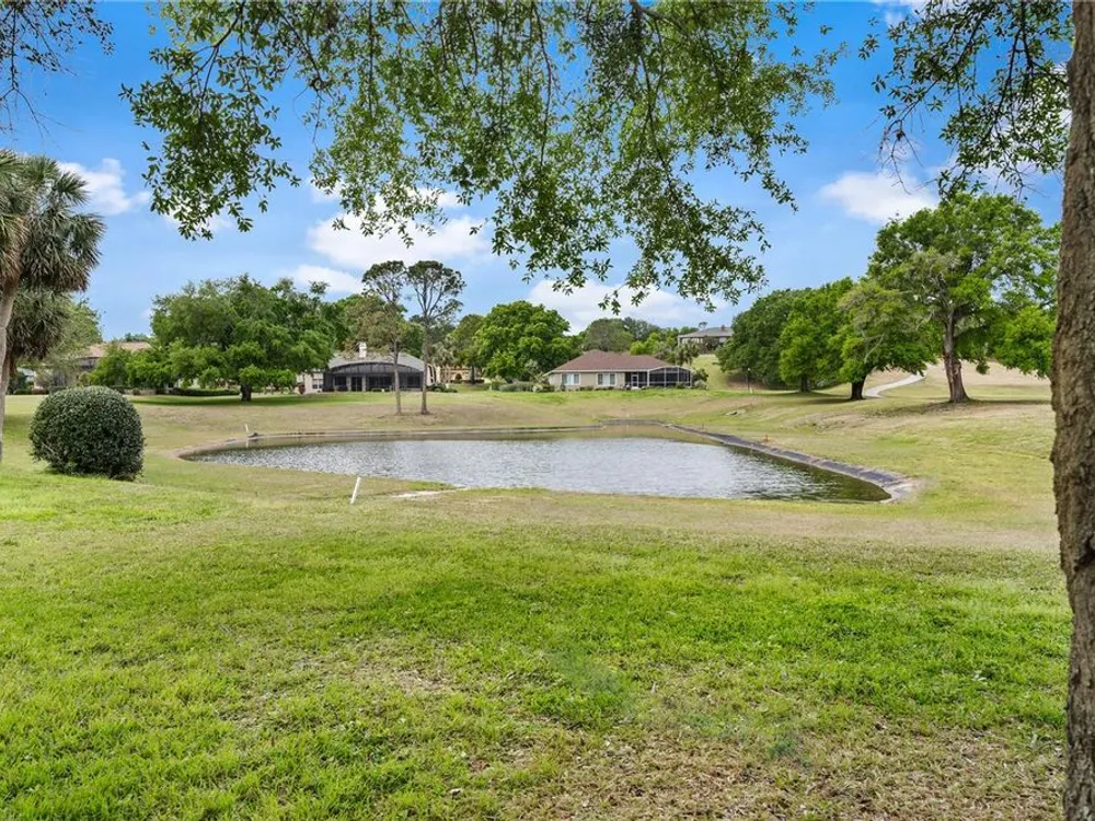 FABULOUS FIND…GOLF FRONTAGE HOME! Step into this unique, custom-built residence that boasts stunning views of the 10th Fairway and scenic pond! This property offers an unparalleled living experience in a highly sought-after, GAURD GATED 24/7 neighborhood! Clubhouse membership is optional!! Three Car Garage offers ample room for your golf cart or additional small vehicular to include a separate custom metal top work station with sink! Completely remodeled and updated, this home is move-in ready! Upon entering, you'll be captivated by the open-concept design featuring a spacious Great Room with a cozy electric fireplace and separate formal dining area. The huge kitchen, “fit for the chef” includes a large breakfast room, Quartz countertops, wall oven, built-in microwave, and a Jenn Aire cooktop with upgraded overhead vented exhaust hood ideal for cooking and entertaining! Additional updates include a new roof (2020), a new hot water heater (2016), and a brand-new HVAC system (2025) ensuring your home stays comfortable year-round! The luxurious Primary Suite is a retreat, offering a generous 17x6 walk-in custom closet. The en suite Primary Bath features a dual-sink raised Quartz vanity, a walk-in glass shower, a soaking tub for ultimate relaxation, and a separate water closet. With a split-bedroom design, your guests will enjoy plenty of privacy in their own space. The remodeled guest bath with a raised Quartz vanity is shared by Bedrooms 2 and 3, which are currently set up with a Murphy bed and desk—perfect for an office space. An inside laundry room with cabinets and almost new washer and dryer are included for your convenience. Enjoy sidewalks for your leisurely strolls in this “all age” desirable Golf Community. Don't miss the chance to make this extraordinary home yours—WELCOME!