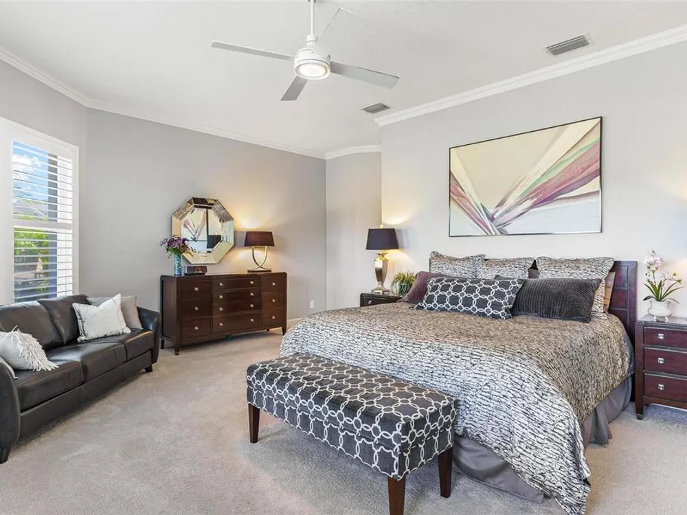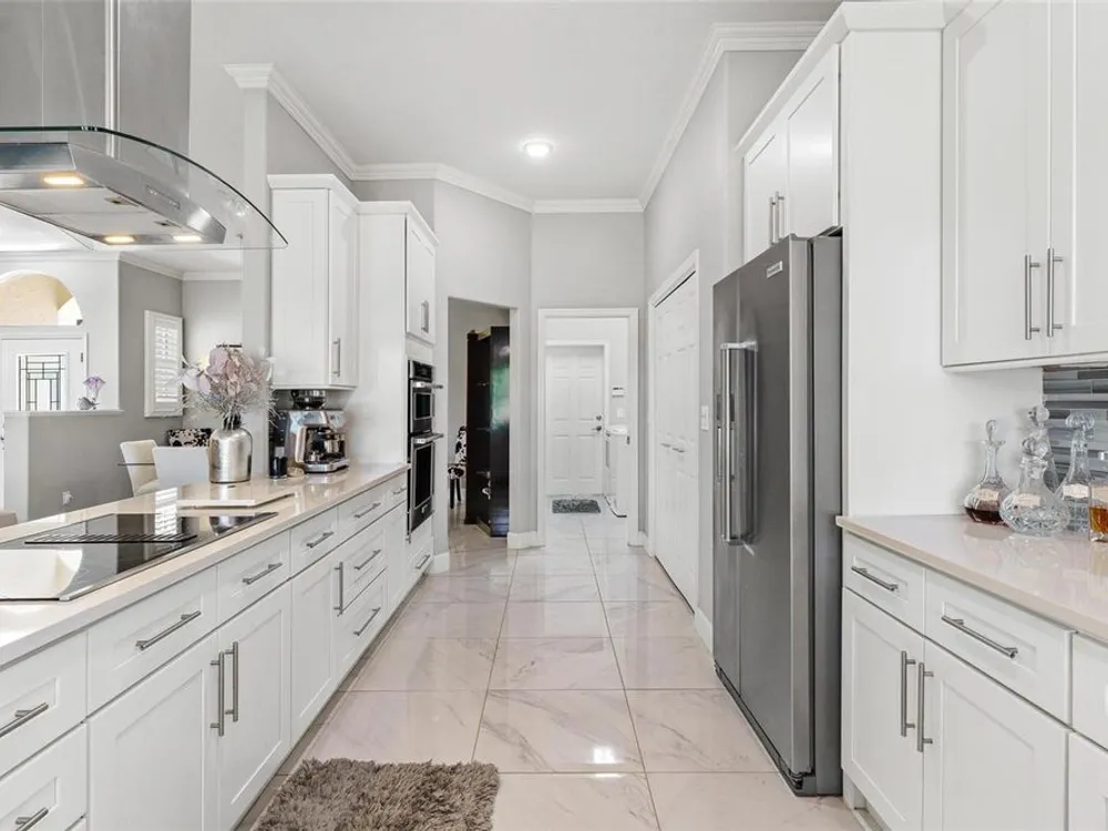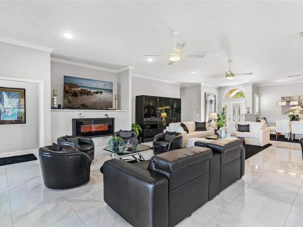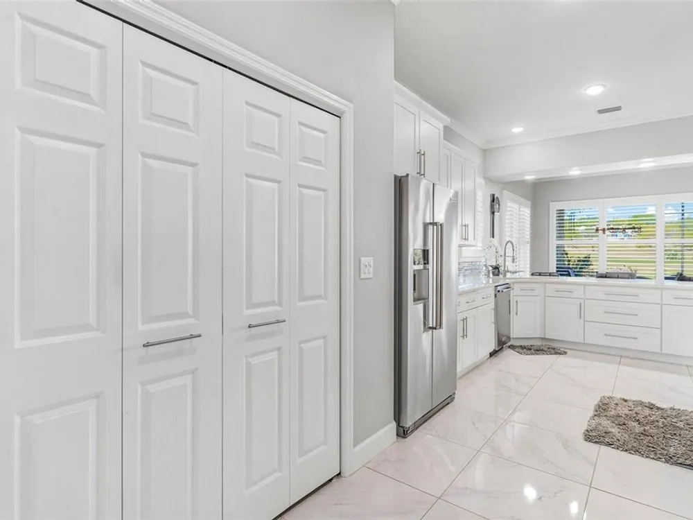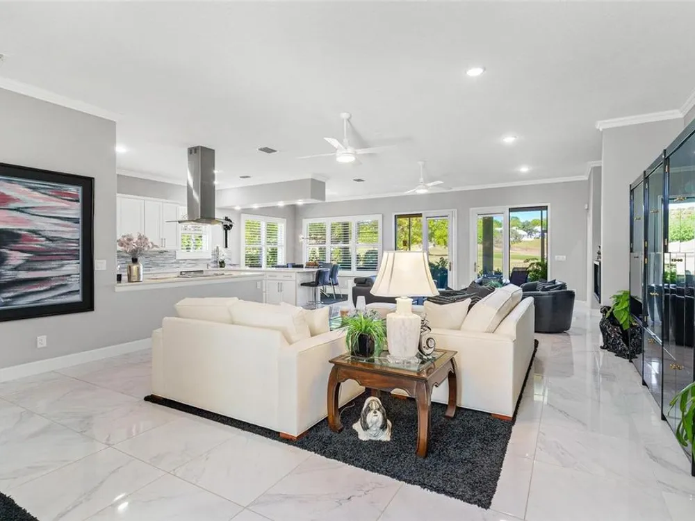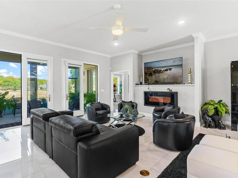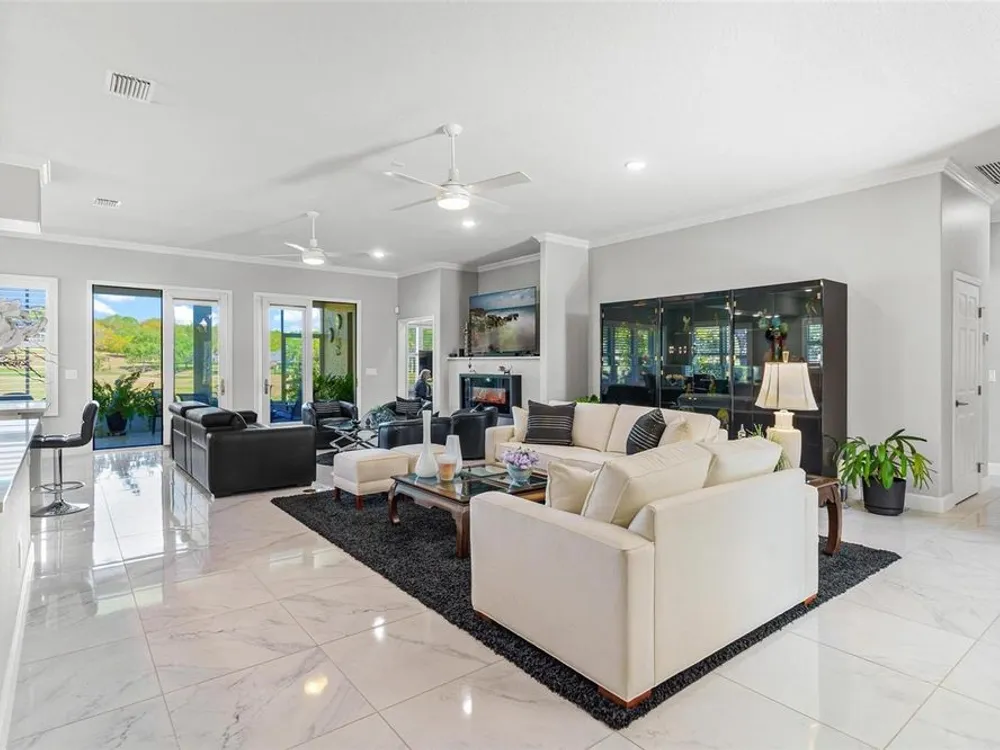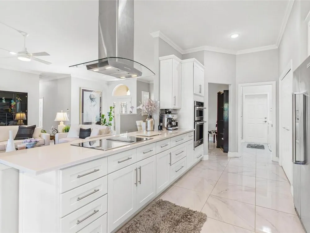 FABULOUS FIND…GOLF FRONTAGE HOME! Step into this unique, custom-built residence that boasts stunning views of the 10th Fairway and scenic pond! This property offers an unparalleled living experience in a highly sought-after, GAURD GATED 24/7 neighborhood! Clubhouse membership is optional!! Three Car Garage offers ample room for your golf cart or additional small vehicular to include a separate custom metal top work station with sink! Completely remodeled and updated, this home is move-in ready! Upon entering, you'll be captivated by the open-concept design featuring a spacious Great Room with a cozy electric fireplace and separate formal dining area. The huge kitchen, “fit for the chef” includes a large breakfast room, Quartz countertops, wall oven, built-in microwave, and a Jenn Aire cooktop with upgraded overhead vented exhaust hood ideal for cooking and entertaining! Additional updates include a new roof (2020), a new hot water heater (2016), and a brand-new HVAC system (2025) ensuring your home stays comfortable year-round! The luxurious Primary Suite is a retreat, offering a generous 17x6 walk-in custom closet. The en suite Primary Bath features a dual-sink raised Quartz vanity, a walk-in glass shower, a soaking tub for ultimate relaxation, and a separate water closet. With a split-bedroom design, your guests will enjoy plenty of privacy in their own space. The remodeled guest bath with a raised Quartz vanity is shared by Bedrooms 2 and 3, which are currently set up with a Murphy bed and desk—perfect for an office space. An inside laundry room with cabinets and almost new washer and dryer are included for your convenience. Enjoy sidewalks for your leisurely strolls in this “all age” desirable Golf Community. Don't miss the chance to make this extraordinary home yours—WELCOME!