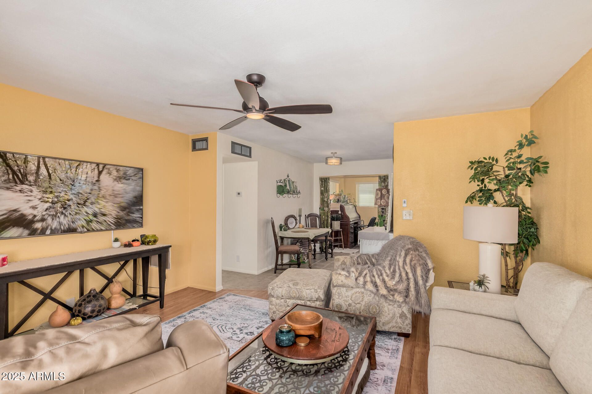 When walking up to this beautifully landscaped home you will appreciate the shade it provides while relaxing on your front porch. Recently painted outside giving it that fresh look! The big 3 (Windows/Roof/HVAC) have been updated just over 5 years ago & the current owners have added a block wall giving you privacy & RV parking in your back yard. A new shed has also been added for that extra storage needed. New SS appliances and updated bathroom top off your new 2 bedroom 1.25 bath home. The AZ room could be used as an office /family room or even a formal dining room. Located in the 55+ community of Dreamland Villa's which has no HOA but offers an optional membership giving you access to wonderful amenities including heated pools, woodworking, pickleball & more!