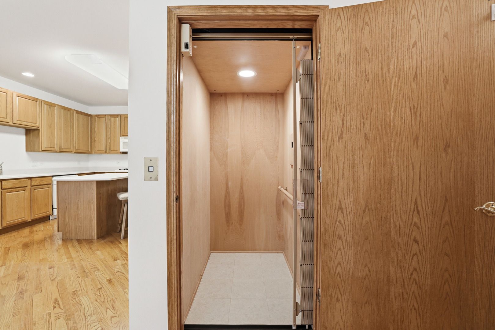 Welcome to Forest Glen's 55+ community! This traditional townhome is loaded with features you didn't think you'd find all in one place, starting with something that makes all the difference: your own private elevator. No stairs required if you don't want them! The huge kitchen is warm and inviting and has so many cabinets and counter space for the chef or baker. Classic oak cabinetry, a planning desk, walk-in pantry, island with seating, warming drawer, double oven, newer disposal, AND an extended butler's pantry with its own sink. Beautiful hardwood floors run throughout the entire first floor and are laid diagonally. Both bedrooms have their own private en suite full bathrooms. The primary suite features vaulted ceilings, a ceiling fan, walk-in closet, and a gorgeous bath with a jetted tub, double bowl sink, and ceramic tile flooring. Laundry is conveniently located right on the second floor where it should be! Fully finished basement with newer carpet, a full bathroom, additional living space, AND a bonus room perfect for an office, craft room, or whatever fits your life. Two-car garage, outdoor patio, and newer furnace and A/C. Forest Glen is one of the most sought-after 55+ communities in the area and homes like this one don't last. Don't wait on this one!