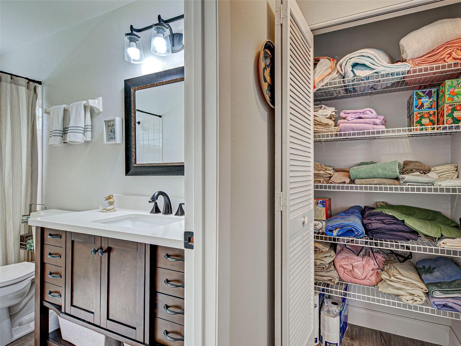 - Cathedral Ceiling(s), Ceiling Fan(s), Eat-in Kitchen, L-Shaped Dining Room, Main Level Primary, Stone Counters, Thermostat, Walk-In Closet(s), Window Treatments
