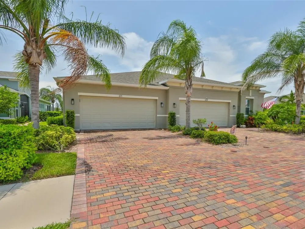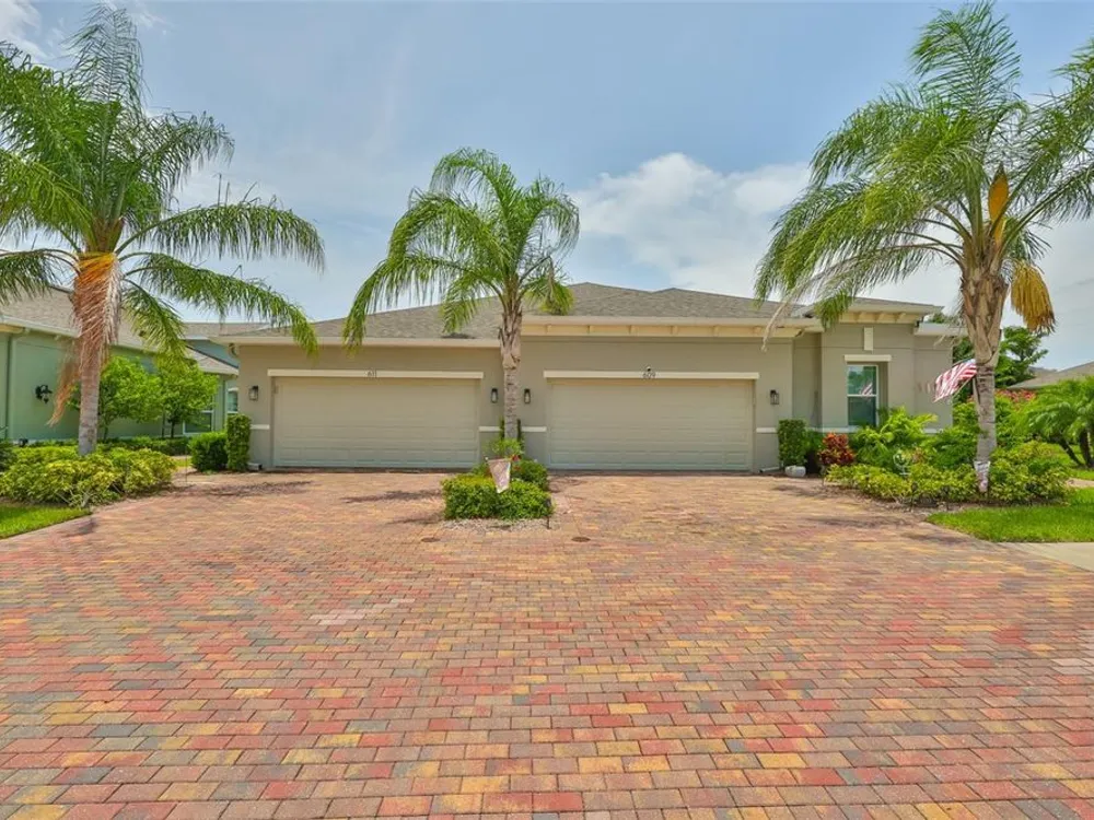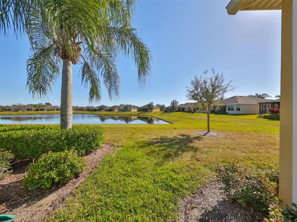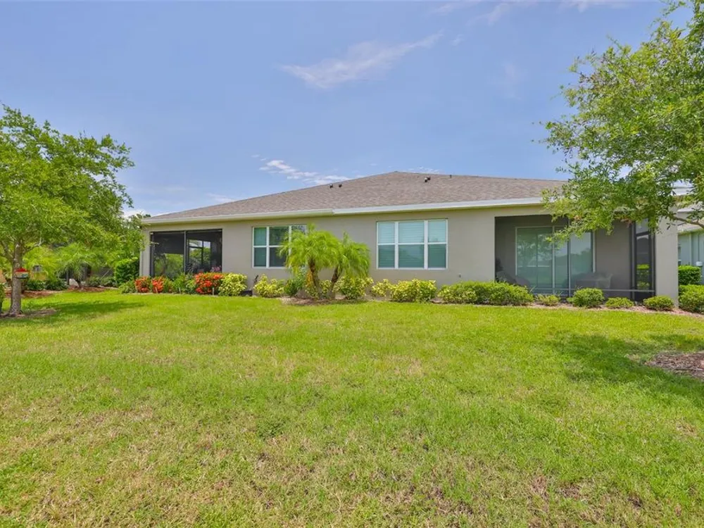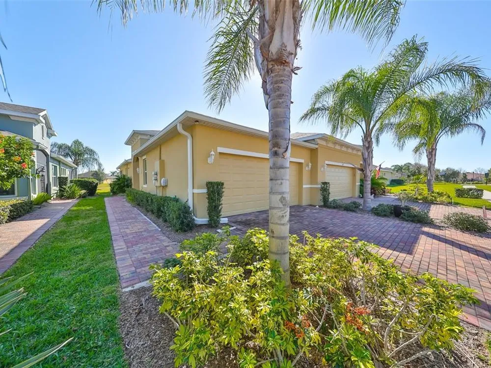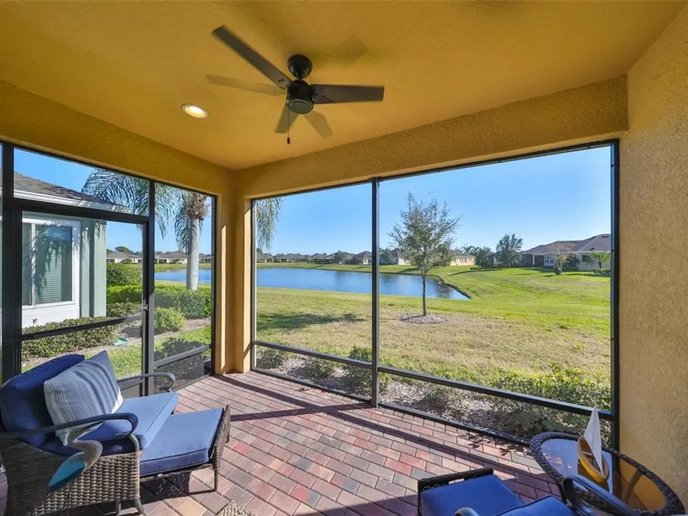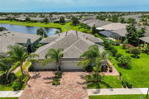 CONTEMPORARY COASTAL and ELEGANT is the best way to describe this MAINTENANCE FREE, SPARKLING CLEAN, WATER VIEW Villa located in the desirable GATED community of Renaissance known as Verona. And it is ONLY 100' from the PRIVATE VERONA POOL RESORT. *A very popular OPEN FLOOR PLAN model, the “Mahogany”, is a 2 bed/2bath home WITH A DEN/OFFICE. It is 4.5 years YOUNG and is than new. This home has all of the touches of a PROFESSIONAL DECORATOR. *The EXPANSIVE KITCHEN includes such HIGH-END FEATURES as GRANITE COUNTERTOPS, STAINLESS STEEL APPLIANCES (including a DOUBLE OVEN), 42” HONEY TONE, ALL WOOD cabinets. *Large, beautiful, LOW E-ENERGY EFFICIENT windows, with PLANTATION SHUTTERS, allow the Floridian sunshine to naturally filter throughout the home. CONTEMPORARY PAINT TONES accent the walls and TREY CEILINGS, which make the CROWN MOLDING pop. The light fixtures are MODERN. *The LARGE OWNERS SUITE is relaxing and CALM with COASTAL tones being carried on through the master bathroom. There is a LARGE, WALK-IN, CALIFORNIA STYLE closet for ultimate storage and ORGANIZATION. The en-suite bath boasts of GRANITE COUNTERS, DUAL SINKS, PRIVATE water closet and lovely walk-in shower. All of the bedrooms are spacious with OVERSIZED windows for maximum enjoyment of the views. *The dining room, while separate is still open to the main floor plan for easy entertaining. *The den/office is comfortable and the only room with carpeting specific for reduced noise. *The LANAI provides the perfect space for grilling, reading or entertaining, while overlooking the water and the wildlife. *The garage has a lovely EPOXY FLOORING and the CUSTOM PAVER-STONE driveway and walkway, adds such a rich feel to the entrance. *One of the best features about this home is that ALL EXTERIOR MAINTENANCE is taken care of by the HOA association. Nothing for you to do but enjoy all that this active community offers. The unique gated community of Verona offers its own private, resort-style amenities and all the pleasures of a hall of fame maintenance free retirement community. Come and enjoy the world-class country club, fine dining, 5 resort style pools, two state-of the-art fitness centers, spa, saunas, hundreds of social and sports clubs and more. Start living the dream!! Sun City Center has 3 beautiful clubhouses, dance, theater, an arts and crafts building, state-of-the-art medical facilities, shopping, endless entertainment & resources all accessible by golf cart. Verona in Sun City Center is a great place to live! Come and see why this is the place to retire, according to the New York Times and have fun, especially with this home. NOTE: Most of the furniture is available for sale under separate bill of sale. Roof 2019; A/C (on continuous service contract) 2019; Water Heater 2023; Water Softener 2021
