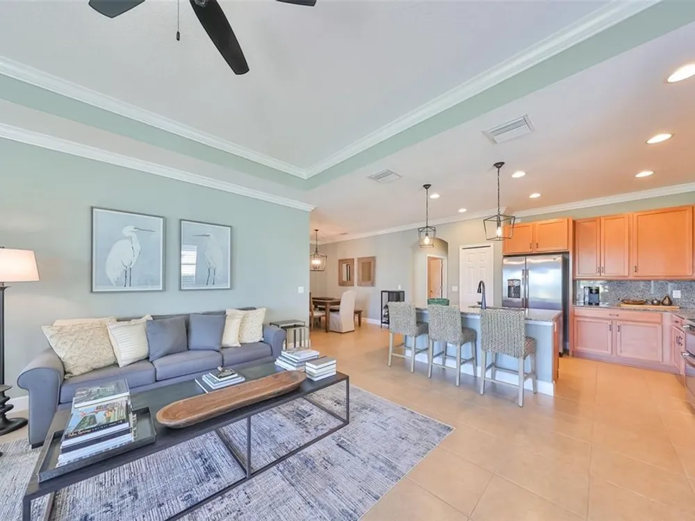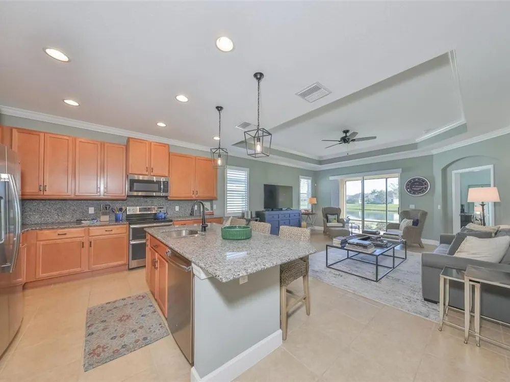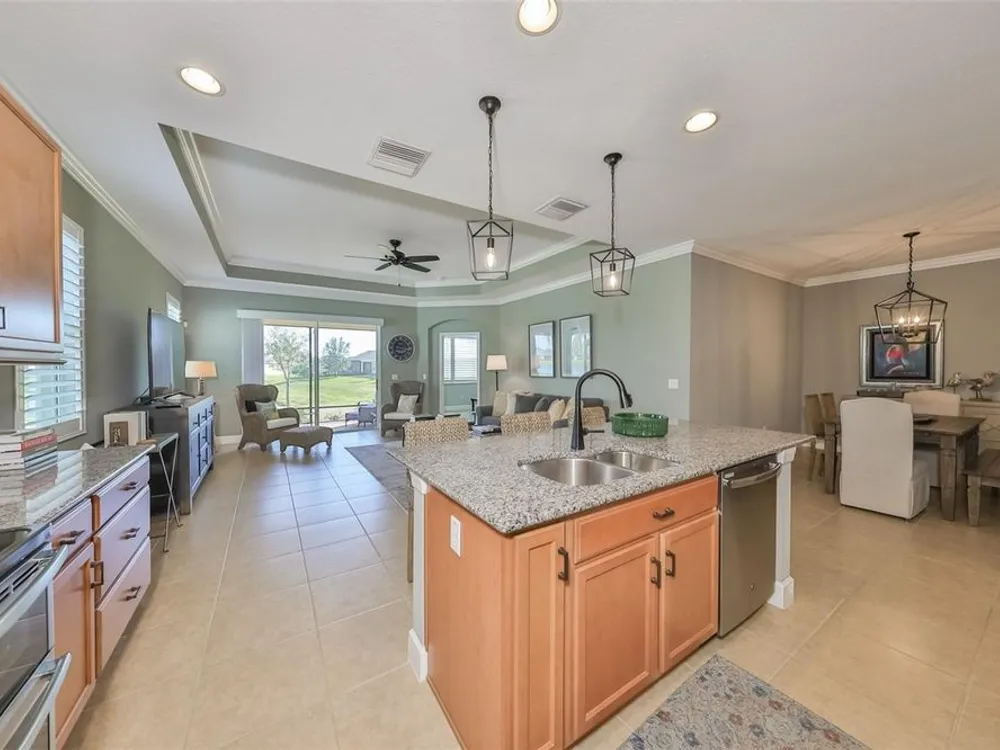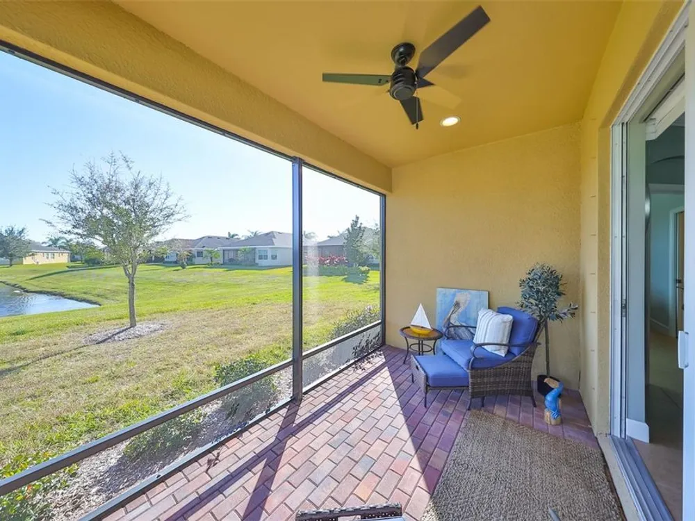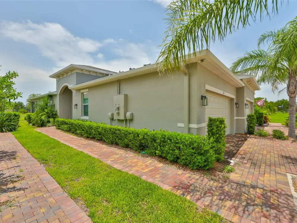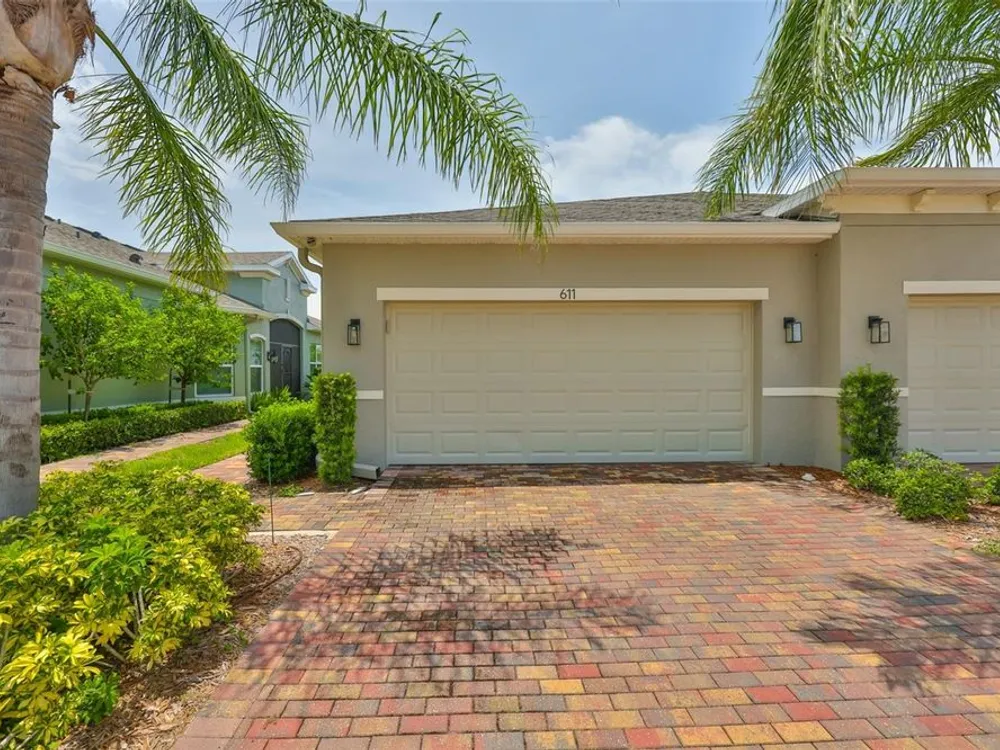 CONTEMPORARY COASTAL and ELEGANT is the best way to describe this MAINTENANCE FREE, SPARKLING CLEAN, WATER VIEW Villa located in the desirable GATED community of Renaissance known as Verona. And it is ONLY 100' from the PRIVATE VERONA POOL RESORT. *A very popular OPEN FLOOR PLAN model, the “Mahogany”, is a 2 bed/2bath home WITH A DEN/OFFICE. It is 4.5 years YOUNG and is than new. This home has all of the touches of a PROFESSIONAL DECORATOR. *The EXPANSIVE KITCHEN includes such HIGH-END FEATURES as GRANITE COUNTERTOPS, STAINLESS STEEL APPLIANCES (including a DOUBLE OVEN), 42” HONEY TONE, ALL WOOD cabinets. *Large, beautiful, LOW E-ENERGY EFFICIENT windows, with PLANTATION SHUTTERS, allow the Floridian sunshine to naturally filter throughout the home. CONTEMPORARY PAINT TONES accent the walls and TREY CEILINGS, which make the CROWN MOLDING pop. The light fixtures are MODERN. *The LARGE OWNERS SUITE is relaxing and CALM with COASTAL tones being carried on through the master bathroom. There is a LARGE, WALK-IN, CALIFORNIA STYLE closet for ultimate storage and ORGANIZATION. The en-suite bath boasts of GRANITE COUNTERS, DUAL SINKS, PRIVATE water closet and lovely walk-in shower. All of the bedrooms are spacious with OVERSIZED windows for maximum enjoyment of the views. *The dining room, while separate is still open to the main floor plan for easy entertaining. *The den/office is comfortable and the only room with carpeting specific for reduced noise. *The LANAI provides the perfect space for grilling, reading or entertaining, while overlooking the water and the wildlife. *The garage has a lovely EPOXY FLOORING and the CUSTOM PAVER-STONE driveway and walkway, adds such a rich feel to the entrance. *One of the best features about this home is that ALL EXTERIOR MAINTENANCE is taken care of by the HOA association. Nothing for you to do but enjoy all that this active community offers. The unique gated community of Verona offers its own private, resort-style amenities and all the pleasures of a hall of fame maintenance free retirement community. Come and enjoy the world-class country club, fine dining, 5 resort style pools, two state-of the-art fitness centers, spa, saunas, hundreds of social and sports clubs and more. Start living the dream!! Sun City Center has 3 beautiful clubhouses, dance, theater, an arts and crafts building, state-of-the-art medical facilities, shopping, endless entertainment & resources all accessible by golf cart. Verona in Sun City Center is a great place to live! Come and see why this is the place to retire, according to the New York Times and have fun, especially with this home. NOTE: Most of the furniture is available for sale under separate bill of sale. Roof 2019; A/C (on continuous service contract) 2019; Water Heater 2023; Water Softener 2021