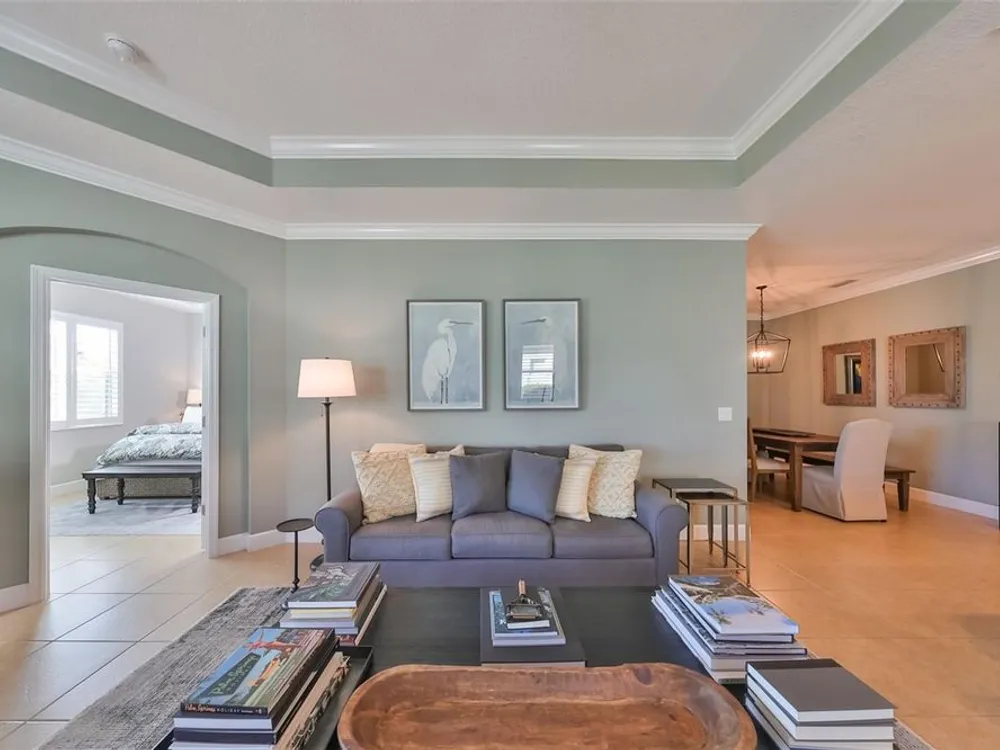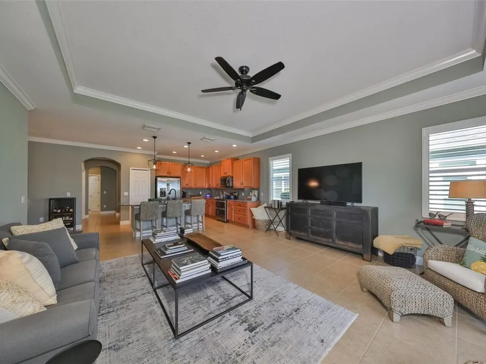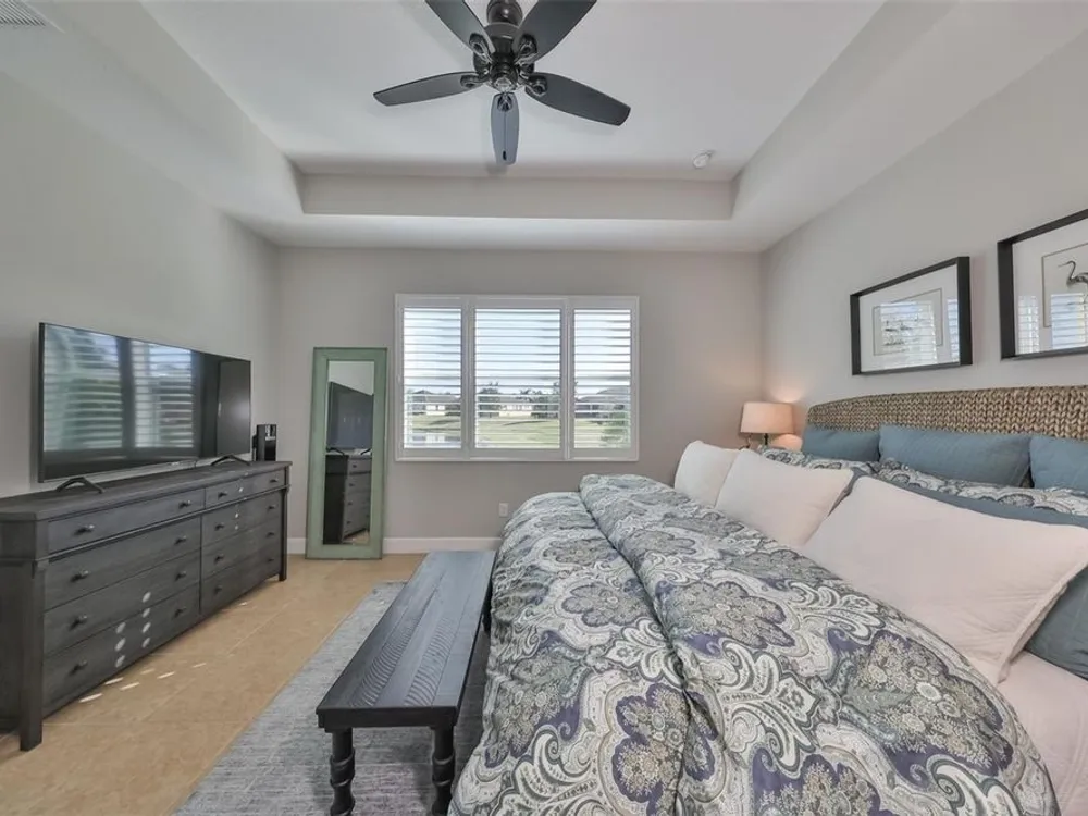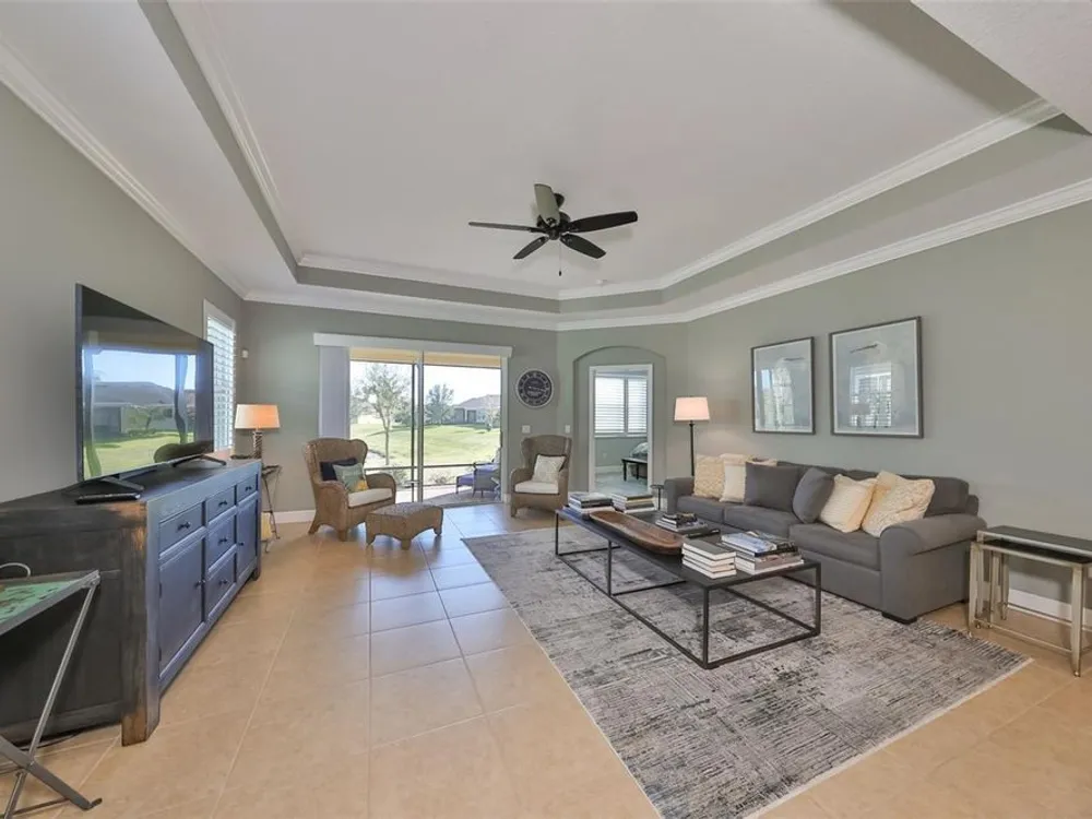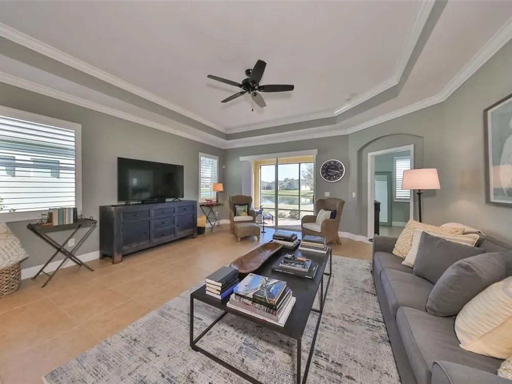 - Ceiling Fan(s), Crown Molding, High Ceilings, Living/Dining Room, Split Bedrooms, Thermostat, Tray Ceiling(s), Window Treatments