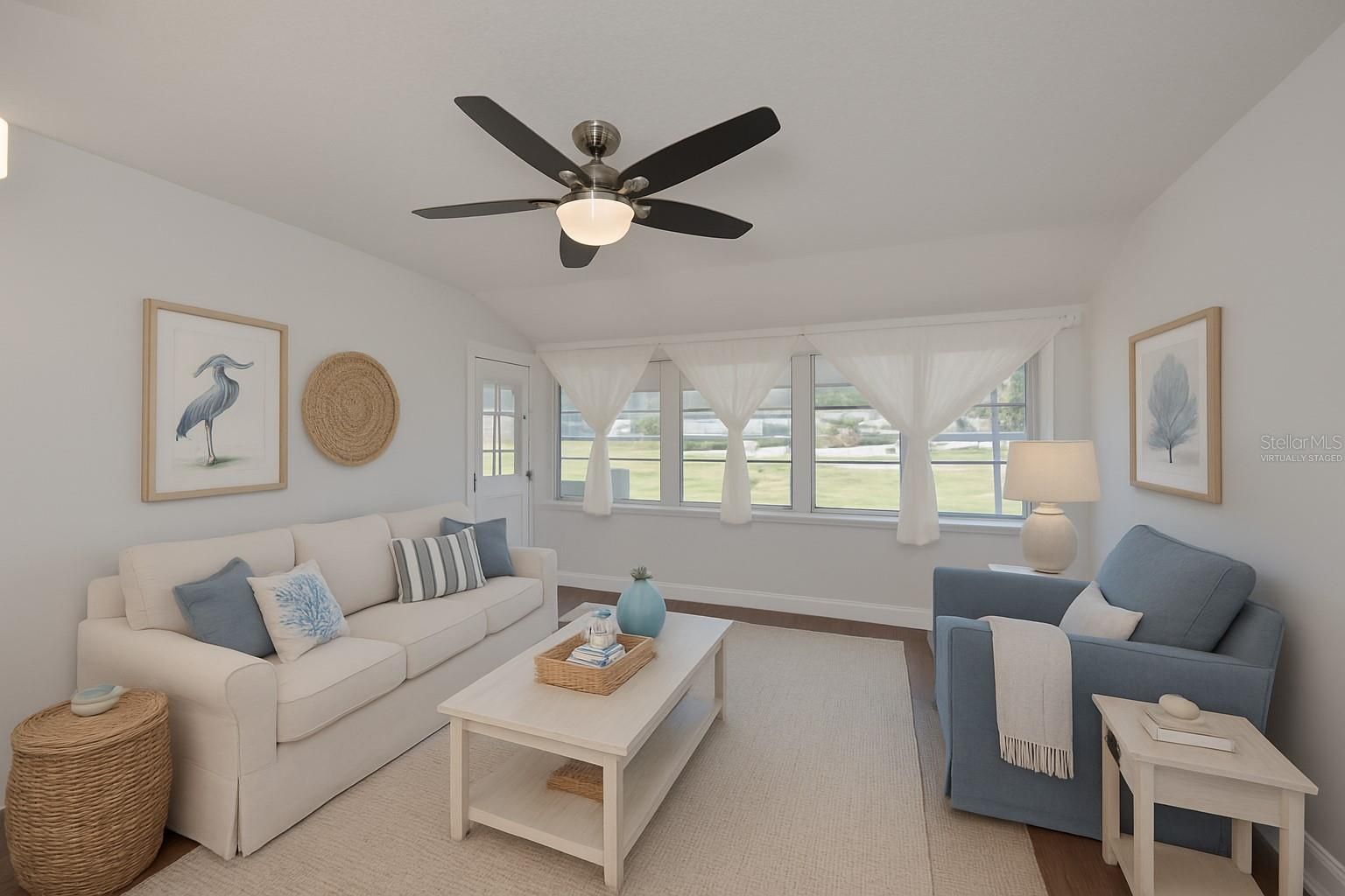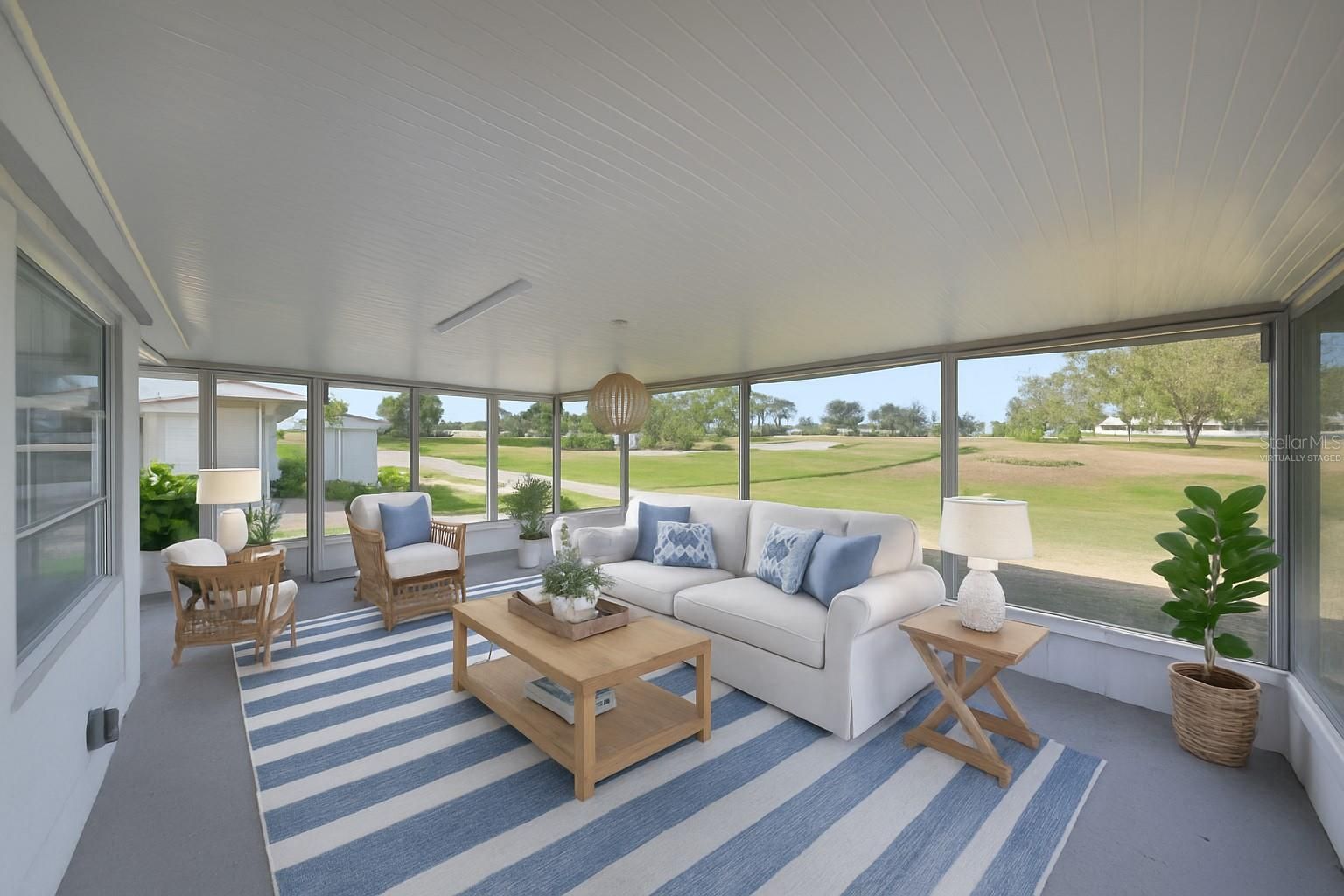 One or more photo(s) has been virtually staged. Welcome to this STUNNING, renovated 2-bedroom, 2-bath home in the desirable Sun City Center community! This GORGEOUS residence has been THOUGHTFULLY UPDATED from top to bottom! From the front door, luxury surrounds you at every turn! The warm elegance of vinyl plank flooring flows effortlessly throughout this home. With SIX-PANEL DOORS, the style of every room is elevated. Step into a beautifully remodeled kitchen, featuring sleek modern cabinetry, top-of-the-line appliances, and stunning finishes, making every meal a joy to prepare! The spacious primary suite with a COMPLETELY renovated bathroom is an owner's delight! Your guests will enjoy the COMPLETELY RENOVATED second FULL bathroom and spacious bedroom as well. Say goodbye to popcorn ceilings- this home flaunts a sleek finish for a fresh, contemporary look! Also featuring newer windows for peace of mind. Situated on a serene water view lot, backing to the closed north golf course, the setting provides exceptional privacy with peaceful, picturesque views from your screened in Lanai. For a more social experience, sit on your newly screened front porch and wave Hi to all your neighbors! The spacious 2-car garage offers ample storage and convenience. Sun City Center has it all! A GOLF CART community offering world-class amenities: multiple pools, pickleball, fitness facility and classes, a range of crafting classes, social activities and countless clubs! Nearby shopping, medical facilities, restaurants, and pharmacies! Close and Convenient access to I-75, Tampa International Airport, crystal clear beaches, theme parks, and several professional sports teams! Delivering COMFORT, STYLE, and CAREFREE LIVING, don't miss the RARE OPPORTUNITY of this MOVE-IN READY home to experience the best of Sun City Center!