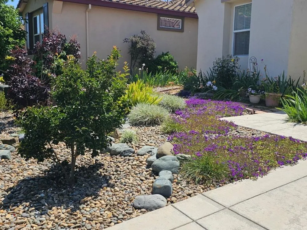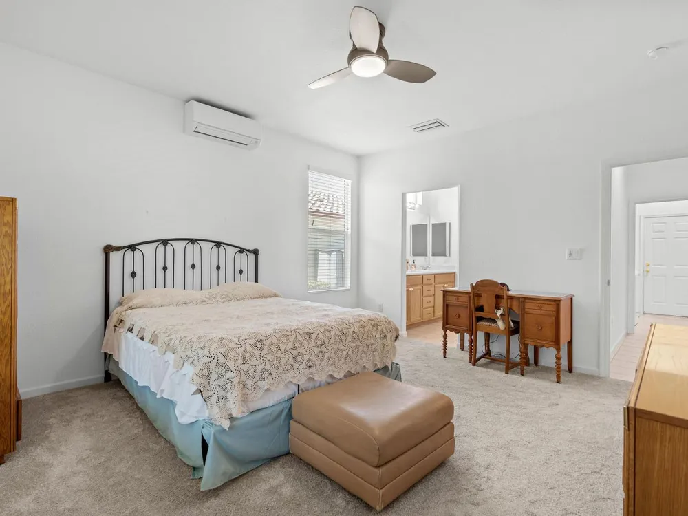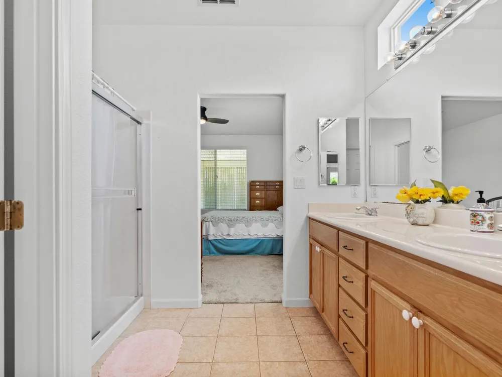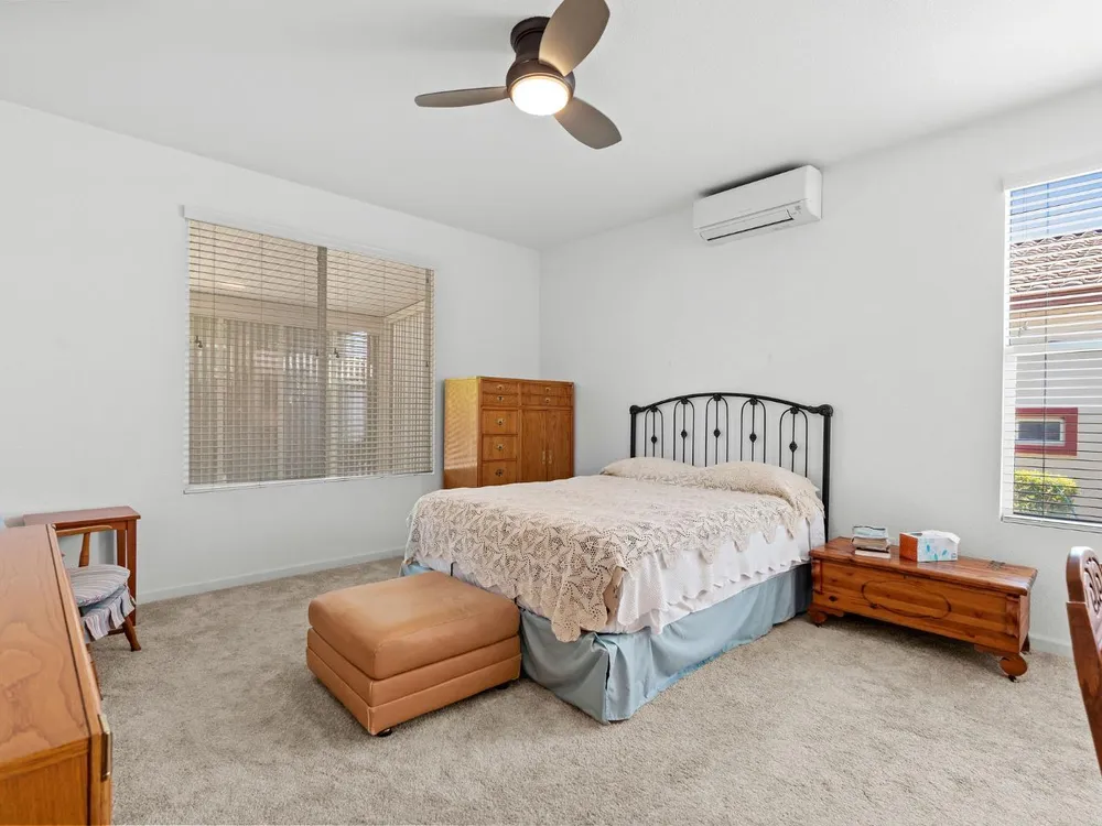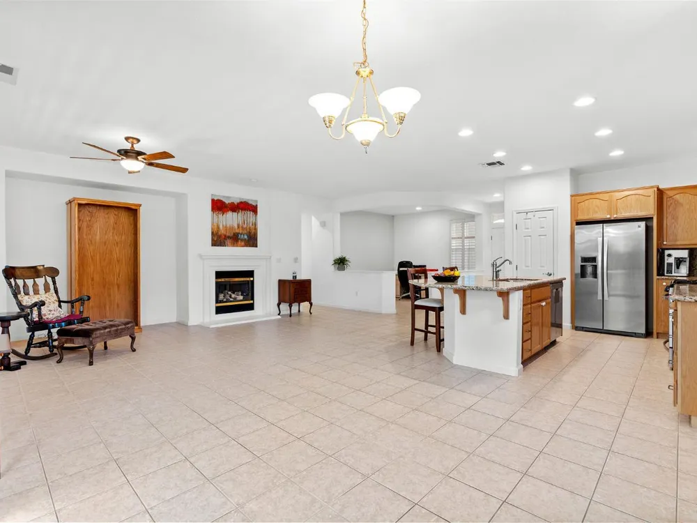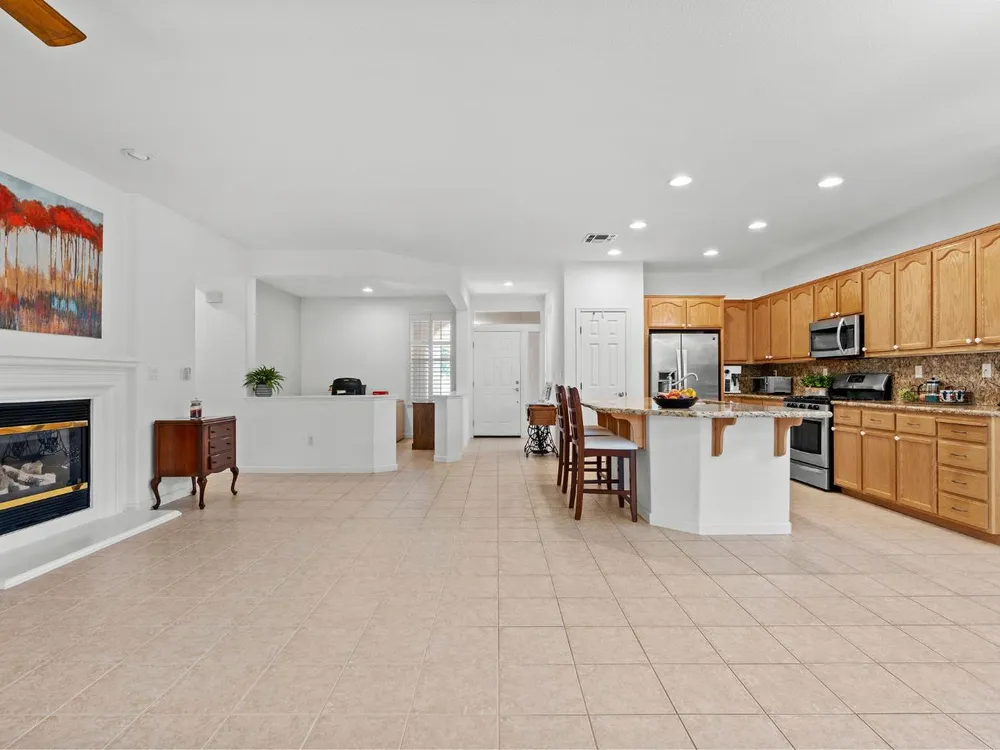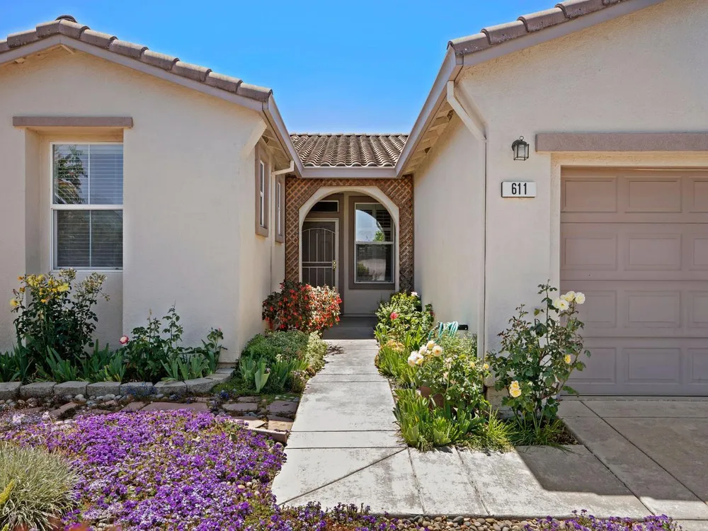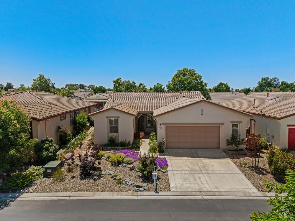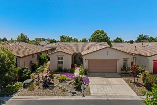 A beautiful Atherton on Twin Lakes with a lush low maintenance rock garden in front adorned by lovely colorful flowers. Built in 2004 ~ with 1,579 sq ft. and features 2 bedrooms, 2 baths, plus an open den/office area and a 2.5 car garage. Beautiful upgrades inside with granite slab counters and full backsplash, tile flooring, and a spacious pantry in the kitchen. Tile flooring in the living areas and open den space with 2 year old carpeting in the bedrooms. A cozy gas burning fireplace in the great room provides a warm and inviting atmosphere. Includes washer and dryer which are only 2 years old and the 2.5 car garage is perfect for the extra tools and toys, cars or workshop you've been dreaming of. The backyard is private and has a large covered patio, perfect for outdoor living. Trilogy is a 55 plus community.