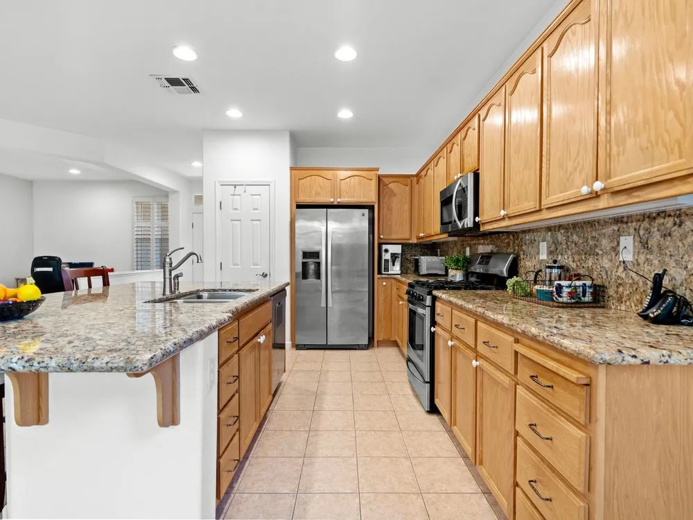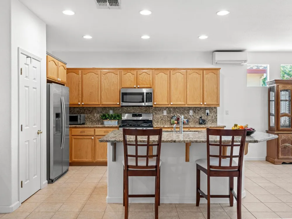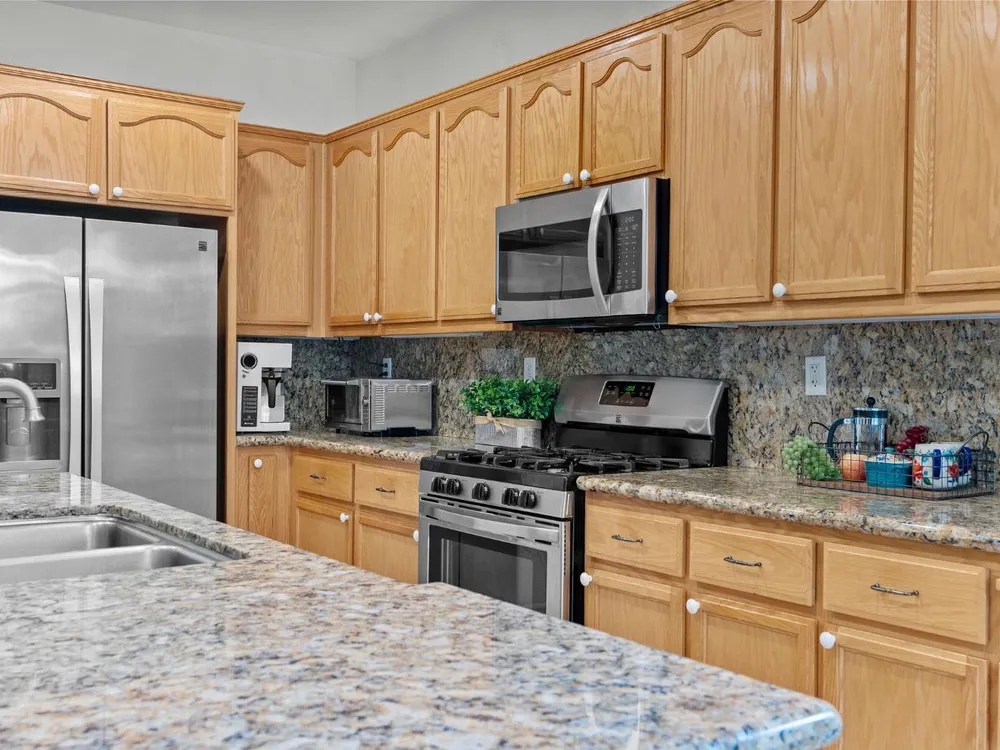 - Dishwasher, Disposal, Free-Standing Gas Range, Free-Standing Refrigerator, Gas Water Heater, Range Hood, Microwave