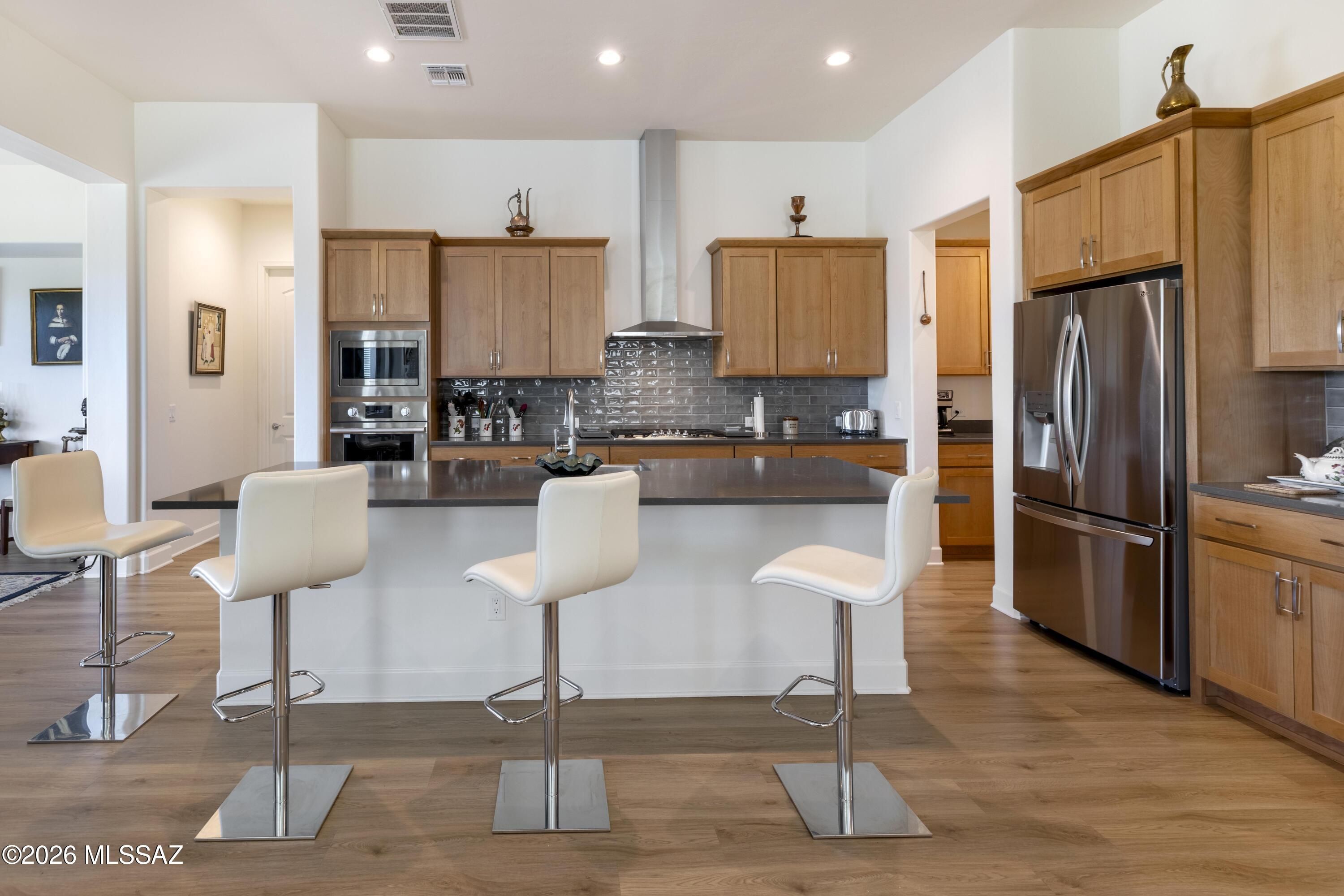 Your Private Desert Retreat with Breathtaking Mountain ViewsWelcome to refined desert living in this stunning Avalon model located in the highly sought-after SaddleBrooke Ranch community. Offering nearly 3,000 square feet of thoughtfully designed living space, this exceptional residence features a highly flexible layout with two spacious bedrooms, a den, and an additional office/bonus room with double doors and a closet--ideal for a variety of uses such as a home office, guest space, or hobby room. From the moment you step inside, you'll appreciate the extensive upgrades and attention to detail throughout. The gourmet kitchen is beautifully appointed with rich maple-stained cabinetry, elegant quartz countertops, and upgraded stainless steel appliances, including the refrigerator.