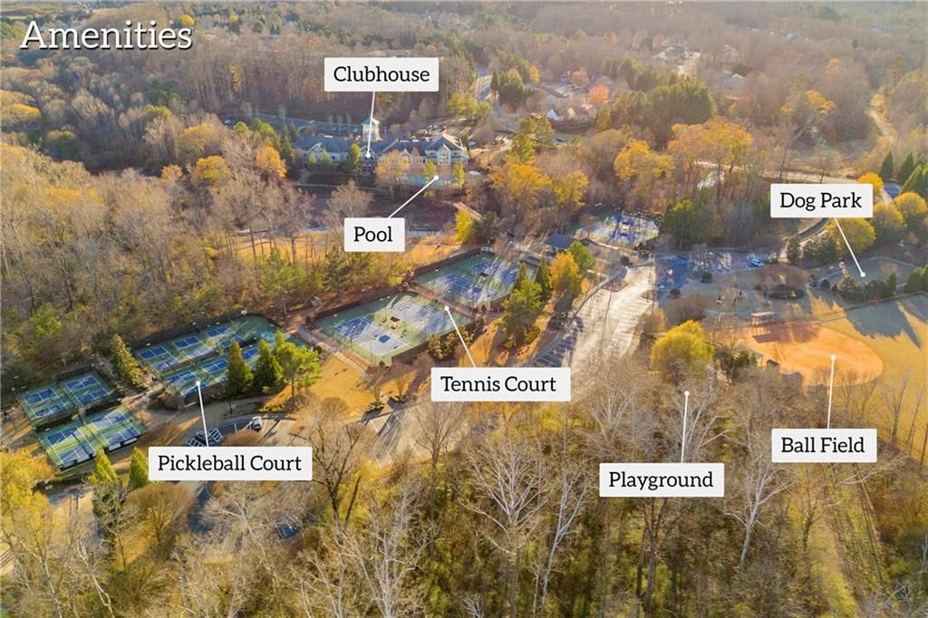 - Clubhouse, Dog Park, Fishing, Fitness Center, Gated, Home Owners Association, Pickleball, Playground, Pool, Sidewalks, Street Lights, Tennis Court(s)