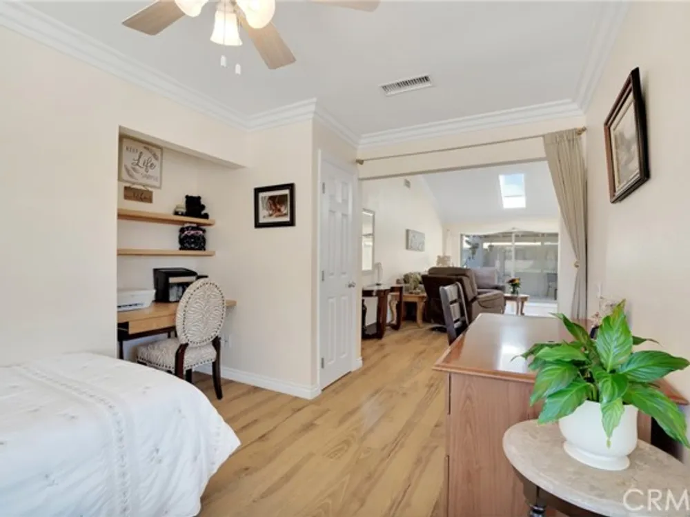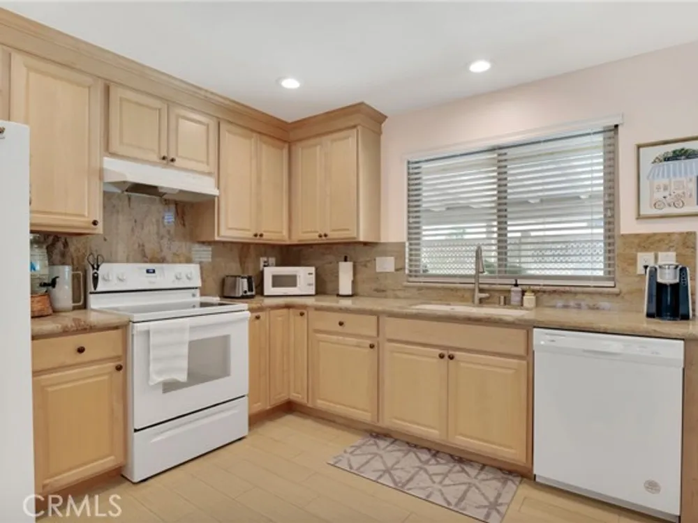 Welcome to Leisure Village, a highly desirable 55+ community offering comfort, convenience, and an active lifestyle. This beautifully remodeled "El Dorado" floorplan home features 3 spacious bedrooms, 2 bathrooms, and 1,498 sq. ft. of living space. Step inside to an open floor plan filled with natural light, highlighted by wood laminate flooring, newer double-paned windows, plantation shutters, and updated window treatments. The updated kitchen has newer cabinetry and granite countertops and flows seamlessly into the dining & living areas, perfect for both relaxing and entertaining. Enjoy the convenience of an enclosed & permitted patio with a section of turf that is ideal for morning coffee or evening gatherings, plus an in-home washer & dryer, newer HVAC and an attached 1-car garage. Move-in ready and thoughtfully upgraded, this home combines style and functionality in one of the area’s most sought-after communities. HOA includes trash, water, sewer, cable, wifi, pool, spa, pickleball courts, tennis courts, gym, clubhouse, billiard room, card room, exterior maintenance including the roof, landscaping, maintenance of grounds, 24-guard gate, golf course & RV parking.