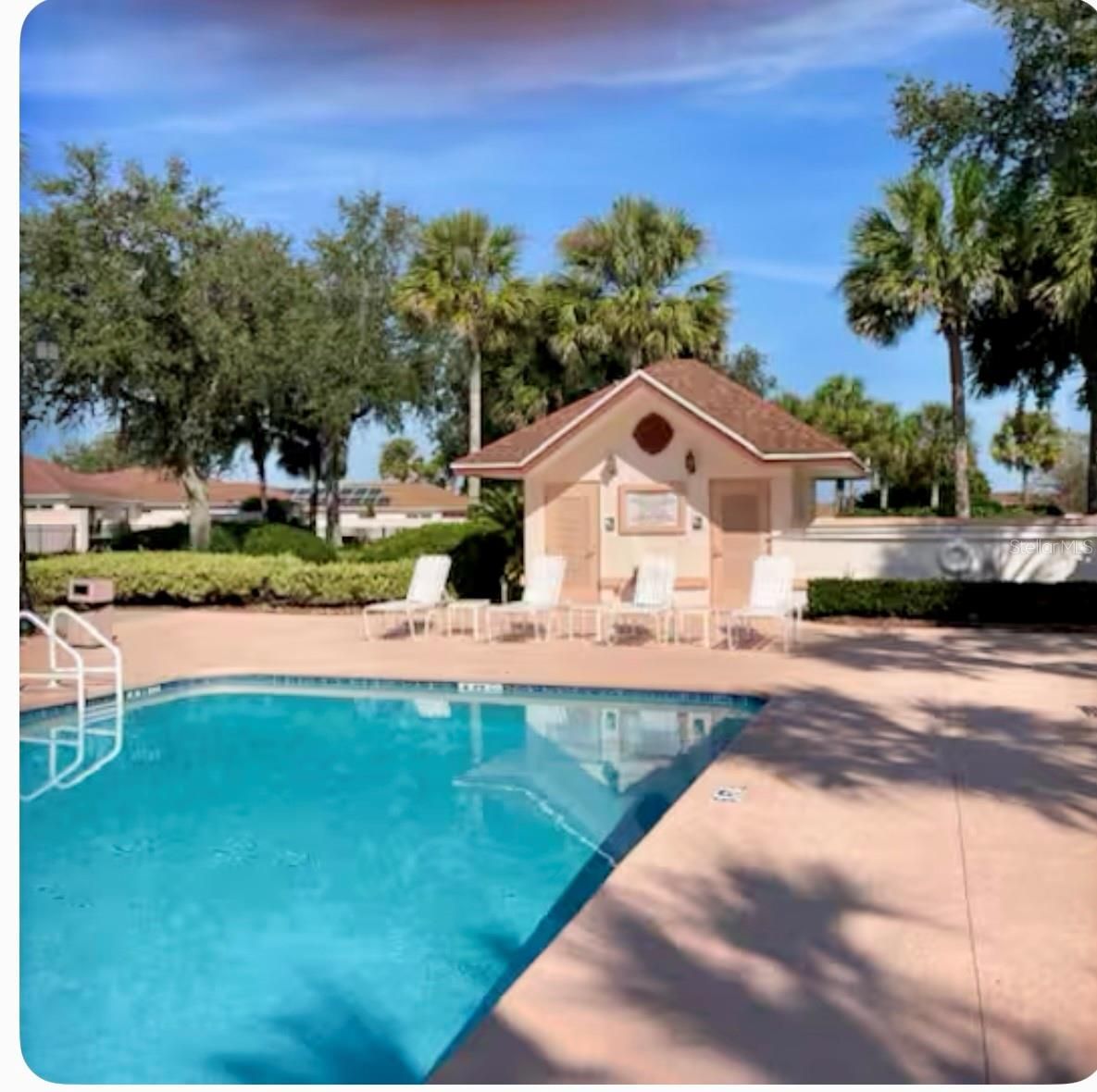 Bond Paid. Beautifully maintained Baja model COURTYARD villa located in the highly sought-after dela Mesa Villas of Rio Grande. This intimate enclave offers its own private, heated saltwater pool and a nearly two-acre park with walking paths, GAZEBO, and a relaxed, neighborly atmosphere. The home was freshly painted this month (2025) and features a brand-new 2025 ROOF, a 2018 HVAC system, and a HOT WATER heater insured by Duke Energy. An electric GOLF CART (2015) with new batteries is INCLUDED as is the FURNITURE. The interior showcases GRANITE countertops throughout and updated cabinetry, a 1.5 car garage and newer WASHER and DRYER. Solar tubes bring natural light into both bathrooms. Sliding glass doors open to a FLORIDA ROOM, providing additional living space ideal for relaxing or entertaining. Too sunny? Use your retractable awning! No grass courtyard. The courtyard-style design enhances privacy while maintaining a light, open feel and is perfect for your pet as well. De la Mesa Villa's residents enjoy a serene park setting with a walking trail, monthly complimentary breakfasts at the gazebo, and Friday evening HAPPY HOUR. The PRIVATE COMMUNITY POOL is well-appointed with clean restrooms and a true resort-style ambiance. Located in a 55+ community, this property is a short walk to Spanish Springs Town Square and approximately 2.5 miles from Sumter Landing. Close proximity to medical facilities, 38 RECREATION centers, dining and shopping. Whether your passion is Golf or Pickleball, you will find numerous Championship and Executive GOLF COURSES , and over 200 PICKLEBALL courts making this an exceptional Villages opportunity. You will soon see why everyone calls this their HAPPY PLACE. Did I mention we have over 3000 clubs to choose from? What are you waiting for, get out of the cold and come on down!