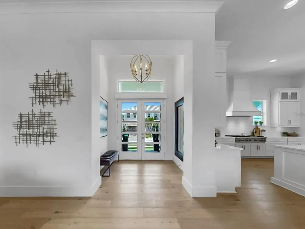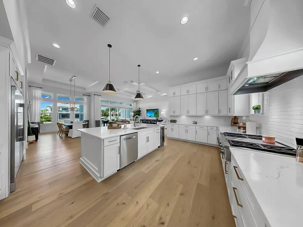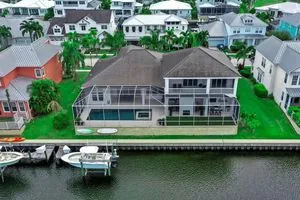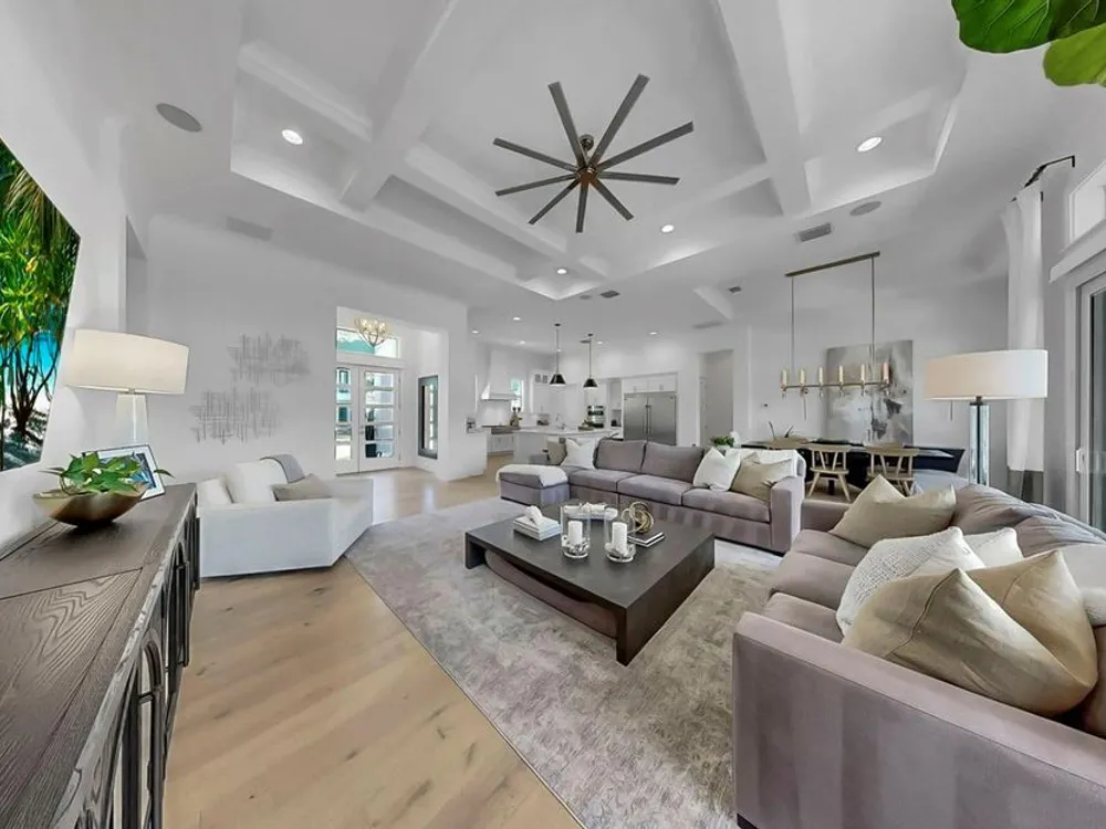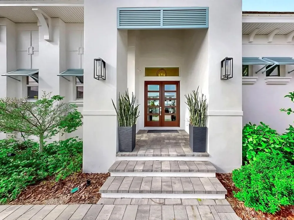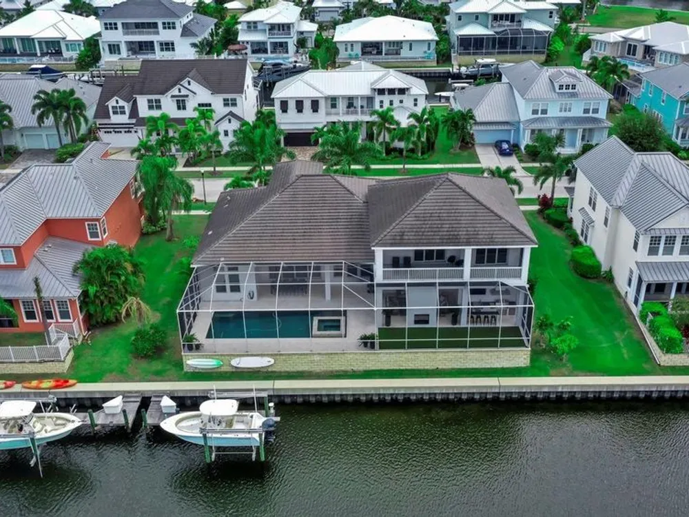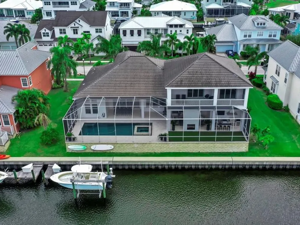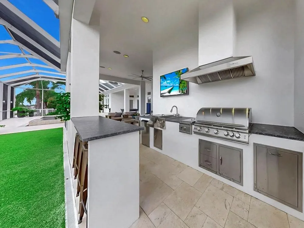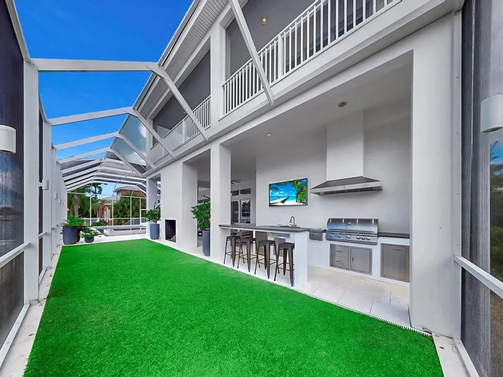 Luxury Coastal Waterfront Estate with Private Dock & Outdoor Oasis. Welcome to this exceptional 4-bedroom, 4-bathroom waterfront estate in a prestigious gated community offering direct access to the open waters of Tampa Bay. Built in 2020 with no detail overlooked, this home blends modern elegance with relaxed coastal living, creating the perfect sanctuary for those who love both luxury and the water. Boating enthusiasts will appreciate the private dock with a 13,000 lb boat lift, providing quick and easy access to the Bay. The outdoor living space is a true showstopper, featuring a resort-style saltwater pool and spa, a fully equipped outdoor kitchen, covered lounge with fireplace, and premium turf grass for low-maintenance beauty. Inside, the open-concept layout showcases high-end finishes throughout, including wood flooring, porcelain tile, and luxury carpet. The gourmet kitchen is the heart of the home, complete with an oversized island, quartz countertops, walk-in pantry, top-of-the-line appliances, and custom lighting and cabinetry. The main-floor primary suite offers a private retreat with a spa-inspired bathroom and dual custom walk-in closets. A dedicated home office provides ideal work-from-home functionality, while the upstairs bonus room offers flexible space for a media room, gym, or playroom. Upstairs, two generously sized ensuite bedrooms each feature full private baths and share access to a waterfront balcony, perfect for enjoying peaceful sunsets. Additional highlights include custom ceilings and window treatments, a 3-car garage, and thoughtfully designed indoor and outdoor living spaces that make this home ideal for entertaining and everyday living. This is more than a home - it's a lifestyle of waterfront luxury, modern design, and effortless elegance.