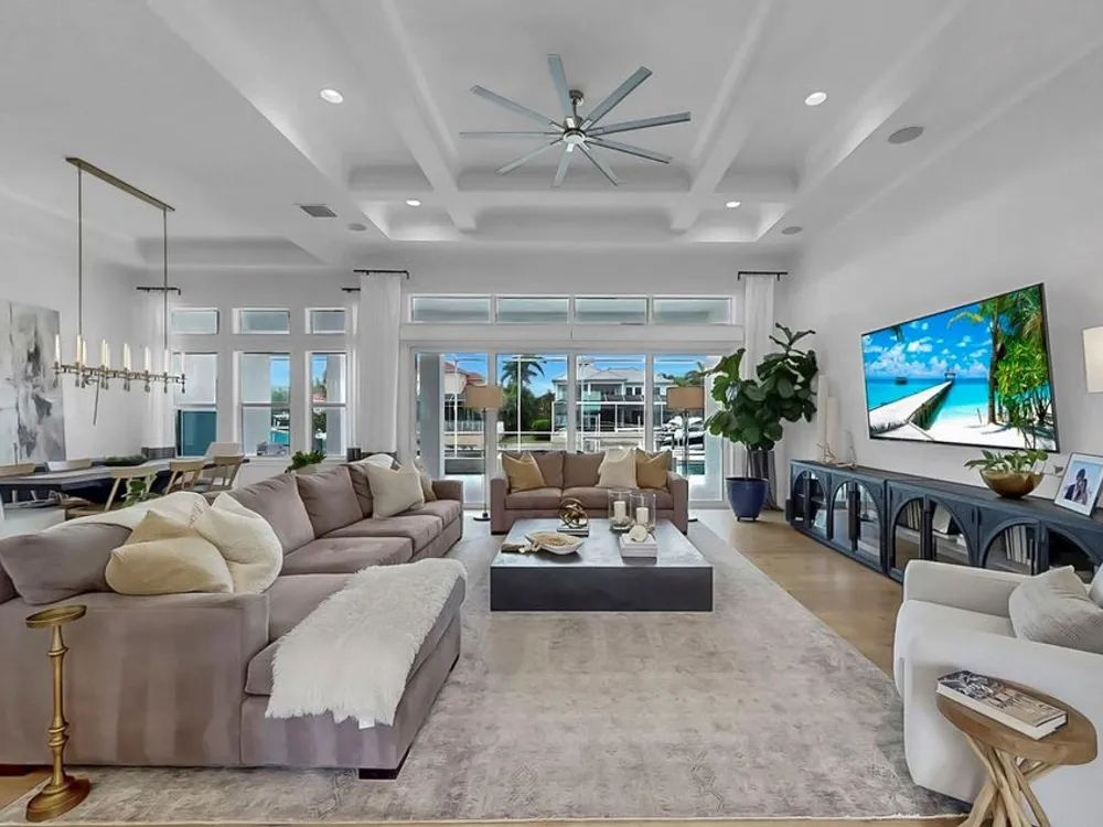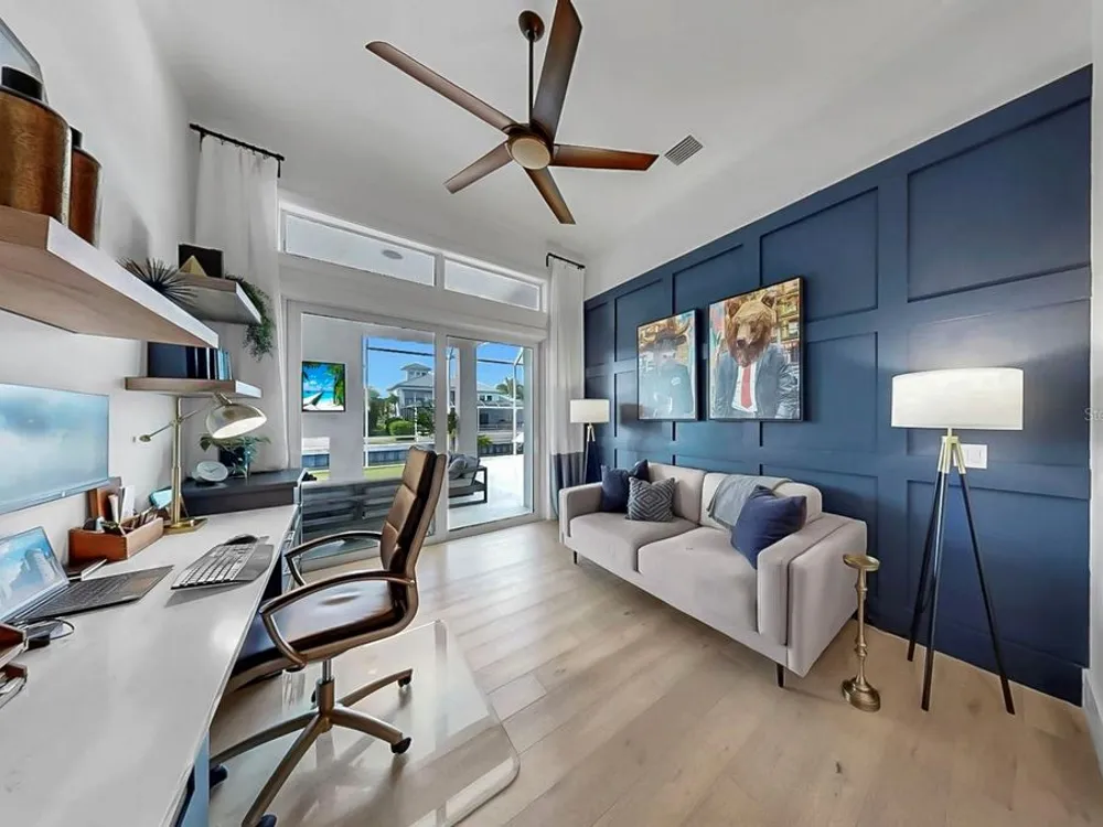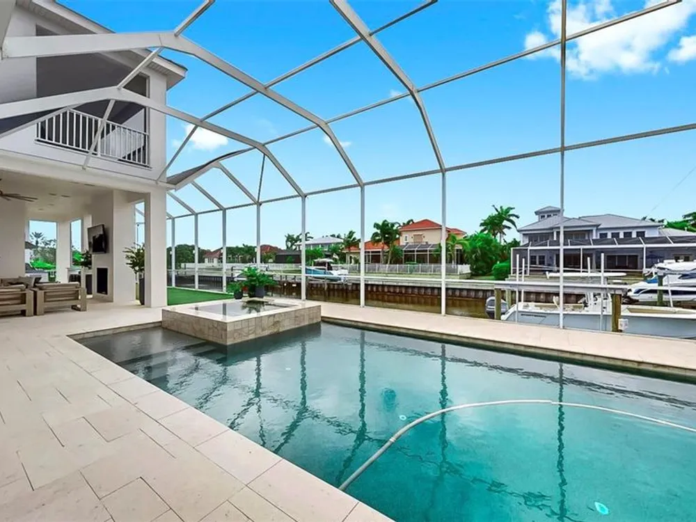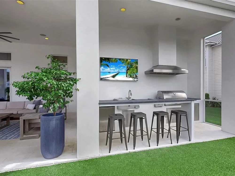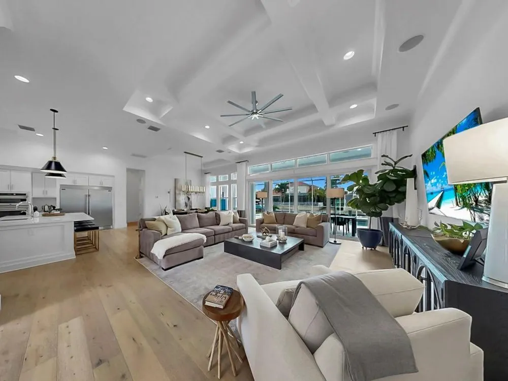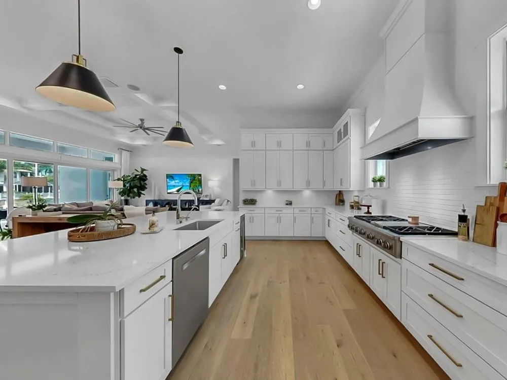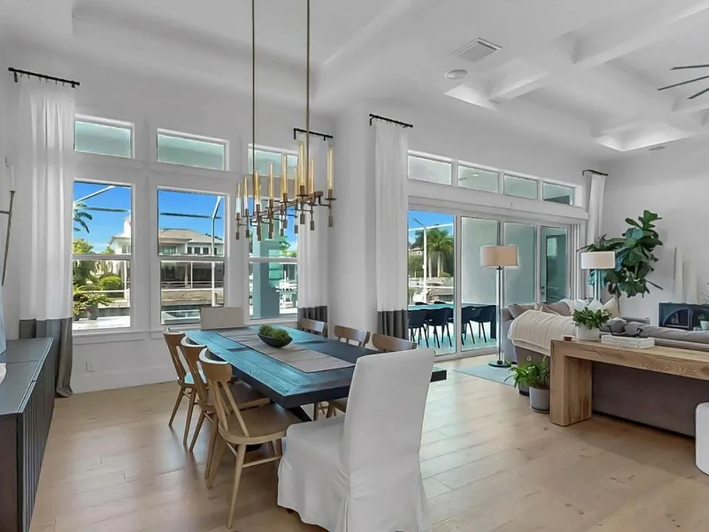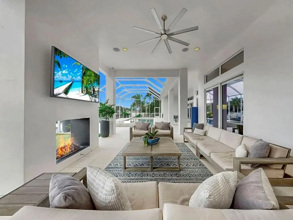 Luxury Coastal Waterfront Estate with Private Dock & Outdoor Oasis. Welcome to this exceptional 4-bedroom, 4-bathroom waterfront estate in a prestigious gated community offering direct access to the open waters of Tampa Bay. Built in 2020 with no detail overlooked, this home blends modern elegance with relaxed coastal living, creating the perfect sanctuary for those who love both luxury and the water. Boating enthusiasts will appreciate the private dock with a 13,000 lb boat lift, providing quick and easy access to the Bay. The outdoor living space is a true showstopper, featuring a resort-style saltwater pool and spa, a fully equipped outdoor kitchen, covered lounge with fireplace, and premium turf grass for low-maintenance beauty. Inside, the open-concept layout showcases high-end finishes throughout, including wood flooring, porcelain tile, and luxury carpet. The gourmet kitchen is the heart of the home, complete with an oversized island, quartz countertops, walk-in pantry, top-of-the-line appliances, and custom lighting and cabinetry. The main-floor primary suite offers a private retreat with a spa-inspired bathroom and dual custom walk-in closets. A dedicated home office provides ideal work-from-home functionality, while the upstairs bonus room offers flexible space for a media room, gym, or playroom. Upstairs, two generously sized ensuite bedrooms each feature full private baths and share access to a waterfront balcony, perfect for enjoying peaceful sunsets. Additional highlights include custom ceilings and window treatments, a 3-car garage, and thoughtfully designed indoor and outdoor living spaces that make this home ideal for entertaining and everyday living. This is more than a home - it's a lifestyle of waterfront luxury, modern design, and effortless elegance.