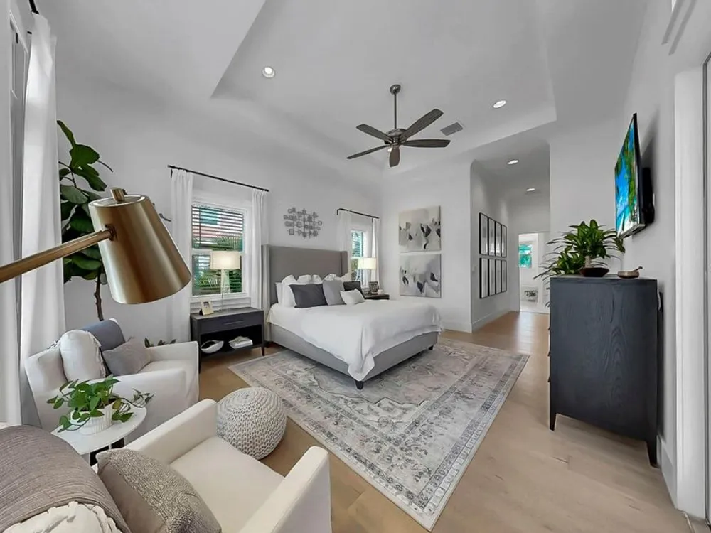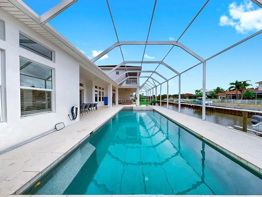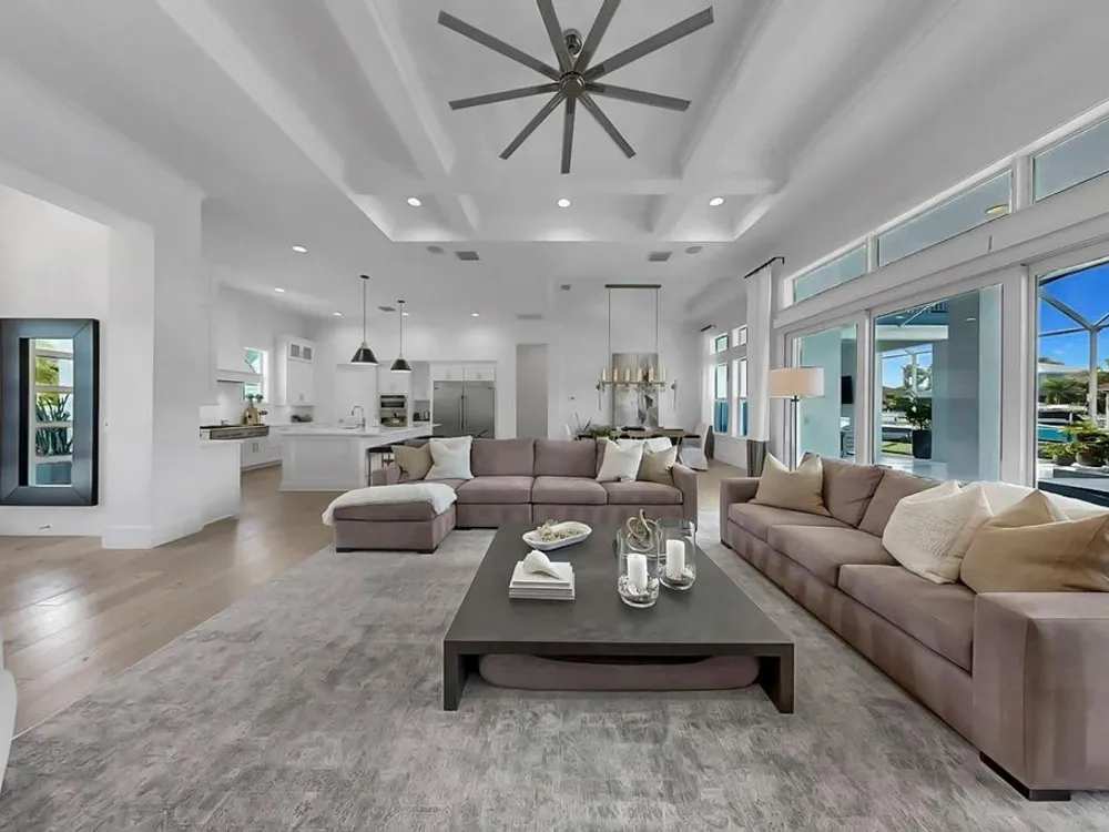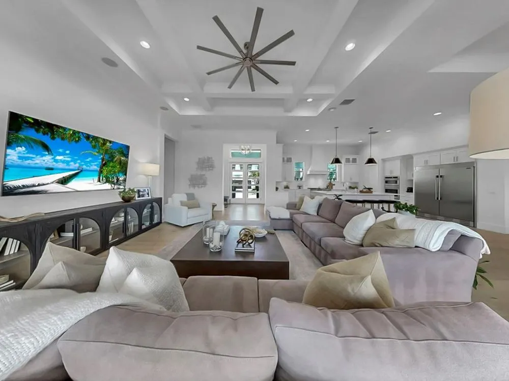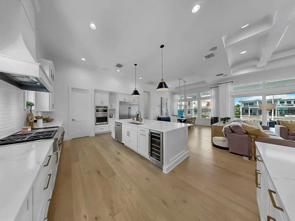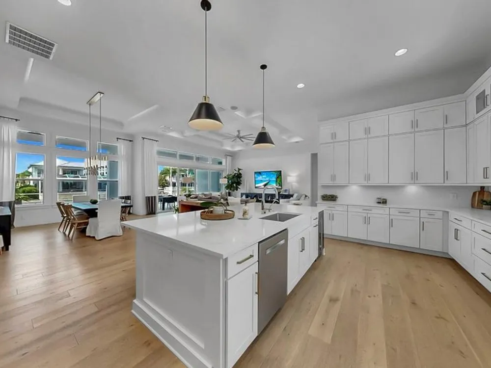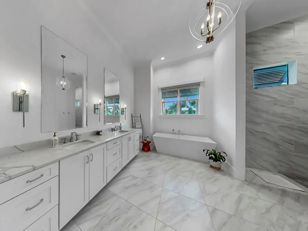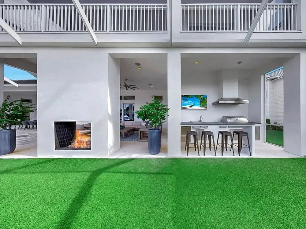 Luxury Coastal Waterfront Estate with Private Dock & Outdoor Oasis. Welcome to this exceptional 4-bedroom, 4-bathroom waterfront estate in a prestigious gated community offering direct access to the open waters of Tampa Bay. Built in 2020 with no detail overlooked, this home blends modern elegance with relaxed coastal living, creating the perfect sanctuary for those who love both luxury and the water. Boating enthusiasts will appreciate the private dock with a 13,000 lb boat lift, providing quick and easy access to the Bay. The outdoor living space is a true showstopper, featuring a resort-style saltwater pool and spa, a fully equipped outdoor kitchen, covered lounge with fireplace, and premium turf grass for low-maintenance beauty. Inside, the open-concept layout showcases high-end finishes throughout, including wood flooring, porcelain tile, and luxury carpet. The gourmet kitchen is the heart of the home, complete with an oversized island, quartz countertops, walk-in pantry, top-of-the-line appliances, and custom lighting and cabinetry. The main-floor primary suite offers a private retreat with a spa-inspired bathroom and dual custom walk-in closets. A dedicated home office provides ideal work-from-home functionality, while the upstairs bonus room offers flexible space for a media room, gym, or playroom. Upstairs, two generously sized ensuite bedrooms each feature full private baths and share access to a waterfront balcony, perfect for enjoying peaceful sunsets. Additional highlights include custom ceilings and window treatments, a 3-car garage, and thoughtfully designed indoor and outdoor living spaces that make this home ideal for entertaining and everyday living. This is more than a home - it's a lifestyle of waterfront luxury, modern design, and effortless elegance.