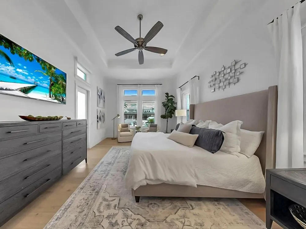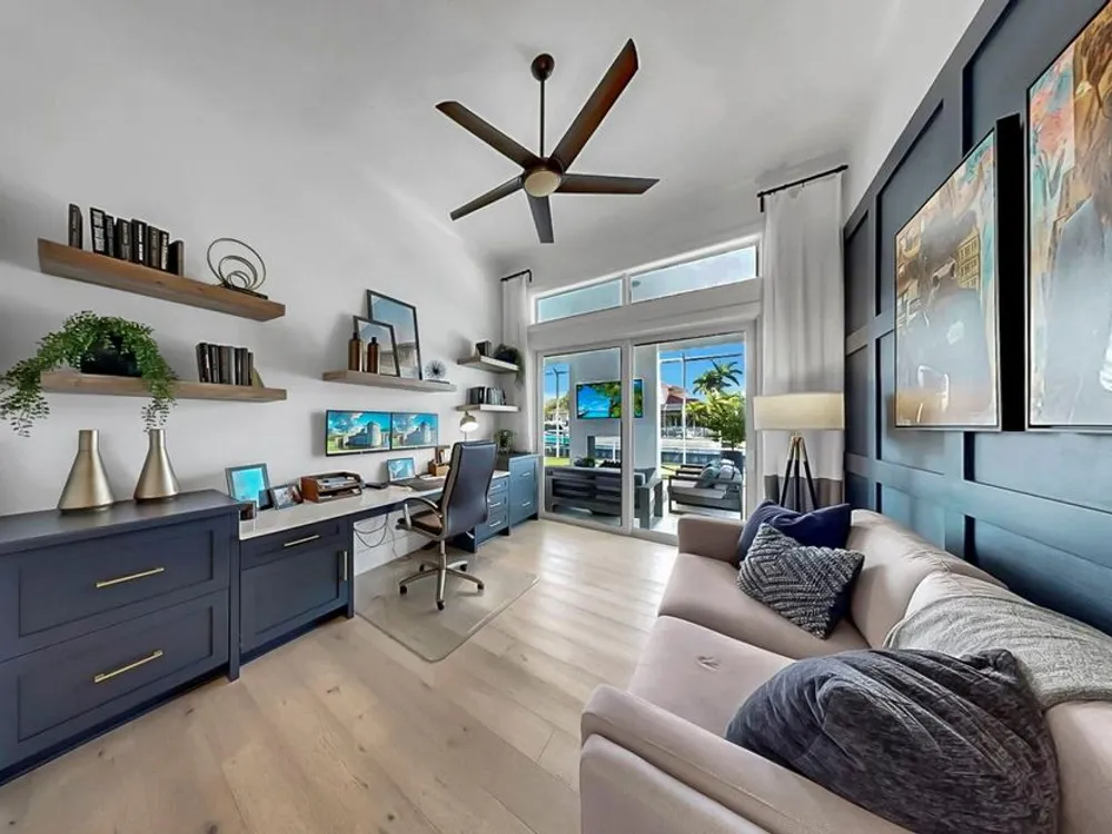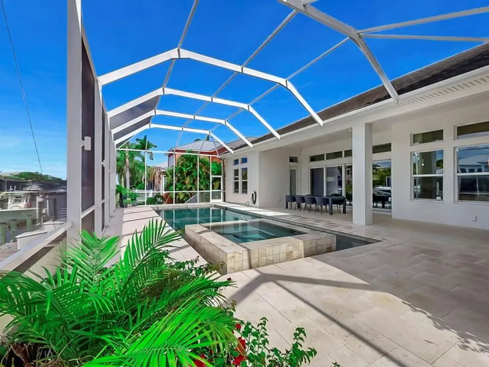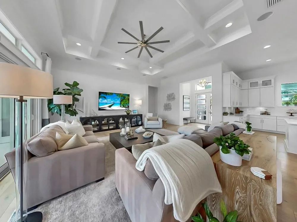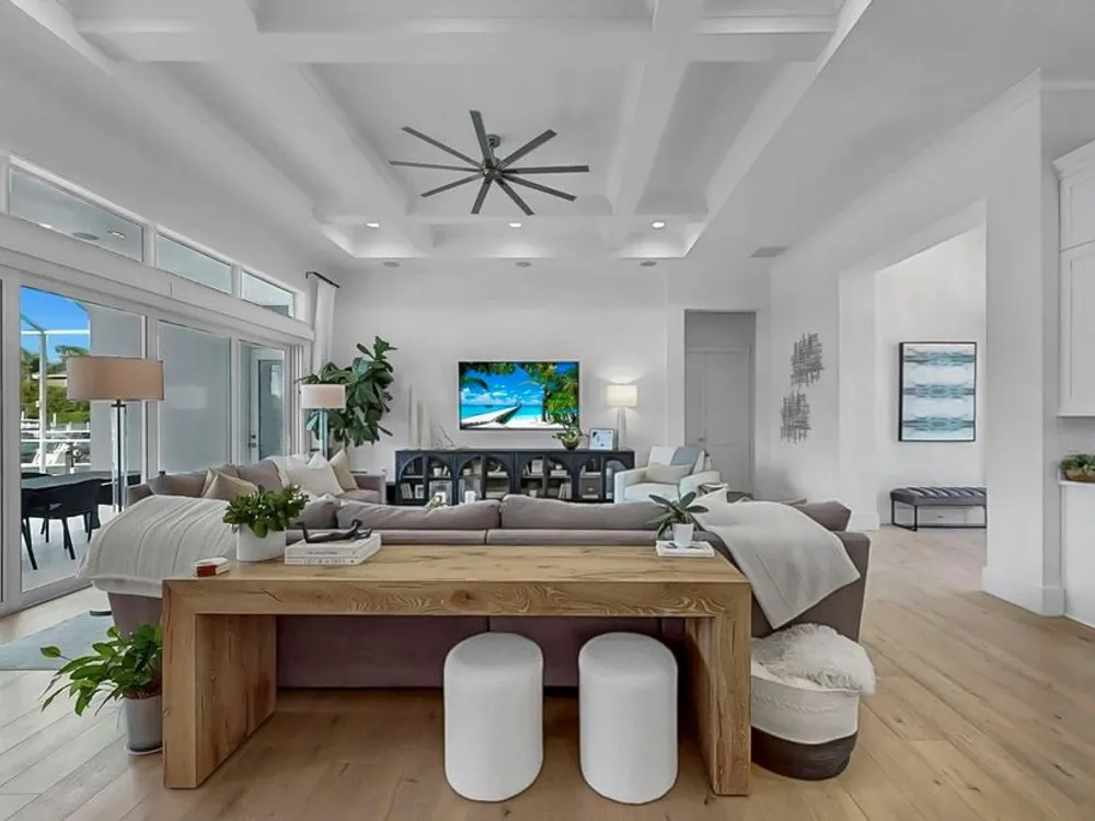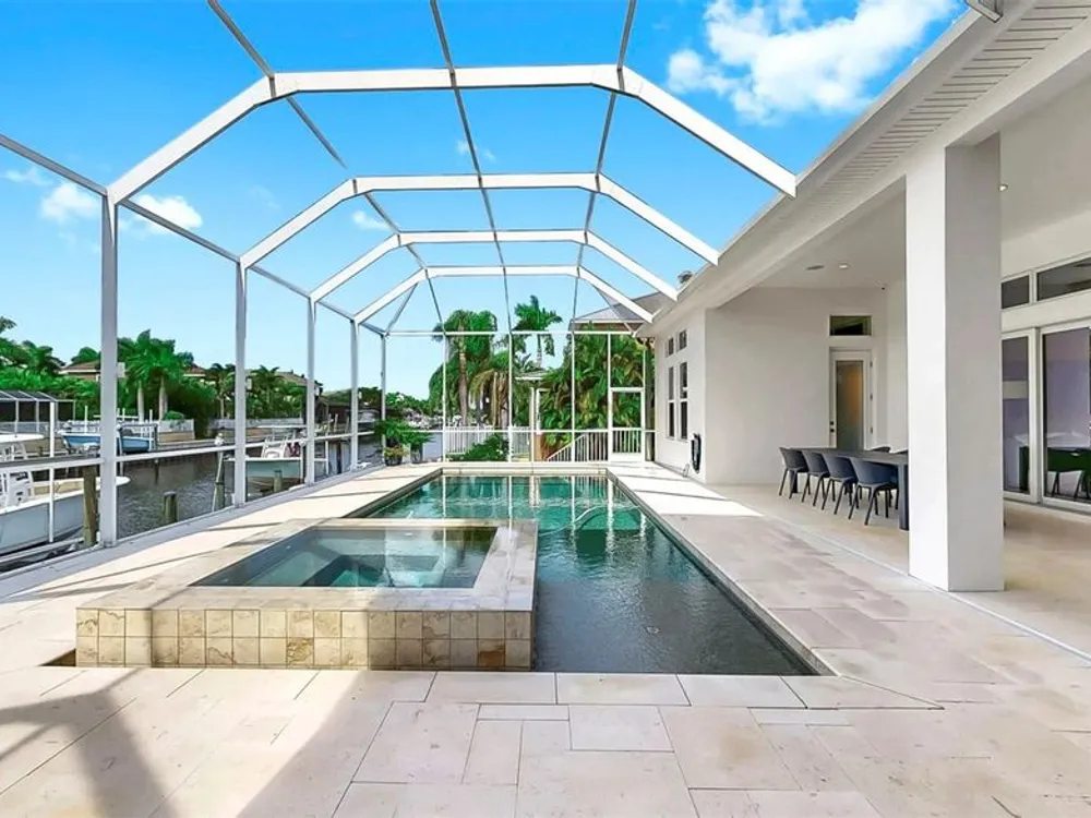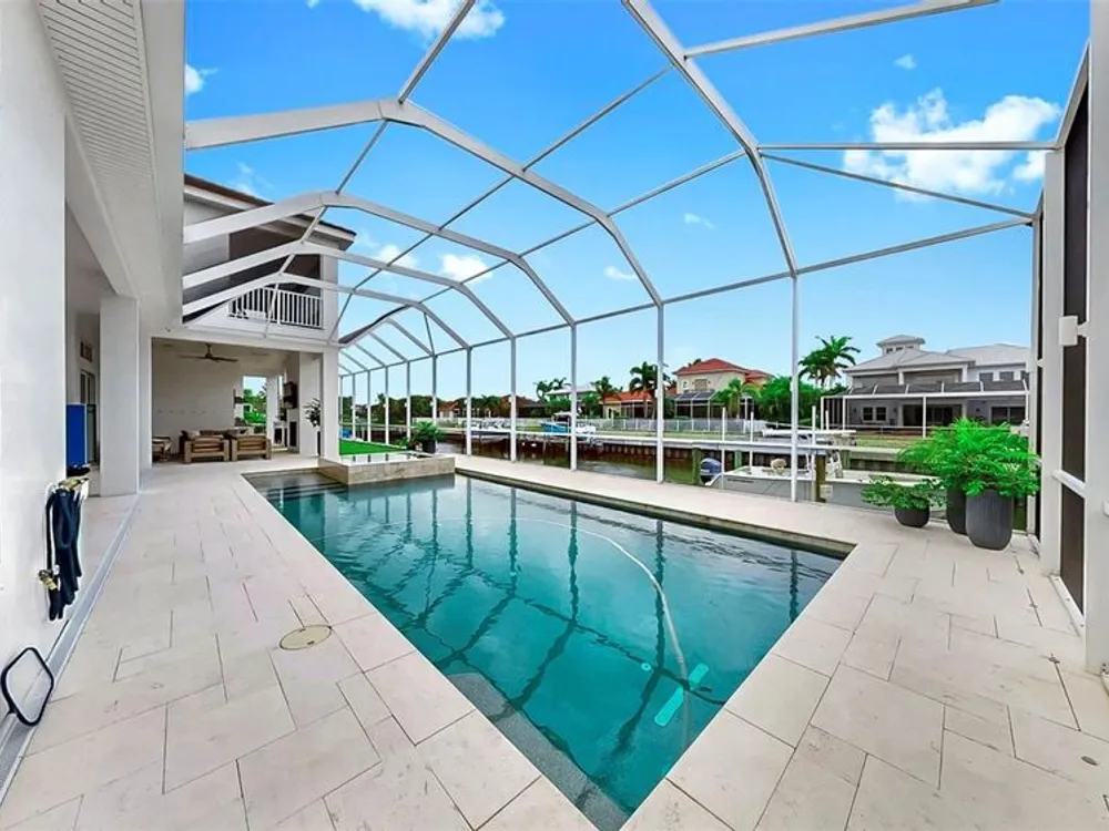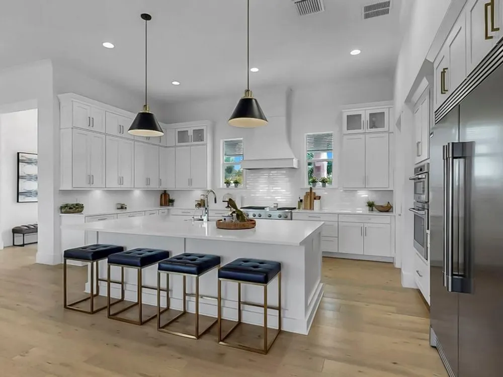 Luxury Coastal Waterfront Estate with Private Dock & Outdoor Oasis. Welcome to this exceptional 4-bedroom, 4-bathroom waterfront estate in a prestigious gated community offering direct access to the open waters of Tampa Bay. Built in 2020 with no detail overlooked, this home blends modern elegance with relaxed coastal living, creating the perfect sanctuary for those who love both luxury and the water. Boating enthusiasts will appreciate the private dock with a 13,000 lb boat lift, providing quick and easy access to the Bay. The outdoor living space is a true showstopper, featuring a resort-style saltwater pool and spa, a fully equipped outdoor kitchen, covered lounge with fireplace, and premium turf grass for low-maintenance beauty. Inside, the open-concept layout showcases high-end finishes throughout, including wood flooring, porcelain tile, and luxury carpet. The gourmet kitchen is the heart of the home, complete with an oversized island, quartz countertops, walk-in pantry, top-of-the-line appliances, and custom lighting and cabinetry. The main-floor primary suite offers a private retreat with a spa-inspired bathroom and dual custom walk-in closets. A dedicated home office provides ideal work-from-home functionality, while the upstairs bonus room offers flexible space for a media room, gym, or playroom. Upstairs, two generously sized ensuite bedrooms each feature full private baths and share access to a waterfront balcony, perfect for enjoying peaceful sunsets. Additional highlights include custom ceilings and window treatments, a 3-car garage, and thoughtfully designed indoor and outdoor living spaces that make this home ideal for entertaining and everyday living. This is more than a home - it's a lifestyle of waterfront luxury, modern design, and effortless elegance.