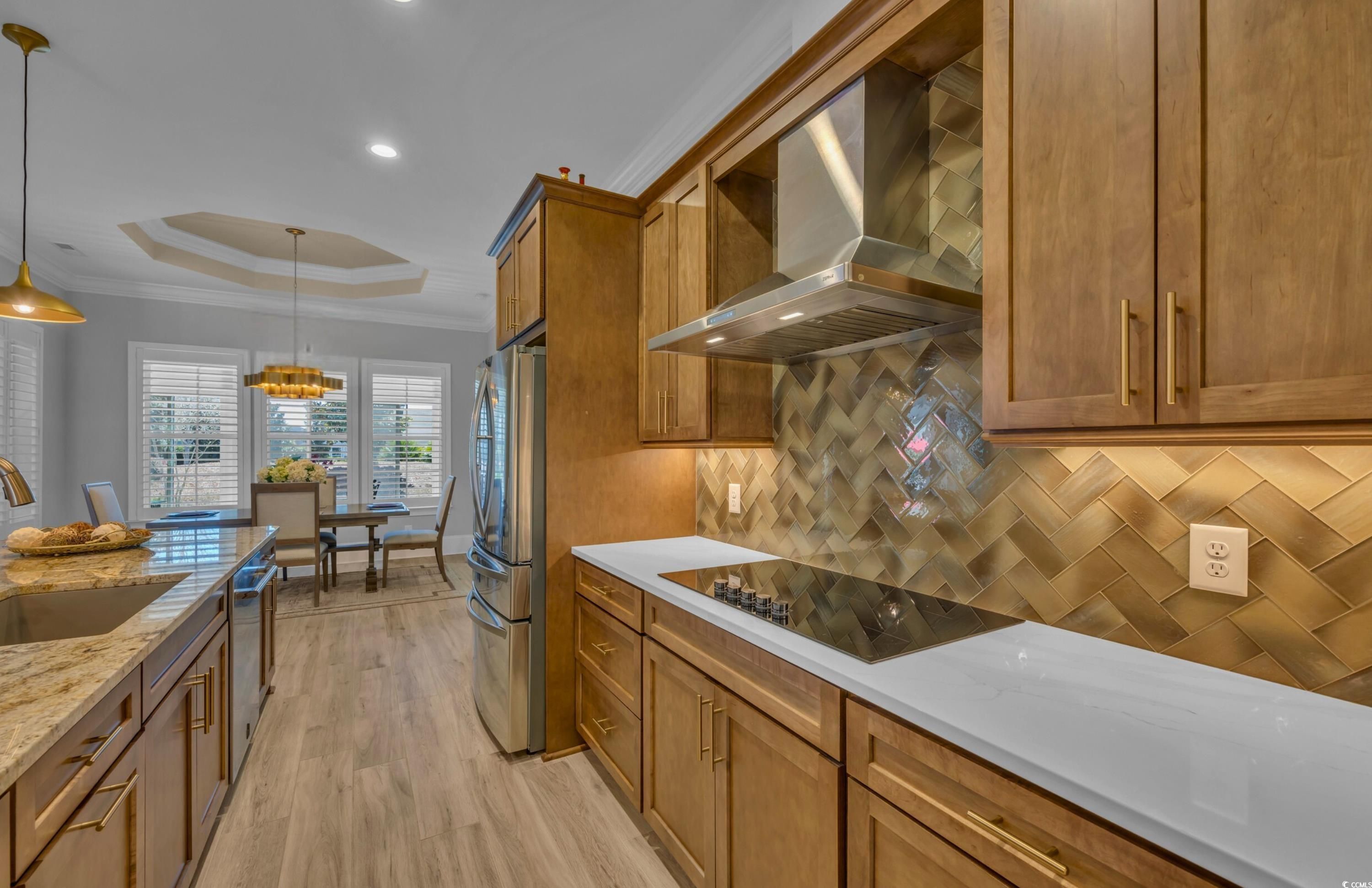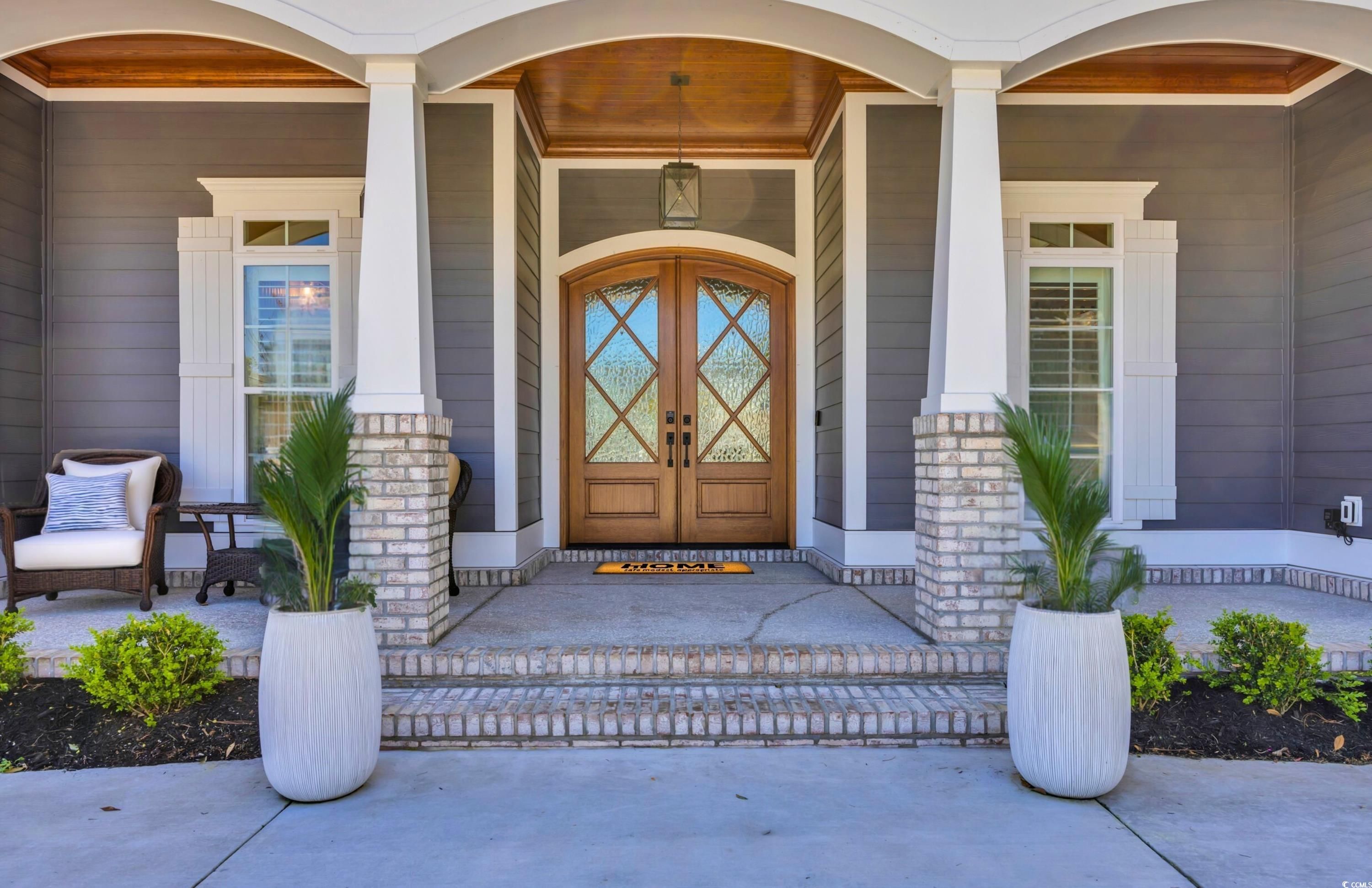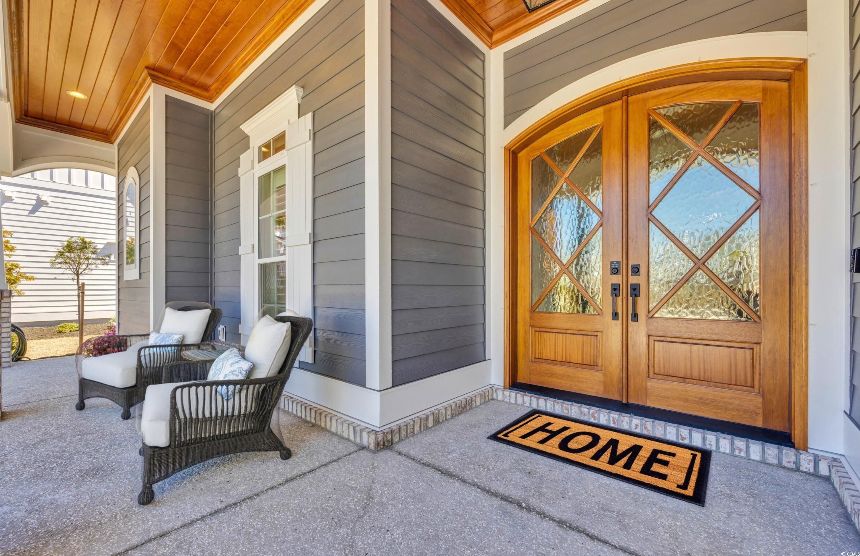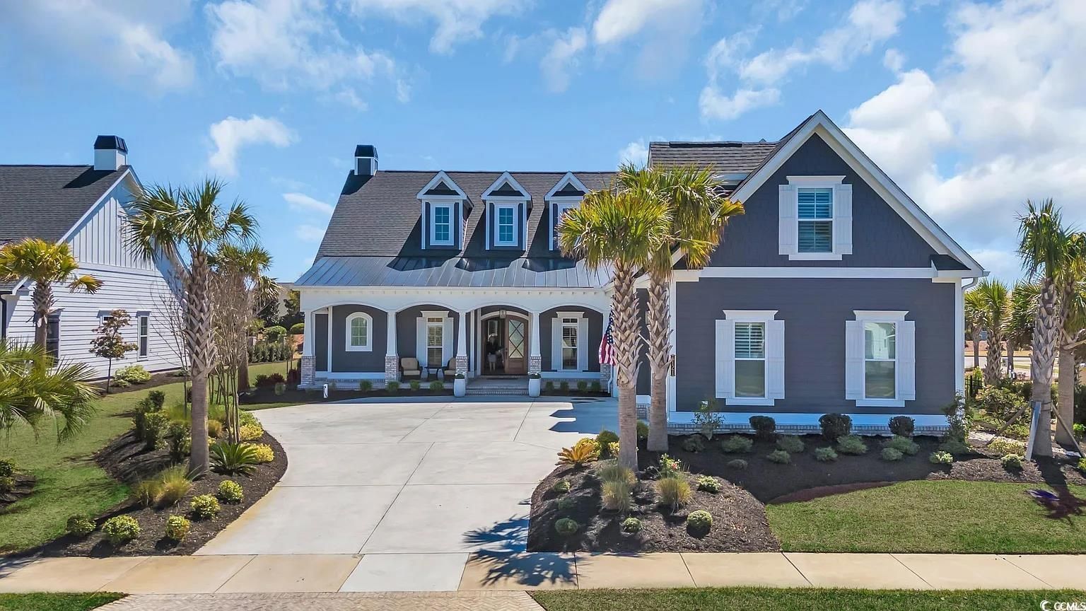 Within this exclusive 55+ gated Grande Dunes Waterside Pointe enclave, a newly completed masterpiece awaits—crafted in 2023 by the acclaimed Carrell Group for those who believe home should be nothing less than extraordinary. Step through grand double doors into a world of elegance. Soaring 11-foot ceilings (12 ft in coffered details) and Italian porcelain tile floors set the stage, while crown molding, recessed lighting, and architectural details whisper of timeless craftsmanship. To one side, a formal dining room glows beneath a boxed tray ceiling with accent lighting—ideal for refined gatherings. Beyond, the living room invites with a modern gas fireplace, custom built-ins, and a coffered ceiling. The gourmet kitchen blends artistry and function—granite and quartz surfaces, dramatic backsplash, soft-close cabinetry, and a custom wood-shelved pantry. A stunning 11-foot island offers abundant seating, complemented by champagne bronze hardware, a boiling water tap, and premium stainless appliances with gas line available. Triple glass sliders open to the Carolina Room, where a stacked-stone gas fireplace creates an inviting year-round retreat. The primary suite is a sanctuary with a tray ceiling, dual custom wardrobes, and a spa-inspired bath featuring quartz vanities, gold fixtures, and a fully tiled shower with intricate accents. Two additional main-level bedrooms each with their own private ensuite baths with floor-to-ceiling tiled showers, plush carpet and tray ceilings. A versatile office/library offers quiet focus or creative inspiration. Upstairs, two more bedrooms, a full bath, and a central flex/media room with charming dormers provide comfort and flexibility. Throughout, thoughtful luxuries abound—central vacuum system, HALO water filtration, Rinnai tankless hot water, irrigation, whole-house audio, security system, and plantation shutters. The oversized three-car garage features epoxy flooring, overhead storage, and utility sink. Outdoor living is equally refined with a paver patio, built-in grill, and lush landscaping on a 0.29-acre lot. Residents of Waterside Pointe enjoy an unparalleled lifestyle with exclusive access to two premier Amenity Centers. The private Ocean Club, featuring Ocean Front dining, a resort-style pool, and gated car and golf cart parking. In addition, membership to the Del Webb Amenity Center along the Intracoastal Waterway, offering Indoor and Outdoor Pools, Bocce Ball, Picklebal & Tennis courts, scenic walking paths Fire Pit, organized events and clubs and beautifully designed gathering spaces- the perfect blend of coastal luxury and active lifestyle living. This is more than a residence—it’s a lifestyle of premier luxury, leisure, and coastal beauty in one of Myrtle Beach’s most coveted communities. Schedule your private tour today.
