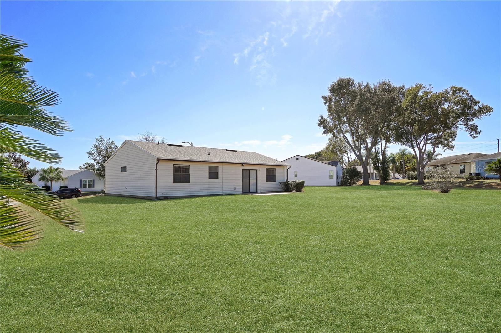 Rare oversized lot, major updates complete, and resort-style 55+ living. Set on an impressive 14,520 sq ft lot, this move-in-ready home offers uncommon privacy in a quiet, well-kept community. Vaulted ceilings and an open layout fill the home with natural light, while the tiled, climate-controlled lanai adds comfortable year-round living. Lovingly maintained by its original owner, the home features a new roof (2024), new water heater (2024), A/C replaced in 2022, and whole-home surge protection—providing peace of mind from day one. Located in Sandpiper Golf & Country Club, residents enjoy golf, two heated pools, fitness center, courts, an on-site bar and restaurant, and an active social calendar. The $150/month HOA includes lawn care, cable, streaming services, and high-speed internet. All major appliances and inside laundry are included. Conveniently located between Tampa and Orlando, this home offers peaceful living with easy access to shopping, dining, healthcare, and major highways.