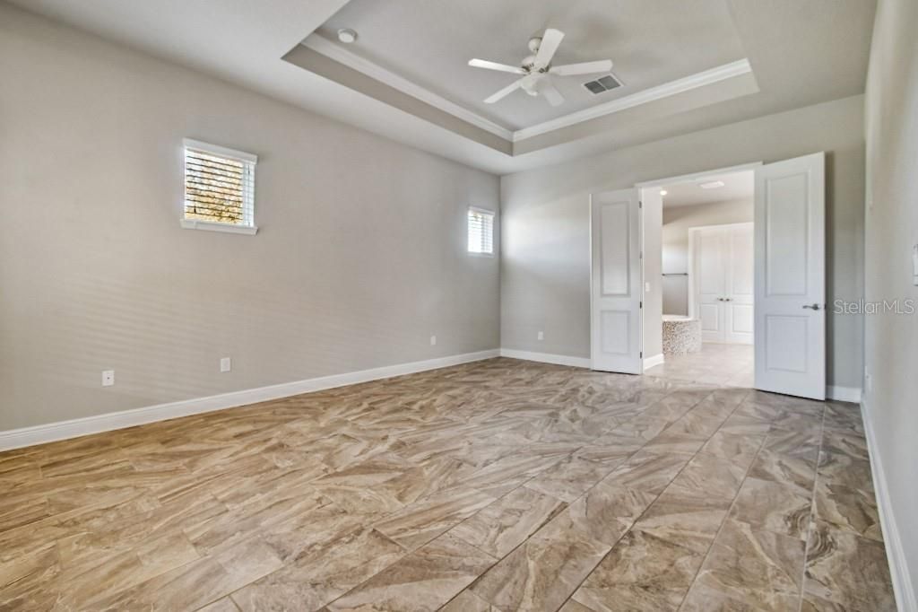 - Ceiling Fan(s), Crown Molding, Eat-in Kitchen, High Ceilings, In-Wall Pest Control, L-Shaped Dining Room, Open Floorplan, Solid Surface Counters, Solid-Wood Cabinets, Thermostat, Walk-In Closet(s), Window Treatments