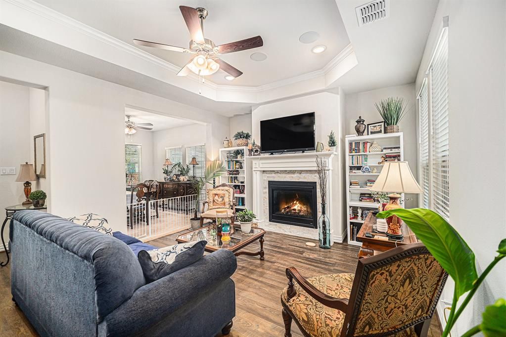 Welcome to this beautifully maintained 2-bedroom, 2-bathroom condo in the highly desirable Ladera Tavolo Park, a gated 55+ active adult community in Fort Worth. Conveniently located just minutes from Chisholm Trail Parkway, shopping, dining, and everyday essentials, this home combines low-maintenance living with resort-style amenities.Situated on a landscaped lot with a fenced backyard, the property features a covered patio complete with ceiling fan—perfect for relaxing or entertaining outdoors. Inside, you're welcomed by a formal foyer and elegant dining room, flowing into the spacious living area enhanced by an electric fireplace, built-in sound system, and ceiling fans in every room. The kitchen offers thoughtful upgrades including under-cabinet lighting, pendant lights over the island, a breakfast bar, walk-in pantry, and sunny breakfast nook. All kitchen and bathroom cabinets and drawers are finished with upgraded knobs and handles for a polished touch.The private primary suite showcases tray ceilings, a large walk-in closet, dual sinks, a granite bench in the walk-in shower, and an upgraded shower head. The generously sized secondary bedroom is served by a full bath with a tub_shower combo. A dedicated laundry room with built-in shelving adds convenience, and the attached garage includes an electric vehicle charging station.Residents of Ladera Tavolo Park enjoy access to a luxurious clubhouse, resort-style pool, pickleball and bocce courts, putting green, fitness center, billiards lounge, scenic walking trails, and even a dog park.This is more than a home—it’s a lifestyle. Don’t miss your chance to live in one of Fort Worth’s most sought-after 55+ communities!Discounted rate options and no lender fee future refinancing may be available for qualified buyers of this home.