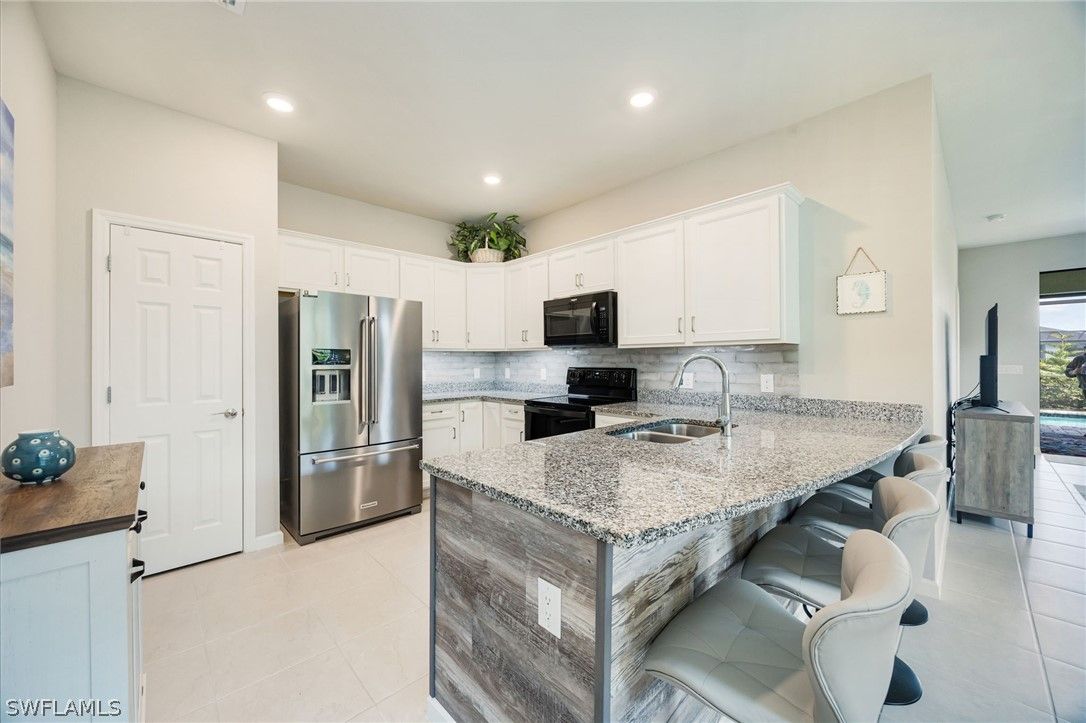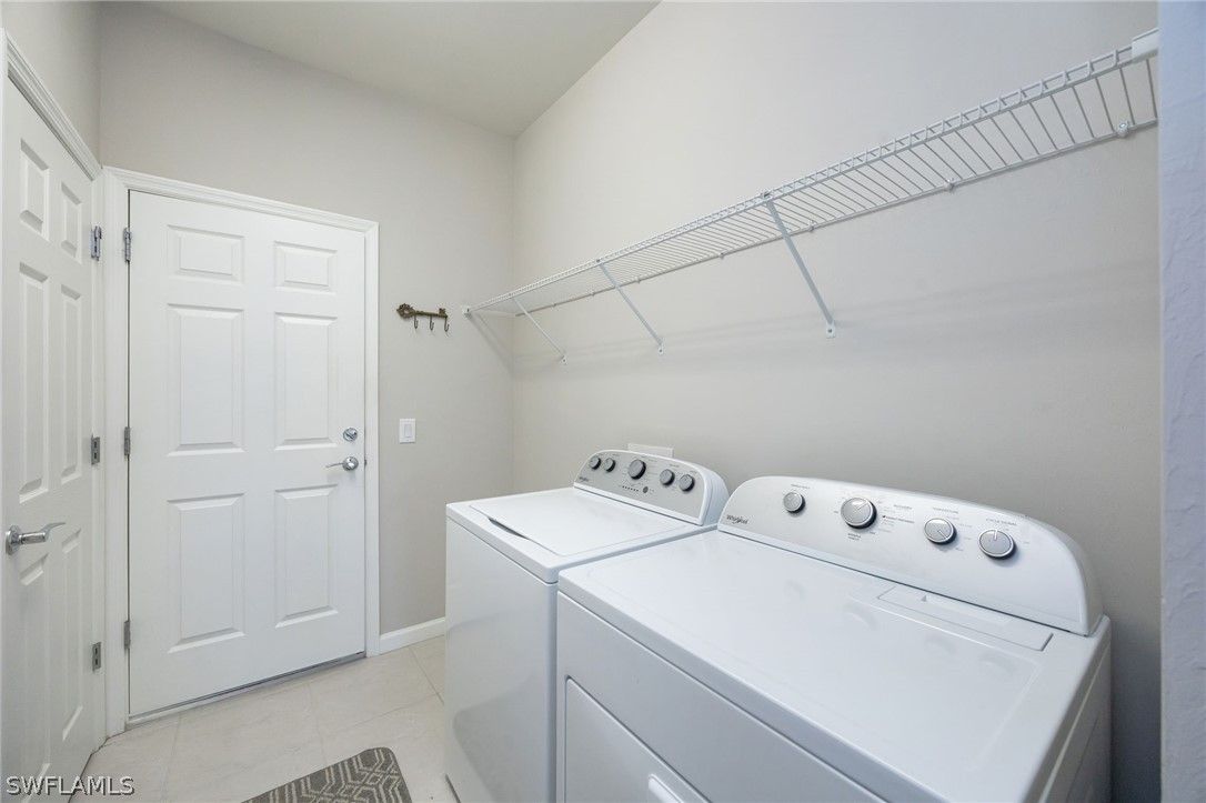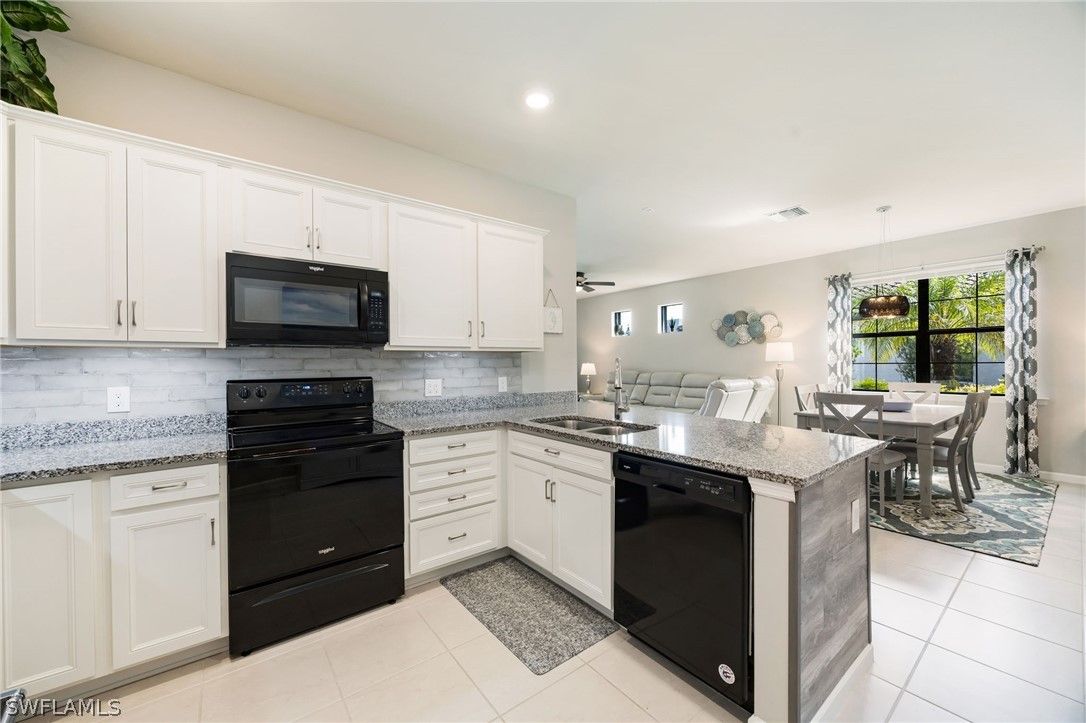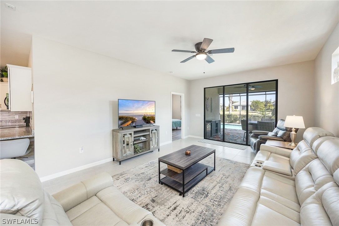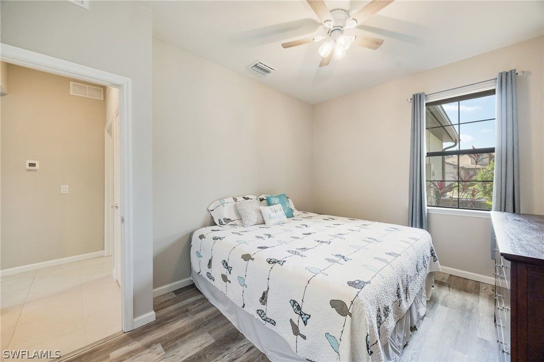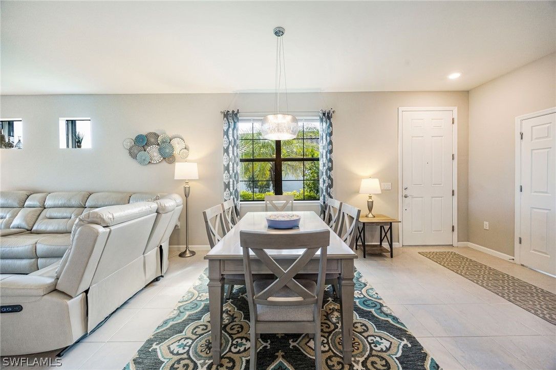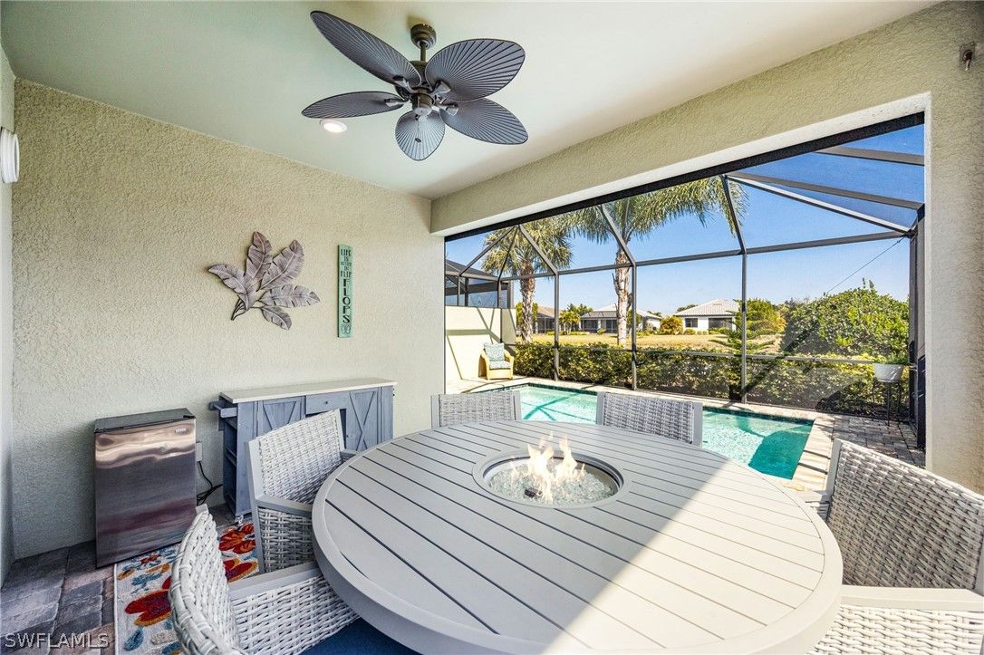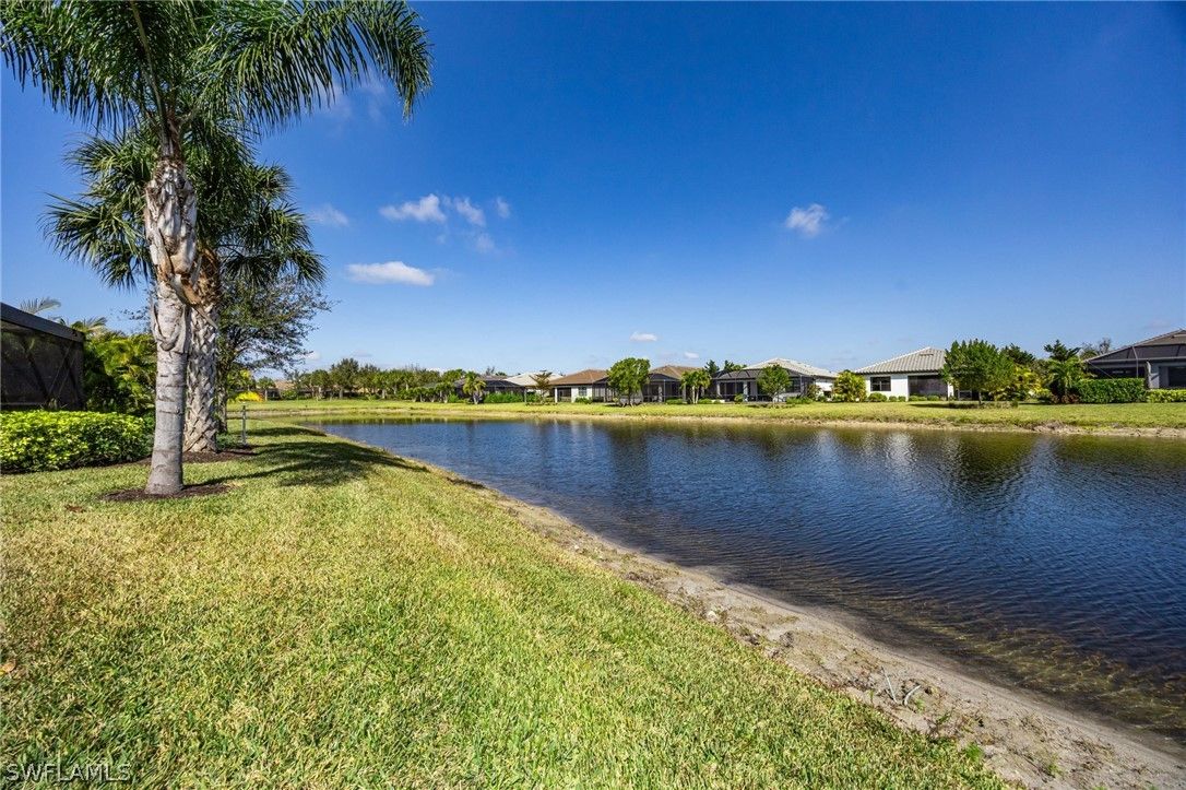 This breathtaking Serenity model is in the 55+ Del Webb Golf Community. Enjoy 10ft ceilings, tile/luxurious vinyl plank flooring throughout, 2 bedrooms both with spacious walk-in closets, den/office with French doors, 2 full bathrooms, private pool, and 2 car Epoxied Garage Floor. This home Features a delightful kitchen with upgraded White shaker cabinets, pull out shelves, beautiful backsplash, pantry, breakfast bar and a generous amount of granite countertops for cooking and entertaining. The Living room is very inviting with plenty of natural light and three sliding glass doors that fully open onto the covered lanai. Walk into your Primary suite and enjoy the haven of comfort and relaxation with a large walk-in closet and a stunning view of your outdoor oasis. The Primary Luxurious Bathroom is outfitted with a glass-enclosed shower, private water closet, spacious dual upgraded vanity with plenty of drawers and large linen closet. Enjoy your elegant backyard with your very own private salt water/heated pool. Fully screened with a peaceful view of the matured landscaping overlooking the tranquil lake. Home has been upgraded with remote control lanai hurricane shades and easy close shutters on all windows. Perfect location. Five-minute golf cart ride to Panther Run Golf Course, easy walking distance to the State-of-the-Art Amenities center with a full gym, resort pool, lap pool, Jacuzzi, sauna, pickleball, tennis, bocce courts, billiards, golf simulator, restaurants and so much more. Experience The small town living in Ave Maria.