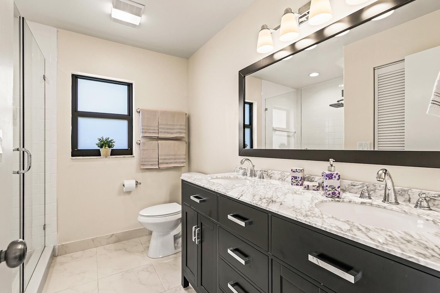 WATERFRONT Home for Sale with 2 bedrooms, 2 full baths, with soaring vaulted ceilings and 2-car garage. Immaculately maintained with updated floors, remodeled kitchen, stainless steel appliances, granite counters & kitchen island, bathrooms, new roof installed in 2016, new gutters and new AC in 2025. Open floor plan with hurricane impact windows & doors, plus a screened Florida room lanai with accordion shutters and water views from almost every room.Coco Wood Lakes is a PET FRIENDLY, +55 community with low HOA fees, which include Fiber Optic high speed Internet & Cable TV. Amenities Include Community pool, NEW Spa/Hot Tub in 2025, fitness center, billiard room, theater, pickleball & more! Only 5 miles from the beach & restaurants on Atlantic Ave in Delray Beach. See 360' virtual tour