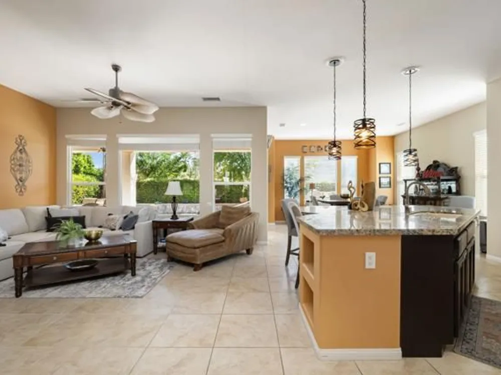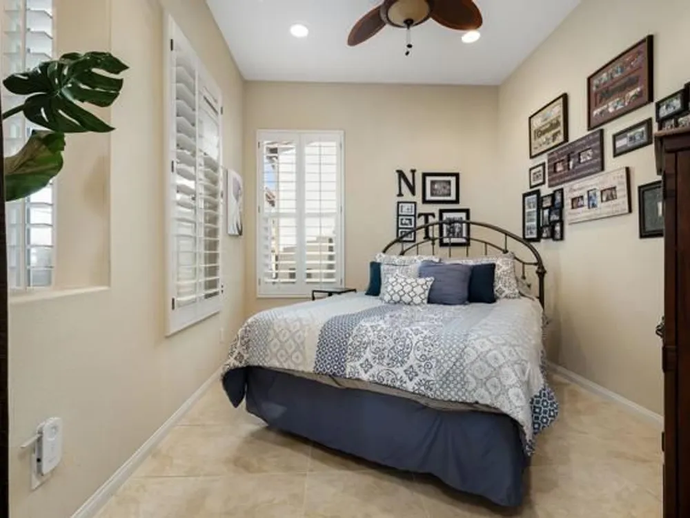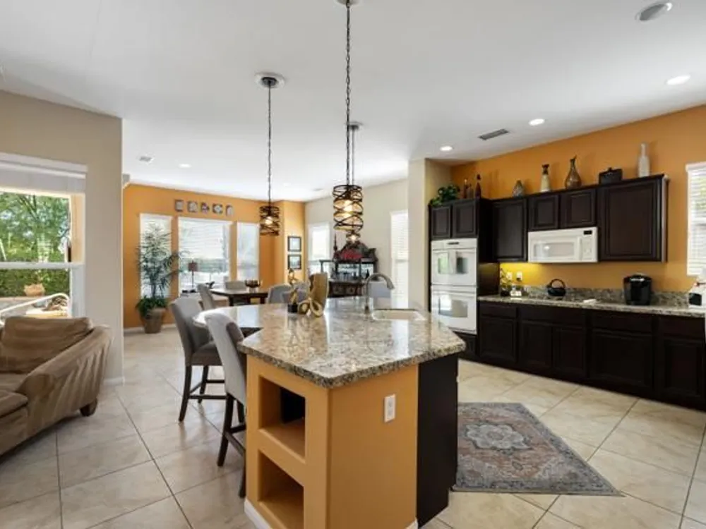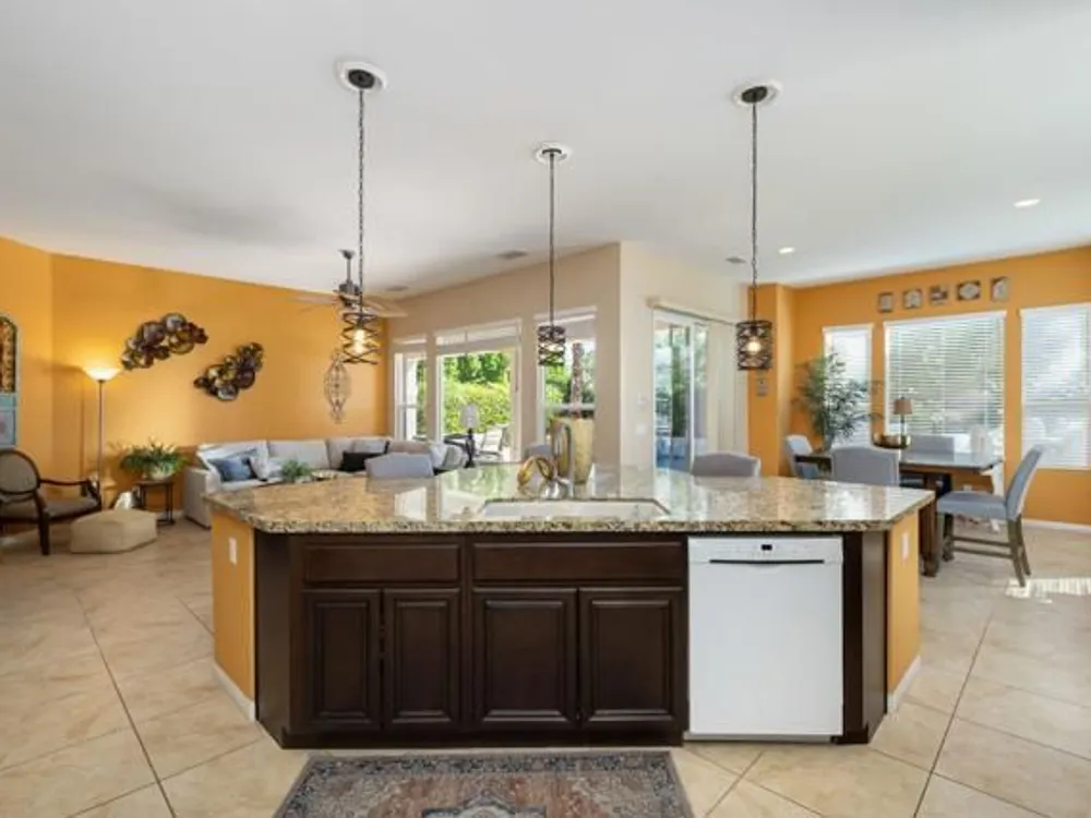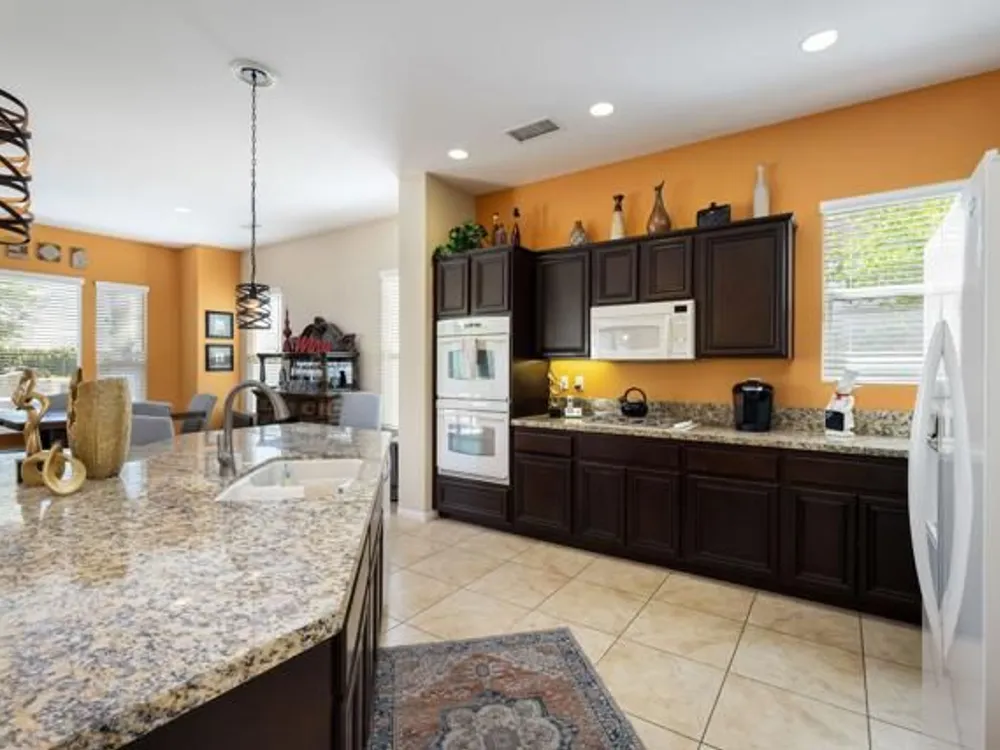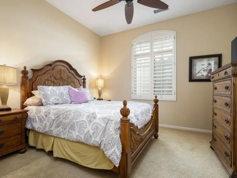 This beautifully maintained Caspian model with custom casita showcases thoughtful upgrades and exceptional livability, featuring a private mini-split A/C system and elegant wainscoting for guest comfort and privacy. Offering 3 bedrooms, 3 bathrooms, plus a versatile den/office that can serve as a 4th bedroom, this sought-after floor plan spans 2,060 sq. ft. of refined living space with soaring 10-foot ceilings throughout. The expansive great room highlights open concept living with a TV/media niche, dining area, and seamless views of the pool and patio. A chef's dream kitchen is appointed with rich espresso cabinetry, granite countertops, a generous prep island with bar seating and pendant lighting, built-in double ovens, microwave, dishwasher, and a spacious pantry. The primary suite retreat is complete with plantation shutters and a spa-inspired en suite bath boasting dual sinks and travertine finishes. Designed for resort-style living, the backyard is a true entertainer's paradise with a pebble tec spa cascading into the sparkling pool, cozy fire pit, private BBQ station, and a covered patio with built-in misters for year-round enjoyment. Make an appointment today for a closer look at this gem.