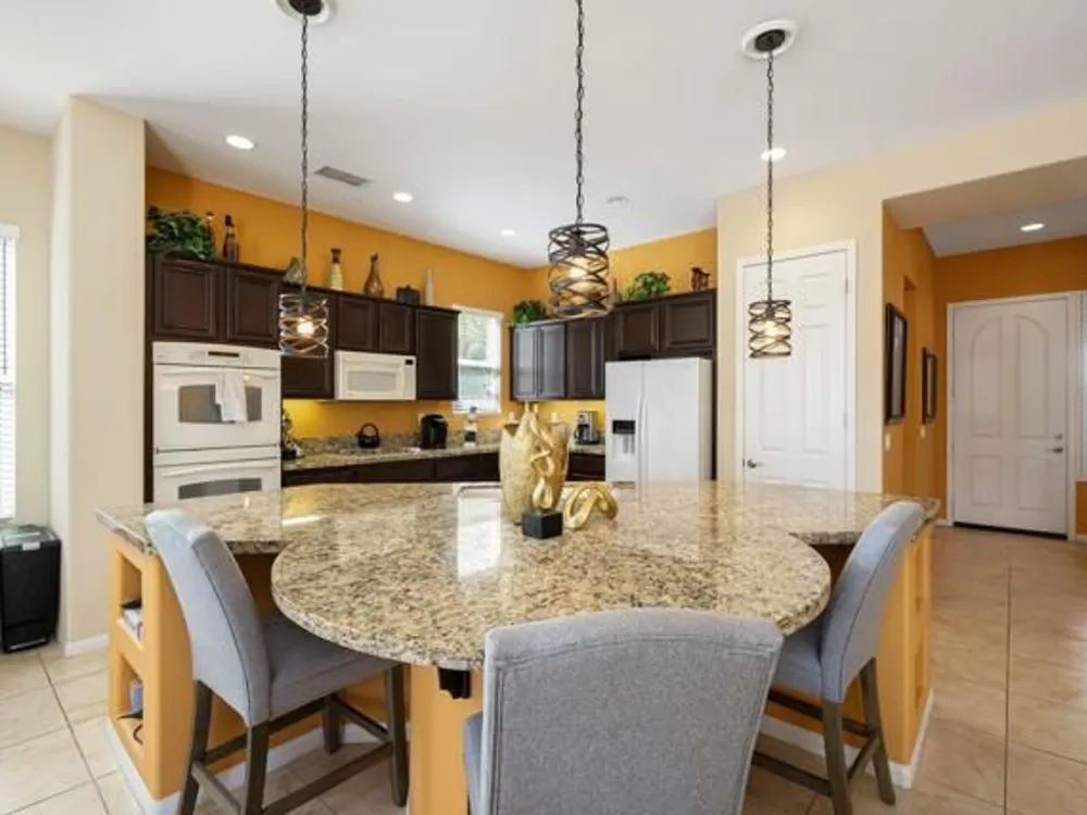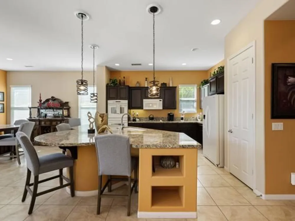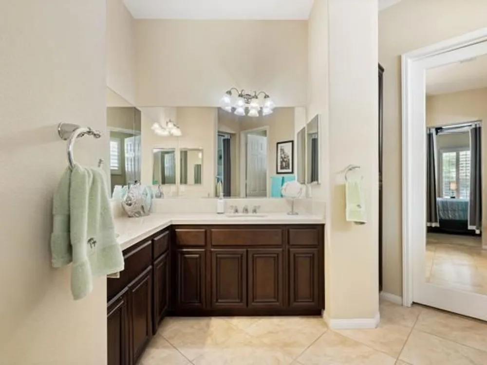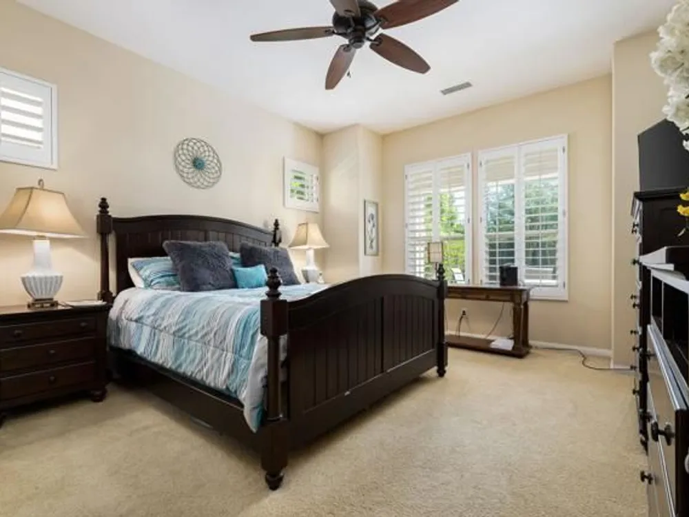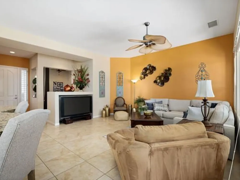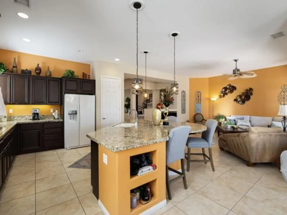 This beautifully maintained Caspian model with custom casita showcases thoughtful upgrades and exceptional livability, featuring a private mini-split A/C system and elegant wainscoting for guest comfort and privacy. Offering 3 bedrooms, 3 bathrooms, plus a versatile den/office that can serve as a 4th bedroom, this sought-after floor plan spans 2,060 sq. ft. of refined living space with soaring 10-foot ceilings throughout. The expansive great room highlights open concept living with a TV/media niche, dining area, and seamless views of the pool and patio. A chef's dream kitchen is appointed with rich espresso cabinetry, granite countertops, a generous prep island with bar seating and pendant lighting, built-in double ovens, microwave, dishwasher, and a spacious pantry. The primary suite retreat is complete with plantation shutters and a spa-inspired en suite bath boasting dual sinks and travertine finishes. Designed for resort-style living, the backyard is a true entertainer's paradise with a pebble tec spa cascading into the sparkling pool, cozy fire pit, private BBQ station, and a covered patio with built-in misters for year-round enjoyment. Make an appointment today for a closer look at this gem.