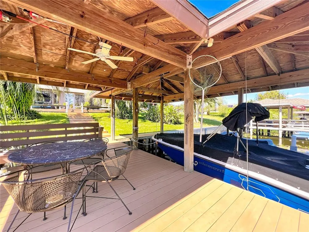 This stunning luxury 3-bedroom 2 1/2 bath WATERFRONT HOME offers the perfect balance of elegance and relaxation, nestled along Orange canal with direct water access to Lake Griffin and the Chain of Lakes. As an added bonus, the BOAT AND WAVE RUNNER ARE INCLUDED with the property, making it easy to enjoy lake life from day one! From the moment you arrive, you’re greeted by meticulous landscaping and a welcoming entryway that sets the tone for the refined interior. Inside, the home boasts an open-concept floor plan with high ceilings, expansive windows, LUXURY PLANK FLOORING throughout and glass doors that flood the living spaces with natural light while offering breathtaking water views. The gourmet kitchen features premium stainless steel appliances, stone countertops, a large island with overhead lighting overlooking the living room, ideal for both casual dining and entertaining. The primary suite is a true retreat with private canal views, a spacious walk-in closet with a barn door entry, and a spa-inspired en suite bath complete with a soaking tub and oversized walk-in shower. Two additional bedrooms provide comfort for family or guests, with well-appointed bathrooms and ample closet space. Step outside to your private oasis: a climate controlled Florida room which gives you 264 square feet of a cool sun-filled enclosed space! As a bonus, the 2+ over-sized garage with 500 square feet gives you additional storage. The beautiful outdoor living space has a LUXURY OUTDOOR KITCHEN complete with granite countertops, perfect for al fresco dining, all beautifully designed overlooking the water. The property’s crown jewel is the private boathouse and dock, allowing effortless access to boating, fishing, and sunset cruises right from your backyard.