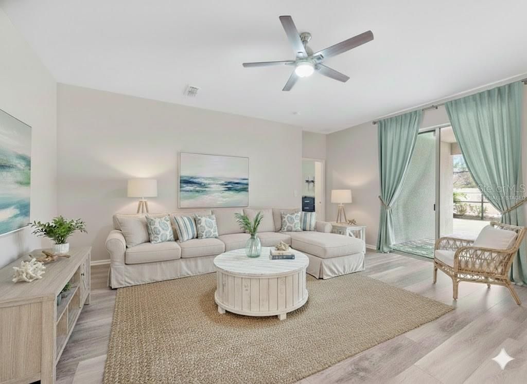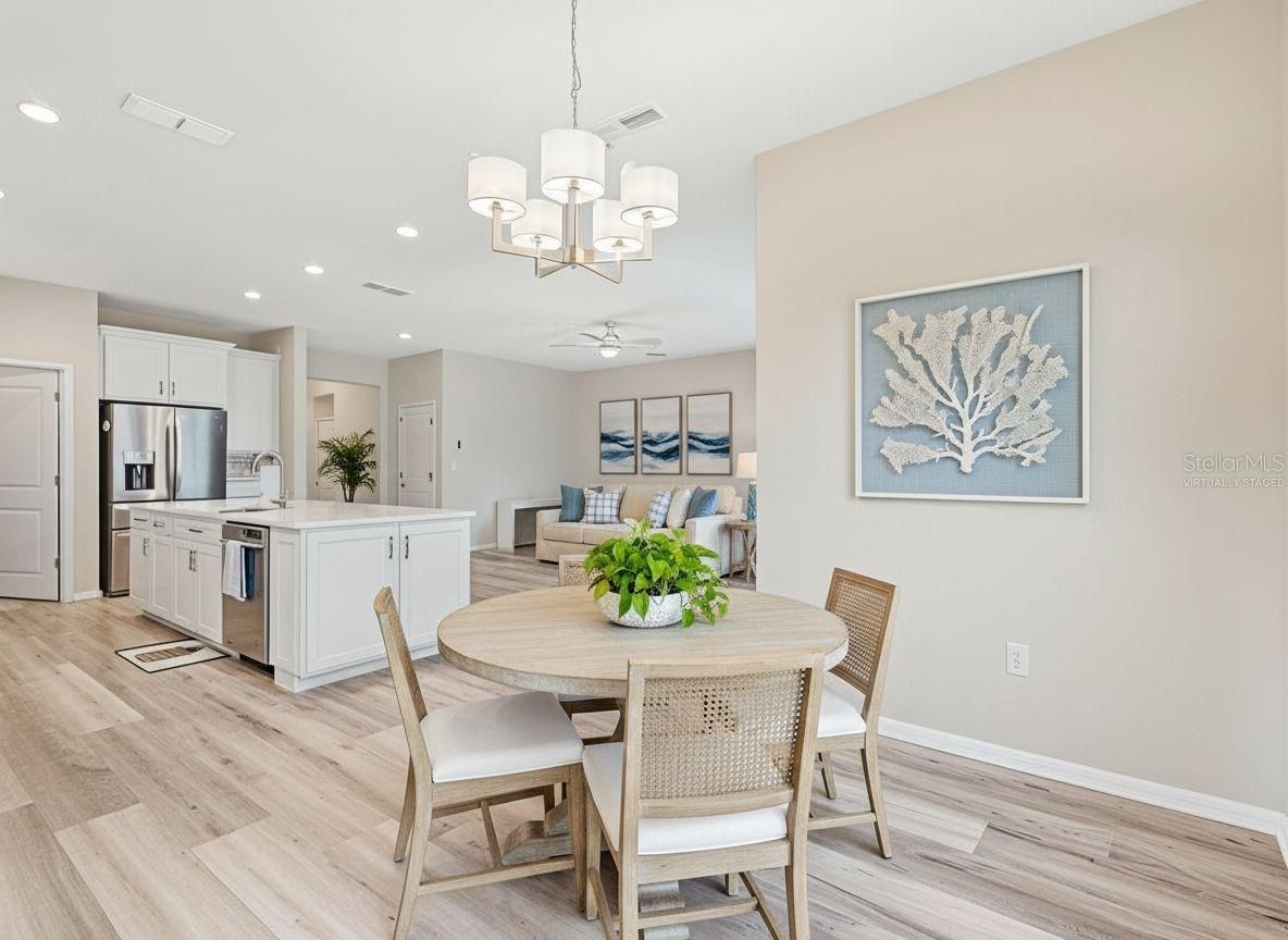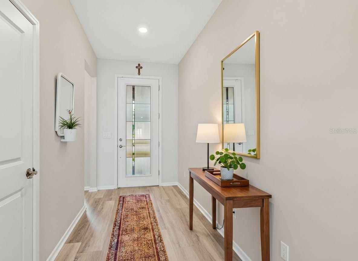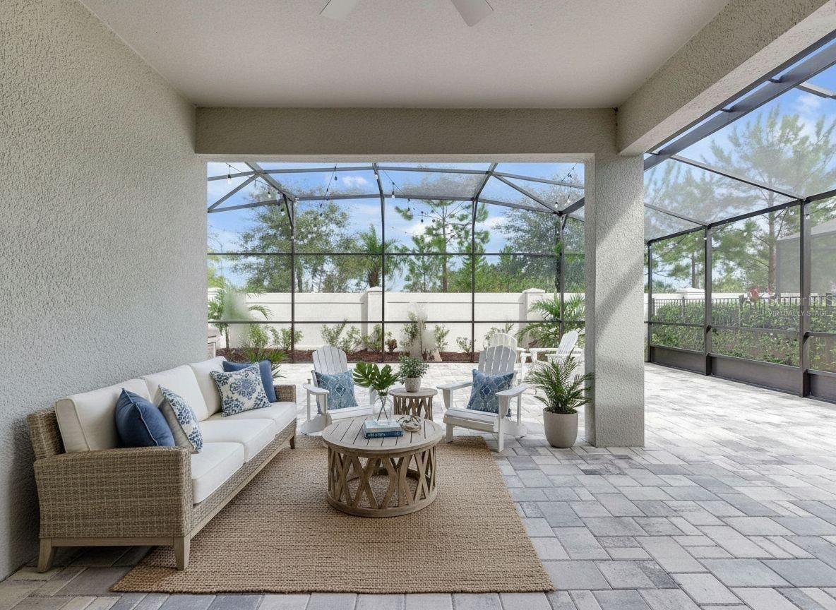 One or more photo(s) has been virtually staged. Welcome to resort-style living in the highly sought-after Del Webb Sunbridge, a guard-gated 55+ active adult community located in beautiful St. Cloud. Built in 2022, this stunning Prestige model offers modern design, thoughtful upgrades, and the low-maintenance lifestyle today’s buyers are looking for. Situated on a private conservation homesite in one of the first completed phases of the community, this home offers the advantage of established surroundings without the disruption of ongoing construction. Originally designed as a two-bedroom layout, this home was thoughtfully upgraded to include three bedrooms. Two bedrooms feature private en-suite bathrooms, while the third bedroom offers flexibility as a guest suite, office, study, or hobby room with a nearby half bath. The gourmet kitchen is the heart of the home, featuring a large quartz island, custom backsplash, 5-burner gas cooktop, built-in convection oven, and microwave/convection combo. The adjoining dining area is filled with natural light and flows seamlessly into the spacious living area. Three-panel sliding pocket doors open to an impressive extended covered lanai, creating the perfect indoor-outdoor living space. The oversized screened lanai features upgraded pavers, a gas hookup for grilling, and serene conservation views. The outdoor spa conveys with the home, offering a private retreat for relaxation or entertaining. Luxury vinyl plank flooring has been installed throughout most of the home, providing both durability and style. Additional highlights include a spacious interior laundry room with laundry chute from the primary suite, generous closet space, and a two-car garage with epoxy flooring, overhead storage, and an extended paver driveway. Del Webb Sunbridge offers an unmatched active adult lifestyle with lawn maintenance, internet service, and access to the Hammock Club featuring a zero-entry resort pool, resistance pool, heated spa, fitness center, ballroom, craft studios, tech center, on-site restaurant, fire pit lounge, outdoor cabana kitchen, pickleball and tennis courts, and numerous social activities. The community is natural gas powered, golf-cart friendly, and located across from the breathtaking 2,000-acre Split Oak Forest. This exceptional home is move-in ready and offers the perfect blend of luxury, comfort, and community living. Schedule your private showing today and experience the Del Webb lifestyle.