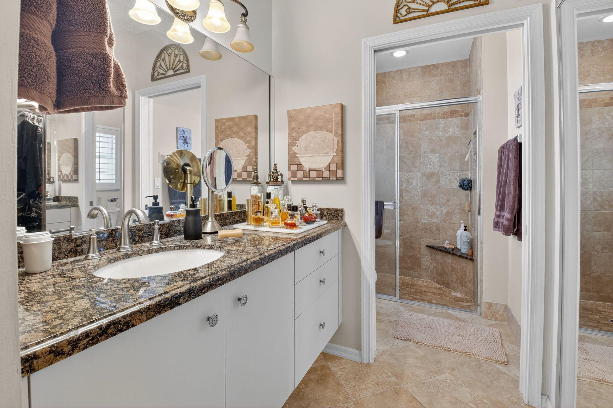- Built-in Features, Cathedral Ceiling(s), Entrance Foyer, Pantry, Vaulted Ceiling(s), Walk-In Closet(s), Split Bedrooms, Custom Mirrors, Eat-in Kitchen, Separate/Formal Dining Room, Main Level Primary, Separate Shower