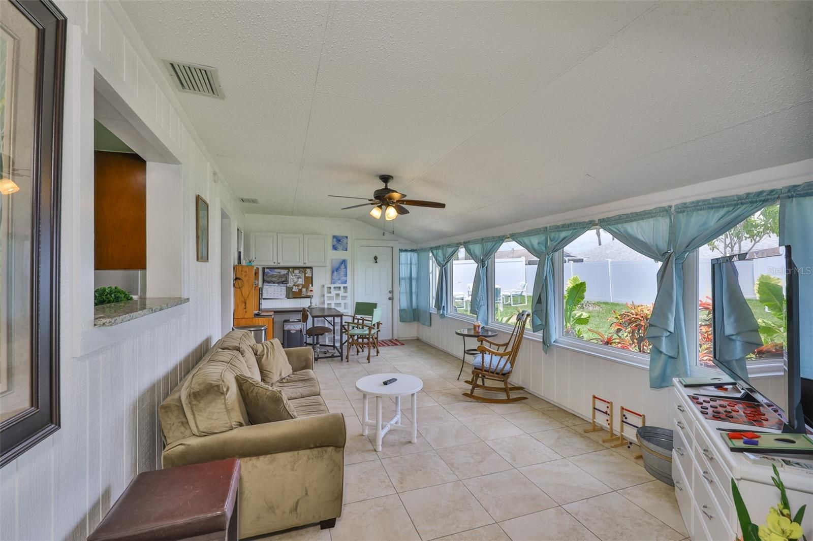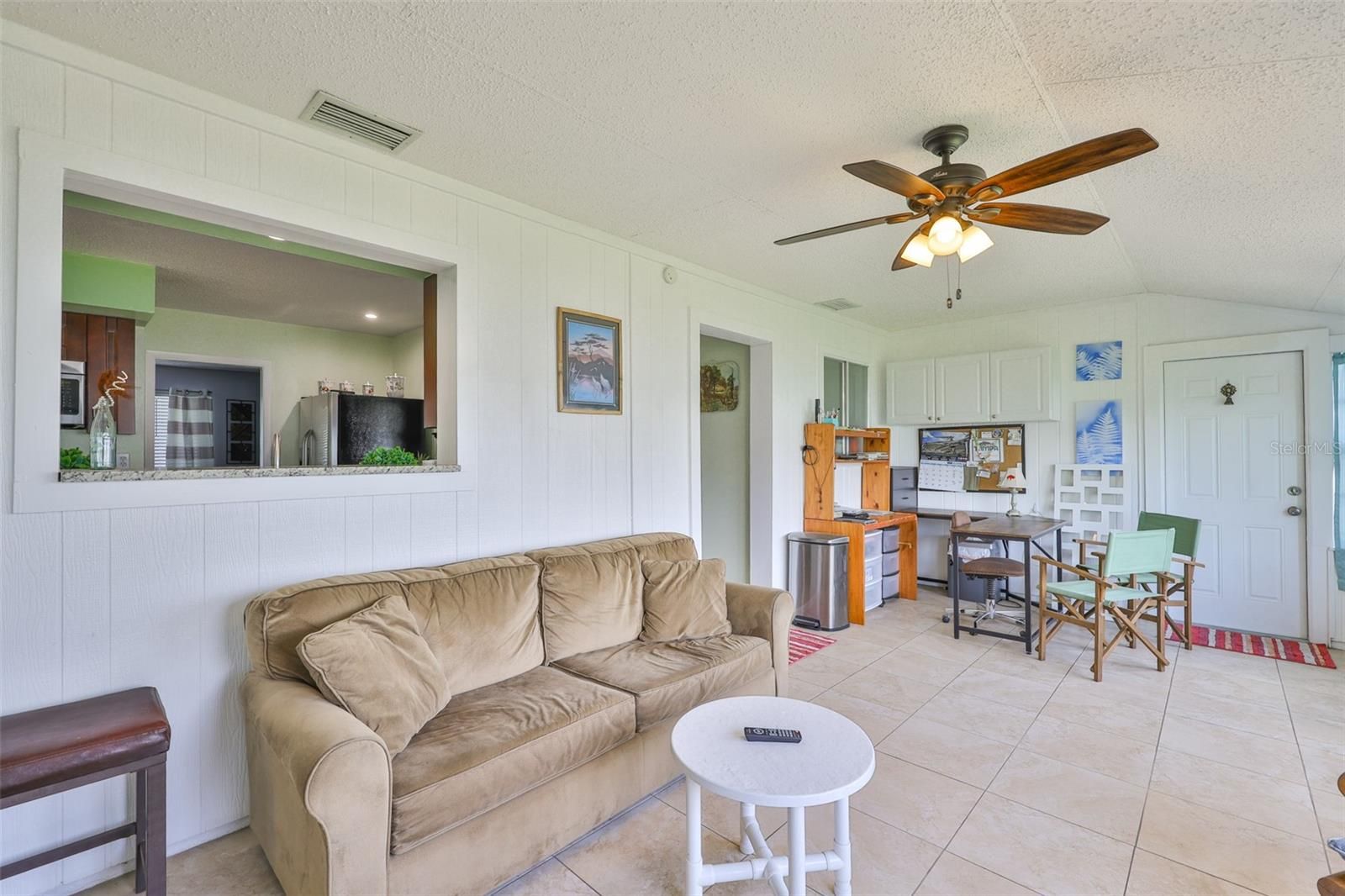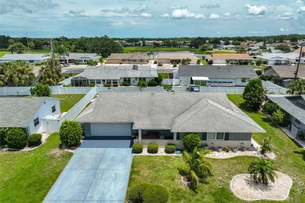 Welcome to this beautifully maintained single-story home offering just under 2,000 square feet of thoughtfully designed living space. From the moment you arrive, the charming front porch invites you in, setting the tone for the warmth and comfort you'll find inside. Step into formal living and dining areas perfect for entertaining with engineering hardwood flooring, while the updated kitchen features stylish finishes and modern conveniences. This home boasts a seamless blend of tile and laminate flooring throughout, recessed lighting, and a water softener system for added comfort. The air conditioning system was replaced just one year ago, providing peace of mind for years to come. Step outside to the extended pavered lanai perfect for relaxing evenings or weekend gatherings. A separate workshop offers space for hobbies, storage, or creative projects. Furniture can be included in the sale, making this home truly move-in ready. Golf cart? yours too! Meticulously cared for and loaded with great features, this property is a must-see. The backyard is the perfect size for your weekend BBQ's and let's not forget the Florida room perfect area for entertainment. Don't miss the opportunity to make it yours!
