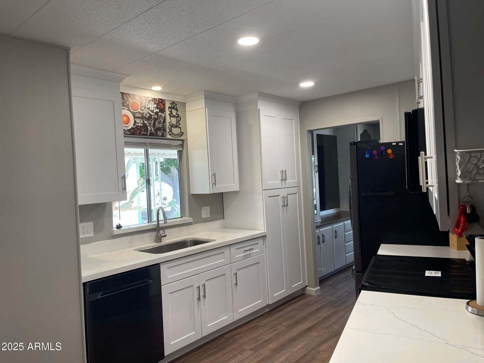 A stunning renovation and way too many upgrades to mention them all! New piping, new kitchen cabinets, quartz countertops, new electrical, new bathrooms, new flooring...it just goes on and on! A generous sized AZ room with its own AC is set up as a 3rd bedroom. Located in the desirable gated active golf community of Fountain of the Sun in east Mesa. Lives like brand new!