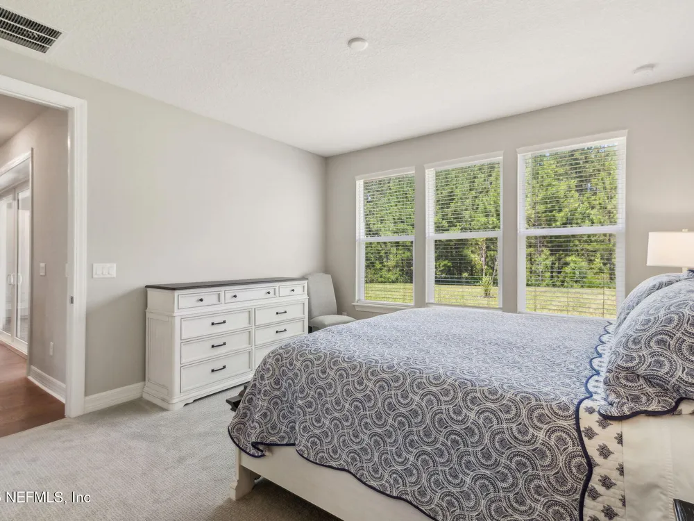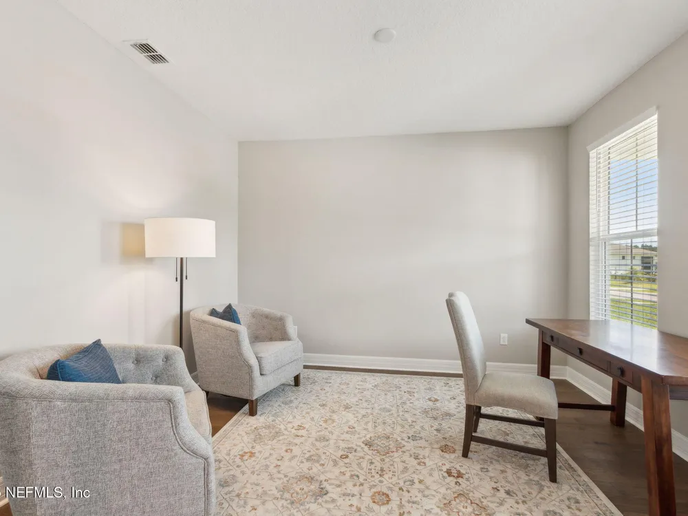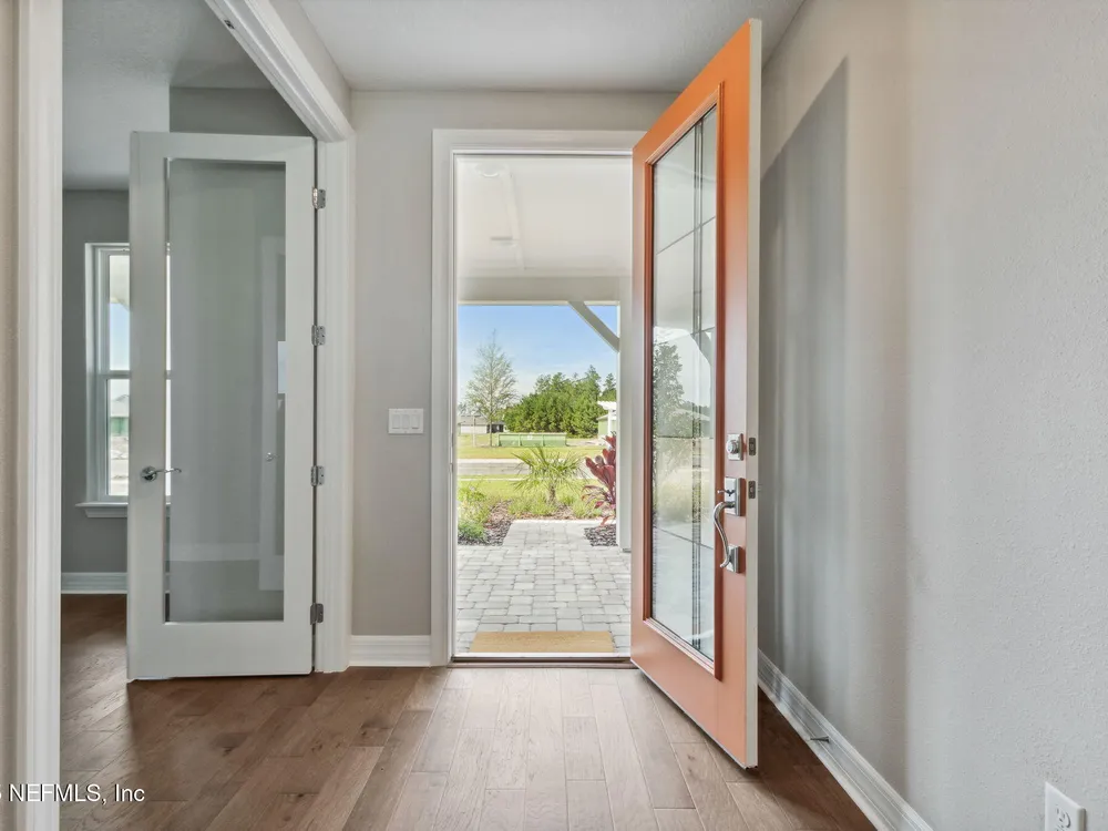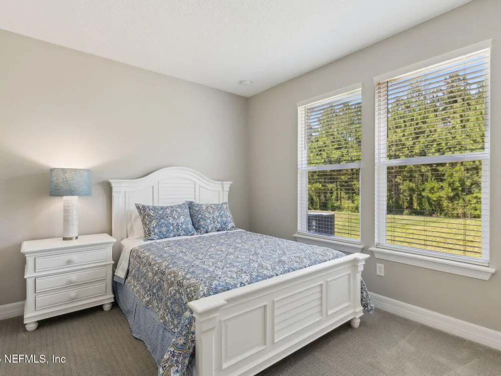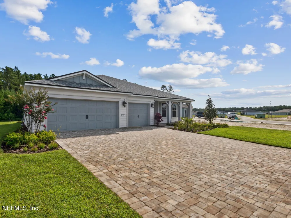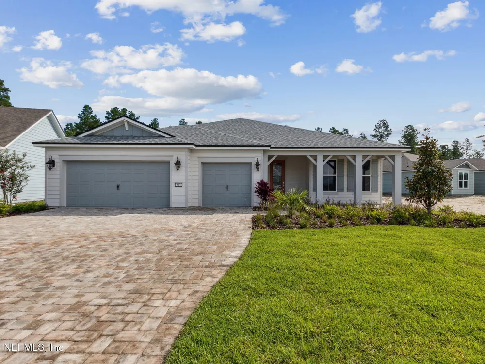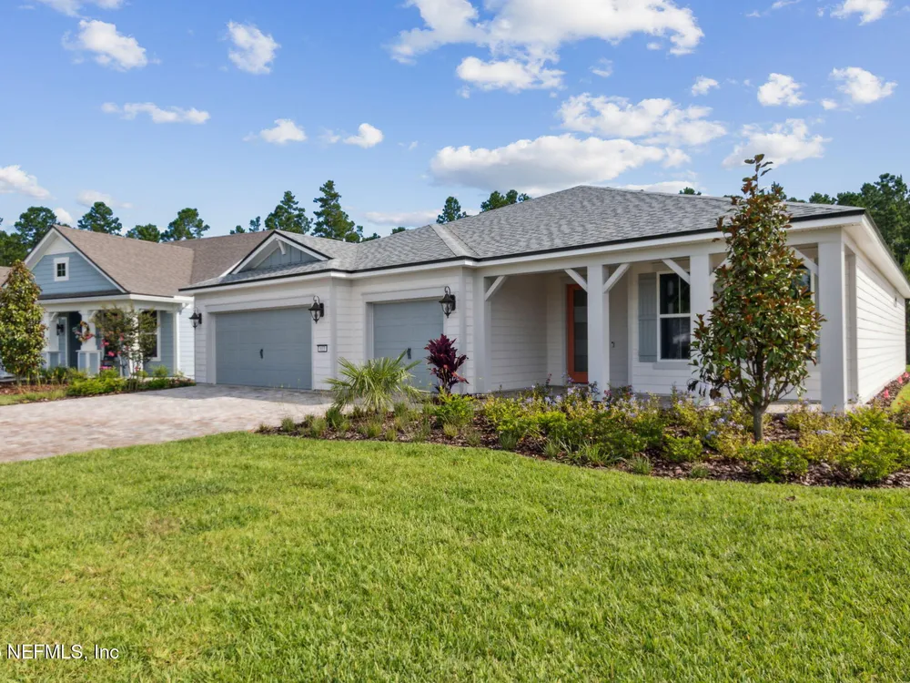 Why wait to build when you can enjoy this nearly-new home in Del Webb Wildlight (55+ community) today? Completed in June 2024, this beautiful Stardom floor plan is situated on a quiet cul-de-sac with a private, preserve-backed lot. With a versatile open floor plan that includes 3 bedrooms, 2.5 baths, a private home office with french doors, a gourmet kitchen, an oversized screened lanai with pocket sliding glass doors, and a 3-car garage, this home will please the most selective buyers. The sellers spared no expense in maximizing the floor plan & options, while tastefully outfitting the home with special features, including 8' doors, 5 1/4'' baseboards, KitchenAid appliances, quartz countertops, engineered hardwood floors in common areas, upgraded carpet in bedrooms and tile in baths, a super shower with seat, niche, and rain shower head in the primary bath, an extended paver patio, an oversized laundry room with sink and cabinets, outdoor flood lights, keyless garage entry, and more! Del Webb Wildlight offers world class living in one of the area's premier 55+ communities. Enjoy resort-style amenities centered around the 16,000 square foot Horizon Club which includes tennis, fitness, pool and spa, pickle ball, bocce ball, an event ballroom with stage and breakout space, an arts and crafts room, a covered social pavilion with event lawn, an indoor/outdoor tavern and grille, private wine lockers, as well as social activities, a dog park, and a community garden. Located approximately 30 minutes from Amelia Island's beautiful beaches, the Jacksonville International airport, and the heart of downtown Jacksonville, you can enjoy a private, neighborhood community while enjoying all that the First Coast has to offer.