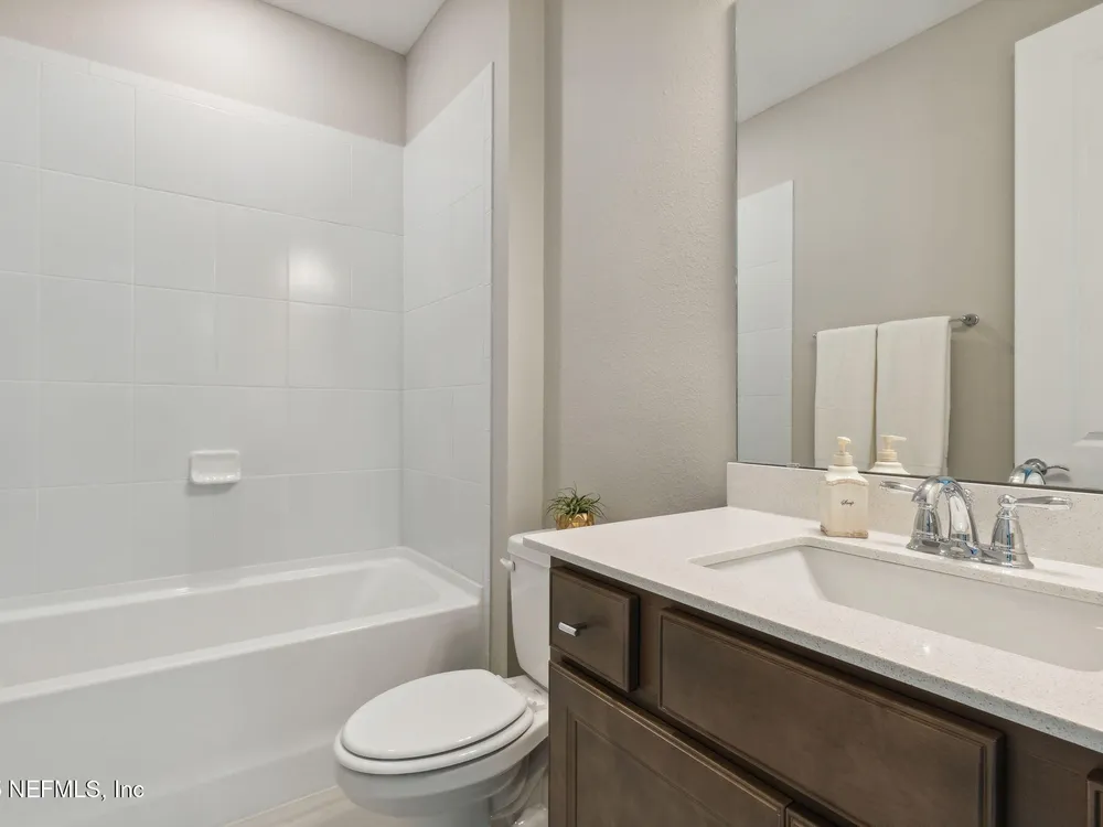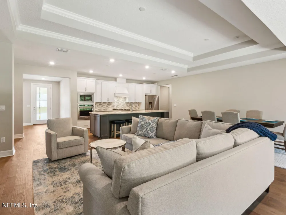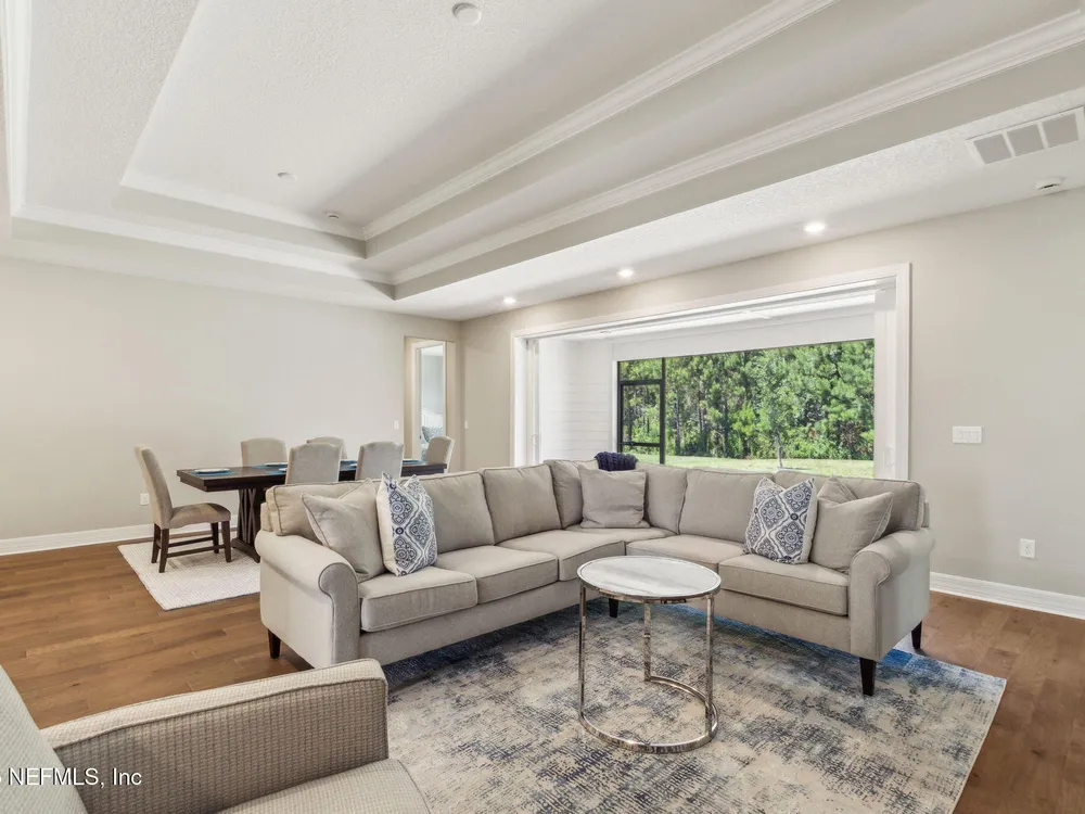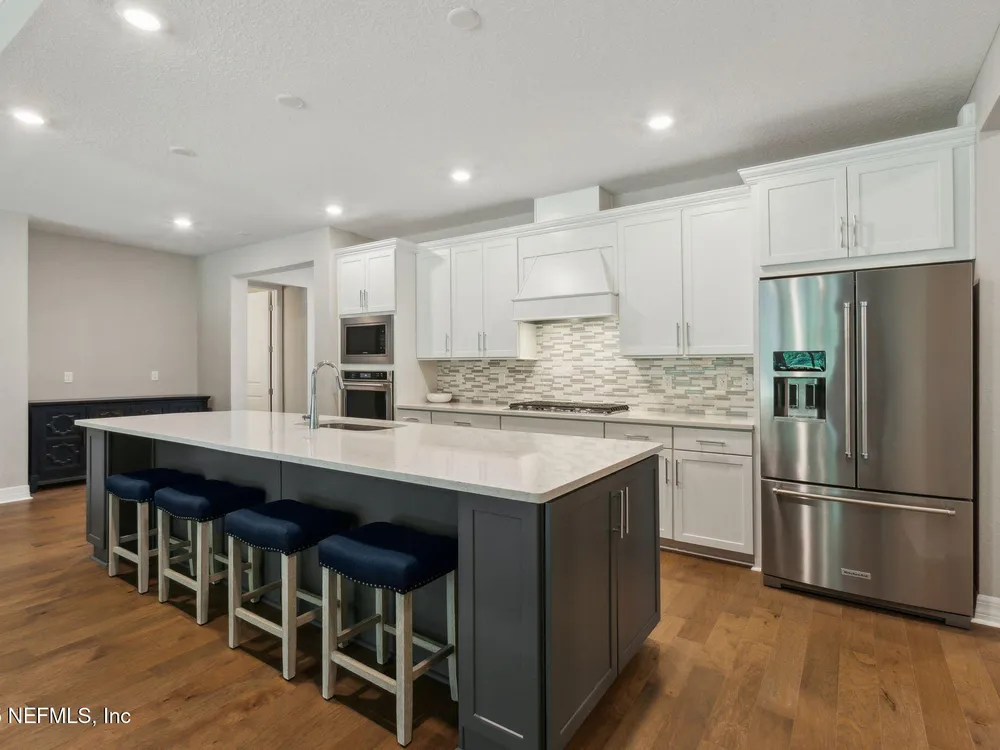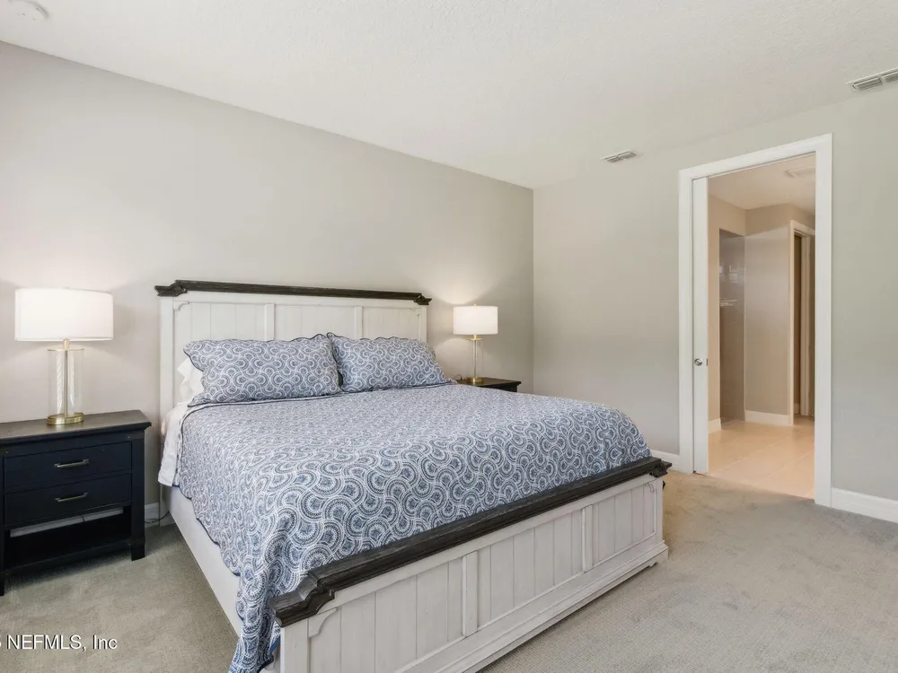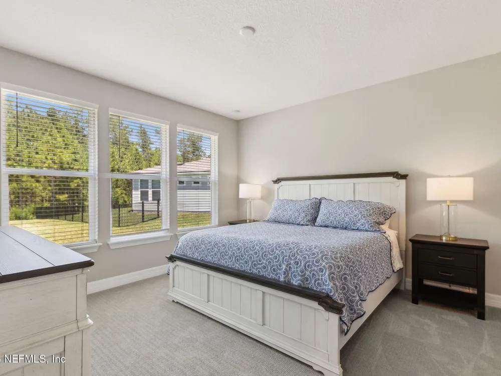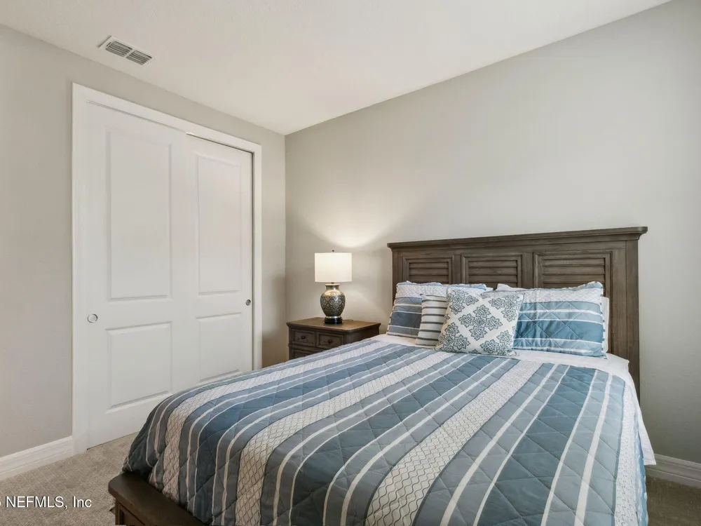Why wait to build when you can enjoy this nearly-new home in Del Webb Wildlight (55+ community) today? Completed in June 2024, this beautiful Stardom floor plan is situated on a quiet cul-de-sac with a private, preserve-backed lot. With a versatile open floor plan that includes 3 bedrooms, 2.5 baths, a private home office with french doors, a gourmet kitchen, an oversized screened lanai with pocket sliding glass doors, and a 3-car garage, this home will please the most selective buyers. The sellers spared no expense in maximizing the floor plan & options, while tastefully outfitting the home with special features, including 8' doors, 5 1/4'' baseboards, KitchenAid appliances, quartz countertops, engineered hardwood floors in common areas, upgraded carpet in bedrooms and tile in baths, a super shower with seat, niche, and rain shower head in the primary bath, an extended paver patio, an oversized laundry room with sink and cabinets, outdoor flood lights, keyless garage entry, and more! Del Webb Wildlight offers world class living in one of the area's premier 55+ communities. Enjoy resort-style amenities centered around the 16,000 square foot Horizon Club which includes tennis, fitness, pool and spa, pickle ball, bocce ball, an event ballroom with stage and breakout space, an arts and crafts room, a covered social pavilion with event lawn, an indoor/outdoor tavern and grille, private wine lockers, as well as social activities, a dog park, and a community garden. Located approximately 30 minutes from Amelia Island's beautiful beaches, the Jacksonville International airport, and the heart of downtown Jacksonville, you can enjoy a private, neighborhood community while enjoying all that the First Coast has to offer.