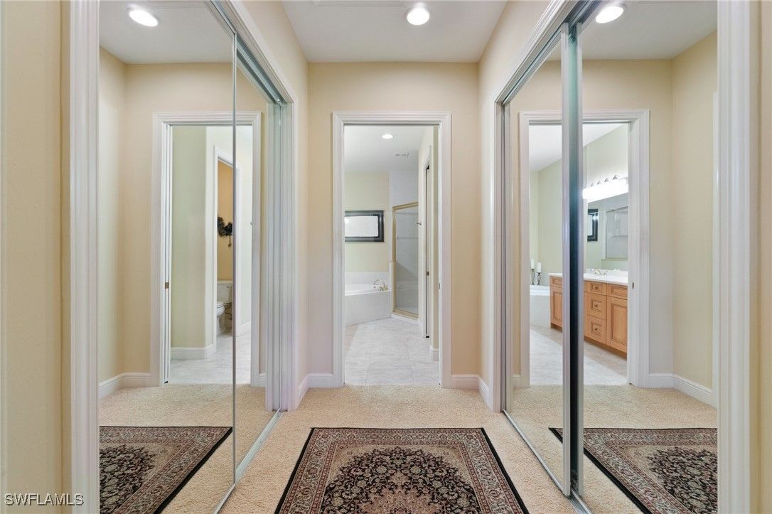 RARELY AVAILABLE COACH HOME WITH GOLF COURSE VIEWS! This stunning 4-bedroom, 3-bath residence is located in Montelena at The Vineyards, a gated community of just 33 homes. Thoughtfully designed, the open-concept floor plan is complemented by refined finishes throughout and picturesque golf course views. The updated kitchen features quartz countertops, new stainless steel appliances, a subway tile backsplash, white cabinetry with modern hardware, and a touchless faucet. The living area offers tile flooring, stylish lighting, and sophisticated window treatments, while the enclosed lanai captures breathtaking views of the 14th and 15th fairways—perfect for morning coffee or evening relaxation. The spacious primary suite includes two oversized closets and a spa-like en-suite bath with a glass-enclosed shower and soaking tub. A second primary bedroom also offers an en-suite bath and walk-in closet, ideal for guests. The fourth bedroom/flex space can be used as a home office, den, or another guest room. Additional highlights include a custom stair rail, laundry room with new washer and sink, and an updated HVAC system installed in 2021. The home includes a deeded attached one-car garage, two additional parking spaces, and access to the community pool and spa. Residents may enjoy an optional membership to the prestigious Vineyards Country Club, featuring two championship golf courses, tennis, pickleball, a resort-style pool, multiple dining venues, and a state-of-the-art wellness center and spa. The Vineyards also offers a shopping center with dining, retail, medical offices, a gym, and Publix, along with a 32-acre community park with walking trails and recreational areas. THIS PROPERTY QUALIFIES FOR A 1% LENDER INCENTIVE IF USING PREFERRED LENDER, INQUIRE FOR MORE DETAILS*** Some renderings that showcase furniture have been virtually staged.