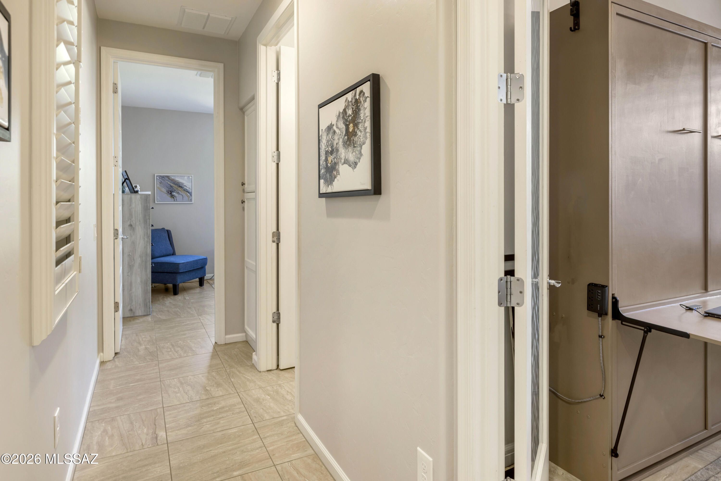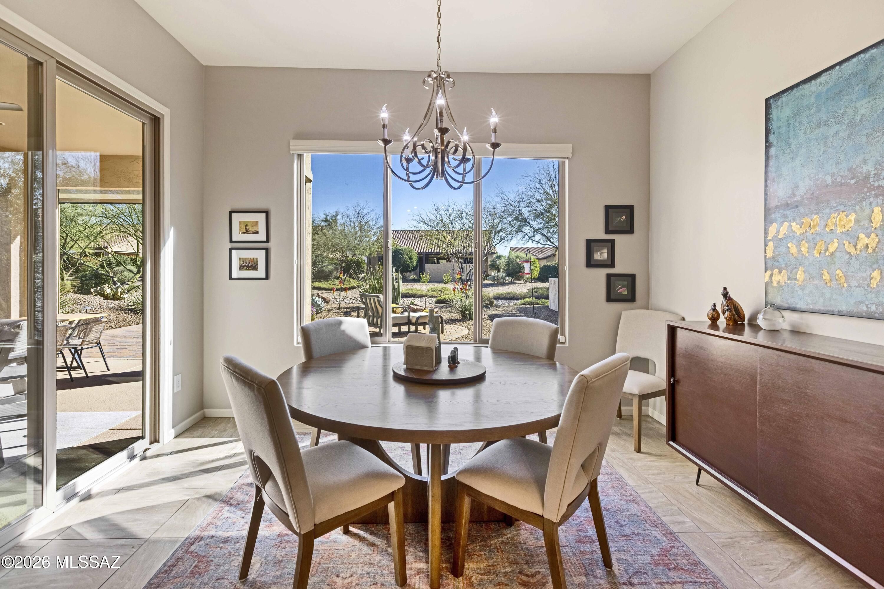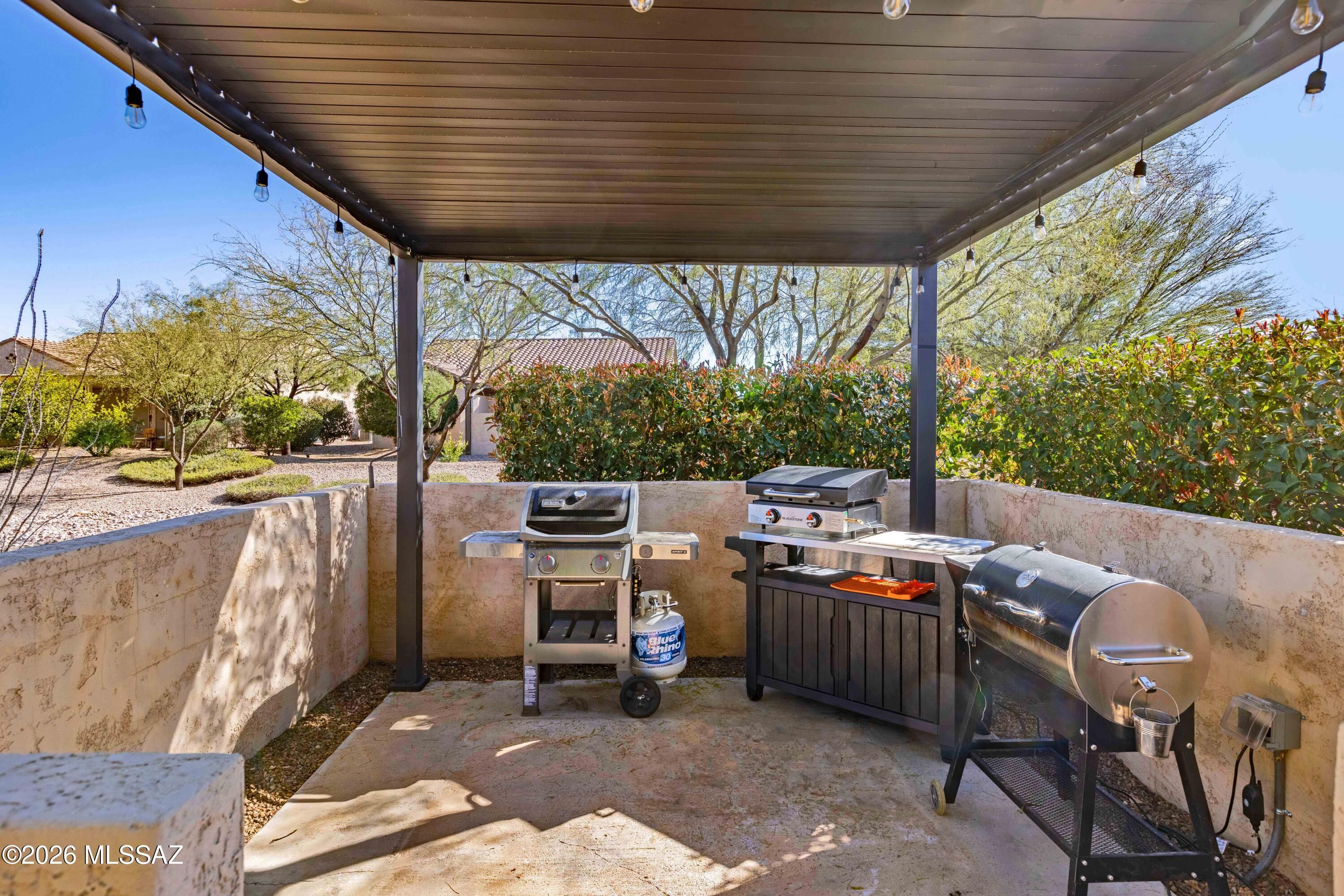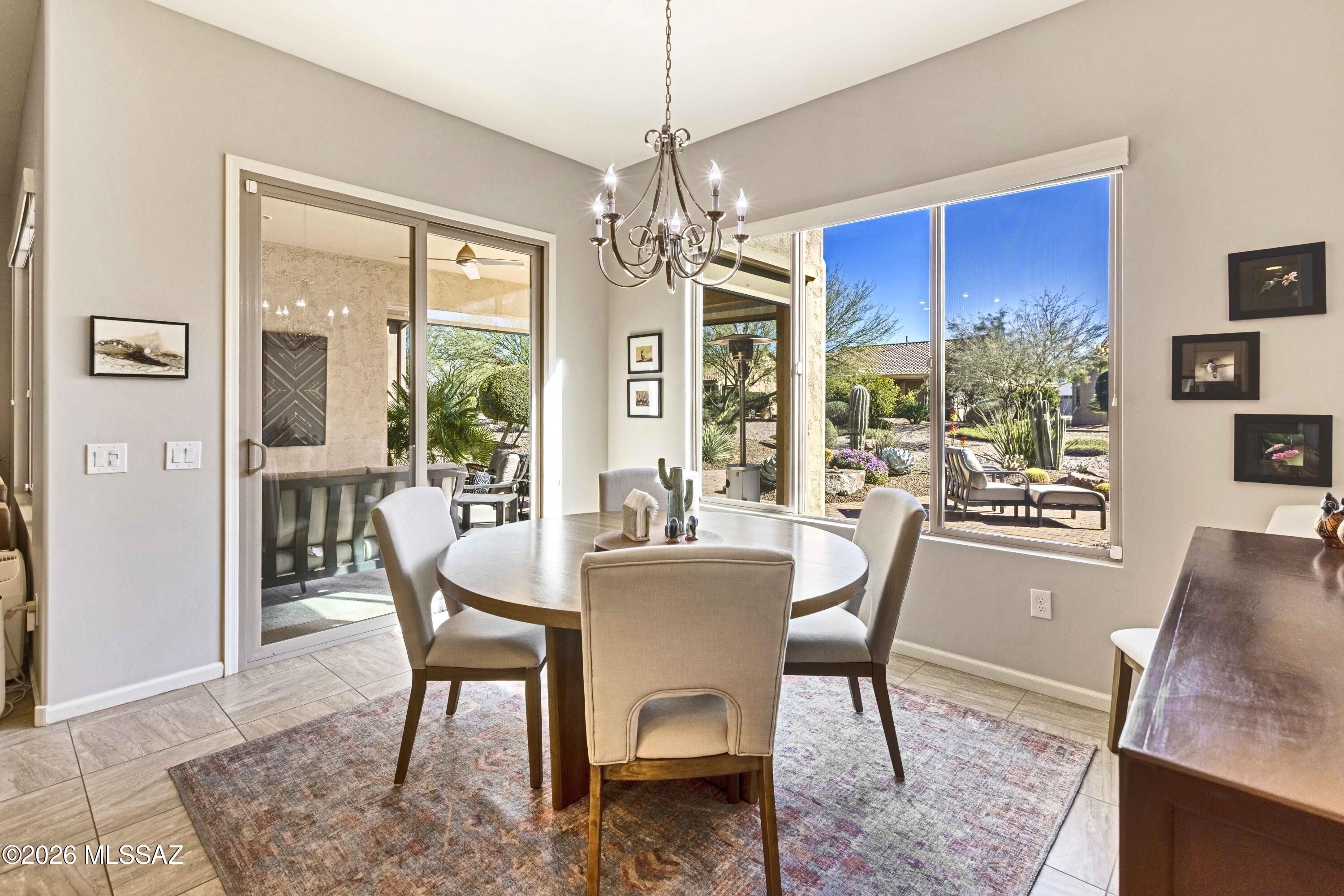 Ideally located close to the exceptional amenities of SaddleBrooke Ranch, this beautifully upgraded Hermosa plan offers bright, open living with 8' interior doors throughout and a clean, neutral palette.The light-filled kitchen features upgraded cabinetry, abundant storage, and a gas range--perfect for everyday living and entertaining. The den with double doors includes a Murphy bed that conveys, providing flexible space for guests or a home office. The spacious primary suite offers an upgraded custom closet system designed for organization and ease.Outdoor living is a true highlight with a charming back patio fireplace and mantle, rolling shades for year-round enjoyment, and a covered pergola area ideal for a future hot tub or outdoor kitchen.Additional features include: