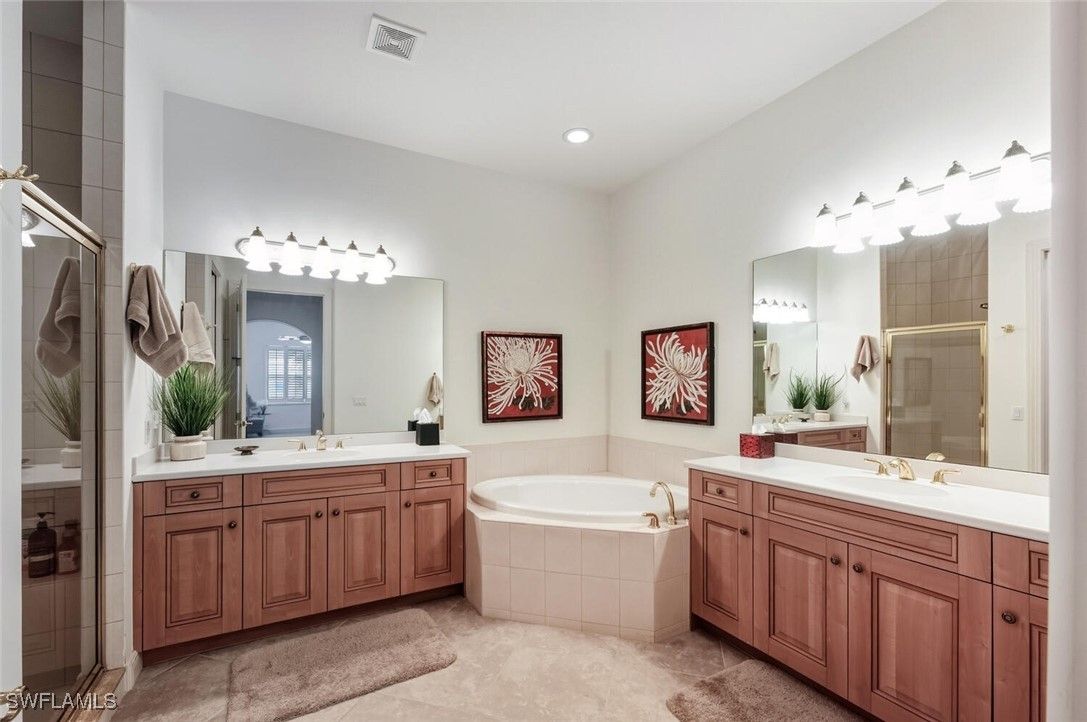 - Breakfast Bar, Built-in Features, Bedroom on Main Level, Bathtub, Dual Sinks, Eat-in Kitchen, Living/Dining Room, Main Level Primary, Multiple Primary Suites, Pantry, Separate Shower, Upper Level Primary, Walk-In Closet(s)