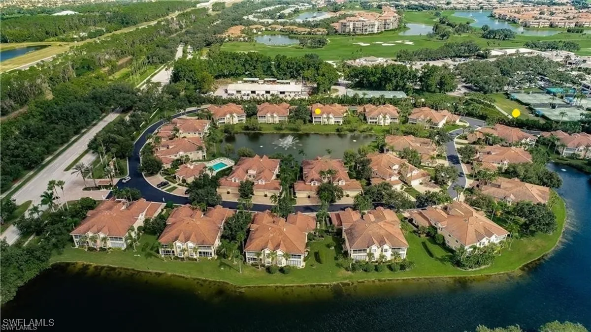 Clubside Reserve in The Vineyards. First-floor coach home offering two bedrooms plus a den, two full baths, and a two-car garage. Enjoy sparkling lake and fountain views with desirable southern exposure! This residence features a spacious great room floor plan that is light and bright. The lanai has been enclosed with glass sliders and screens, expanding the interior living space while still allowing the doors to be opened for fresh air—seamlessly blending indoor and outdoor living. The cozy lanai is the perfect spot to enjoy beautiful sunset views! The den is equipped with pocket doors, providing a private and flexible space ideal for guests or a home office. The guest bedroom suite also features pocket doors, allowing it to be separated from the main living area for enhanced privacy. Storage is abundant throughout the home! The kitchen pantry was custom-designed by the homeowner in collaboration with the builder to maximize functionality. Near the entrance, a large storage closet is so big it is currently used as an office! Additional oversized closets provide ample space for larger storage items, along with a dedicated coat closet. The primary suite is generously sized and offers exceptional storage, featuring a spacious walk-in closet in addition to a traditional closet. This residence also enjoys a great location! A nearby hidden walkway offers direct pedestrian access to the Vineyards Country Club, allowing you to walk to the Club without using any main roads. Clubside Reserve offers its own amenities, including a lovely updated community clubhouse with a pool and spa—perfect for relaxing or hosting family and friends. This quaint and tranquil gated community is known for its beautiful landscaping and well-managed association, featuring newer roofs, exterior paint, and recently paved roads. Conveniently located near the Vineyards Country Club and Vineyards Community Park, residents enjoy quick access to beautiful beaches, shopping, dining, medical facilities, and I-75. Optional membership at Vineyards Country Club provides an impressive array of amenities, including 36 holes of championship golf, 12 Har-Tru tennis courts, pickleball, bocce, a resort-style pool and spa, outdoor bar, and a state-of-the-art wellness center with a fitness facility, café, halotherapy salt room, massage and salon services, and a saltwater lap pool.